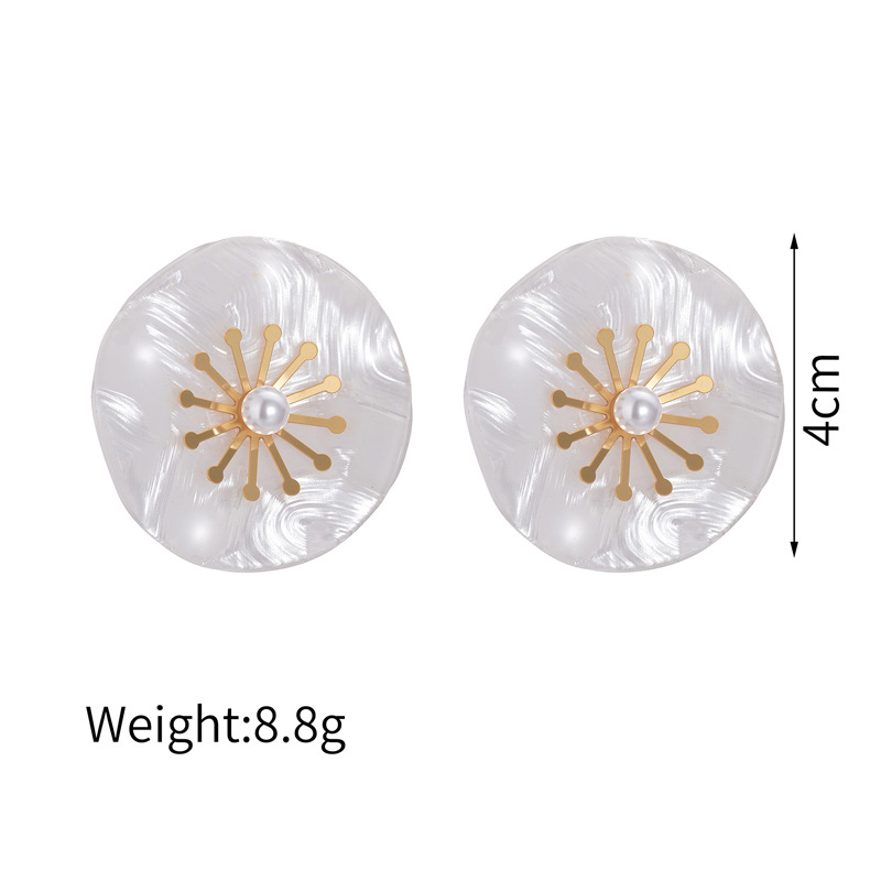 Akryl smykker ørering, 304 rustfrit stål, med Plastic Pearl & Akryl, Runde, forgyldt, mode smykker & for kvinde, Solgt af par
