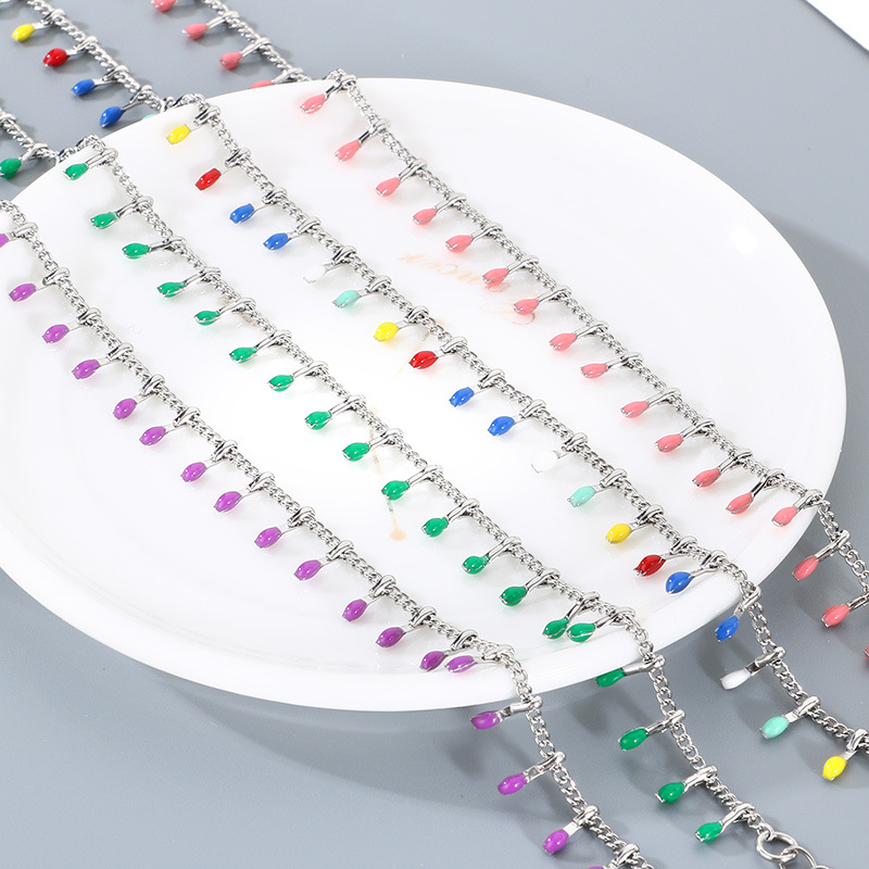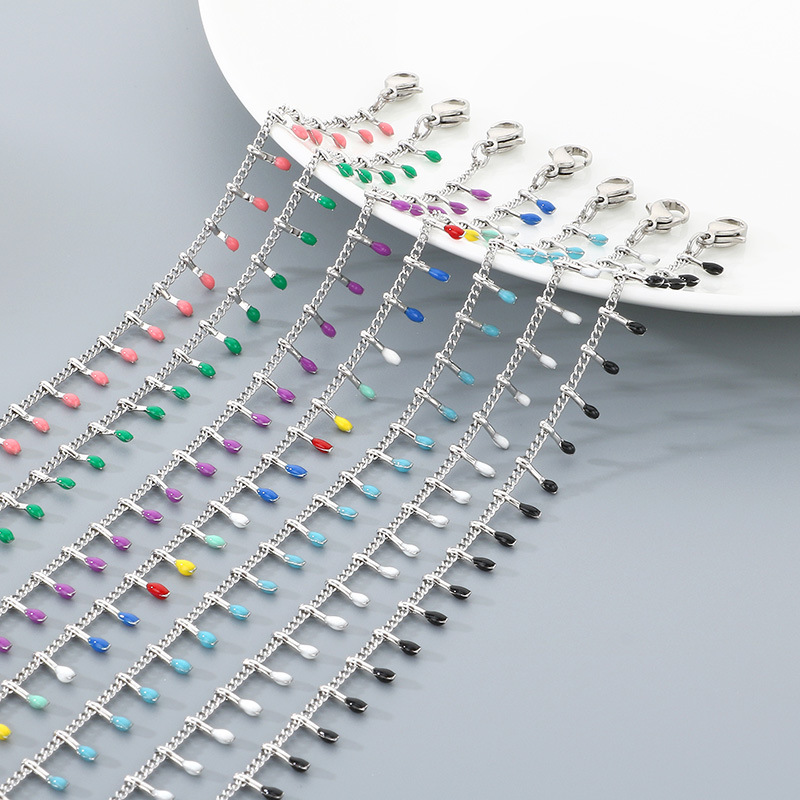Anklet i rustfrit stål, 304 rustfrit stål, guldfarve belagt, mode smykker & emalje, flere farver til valg, Solgt af PC