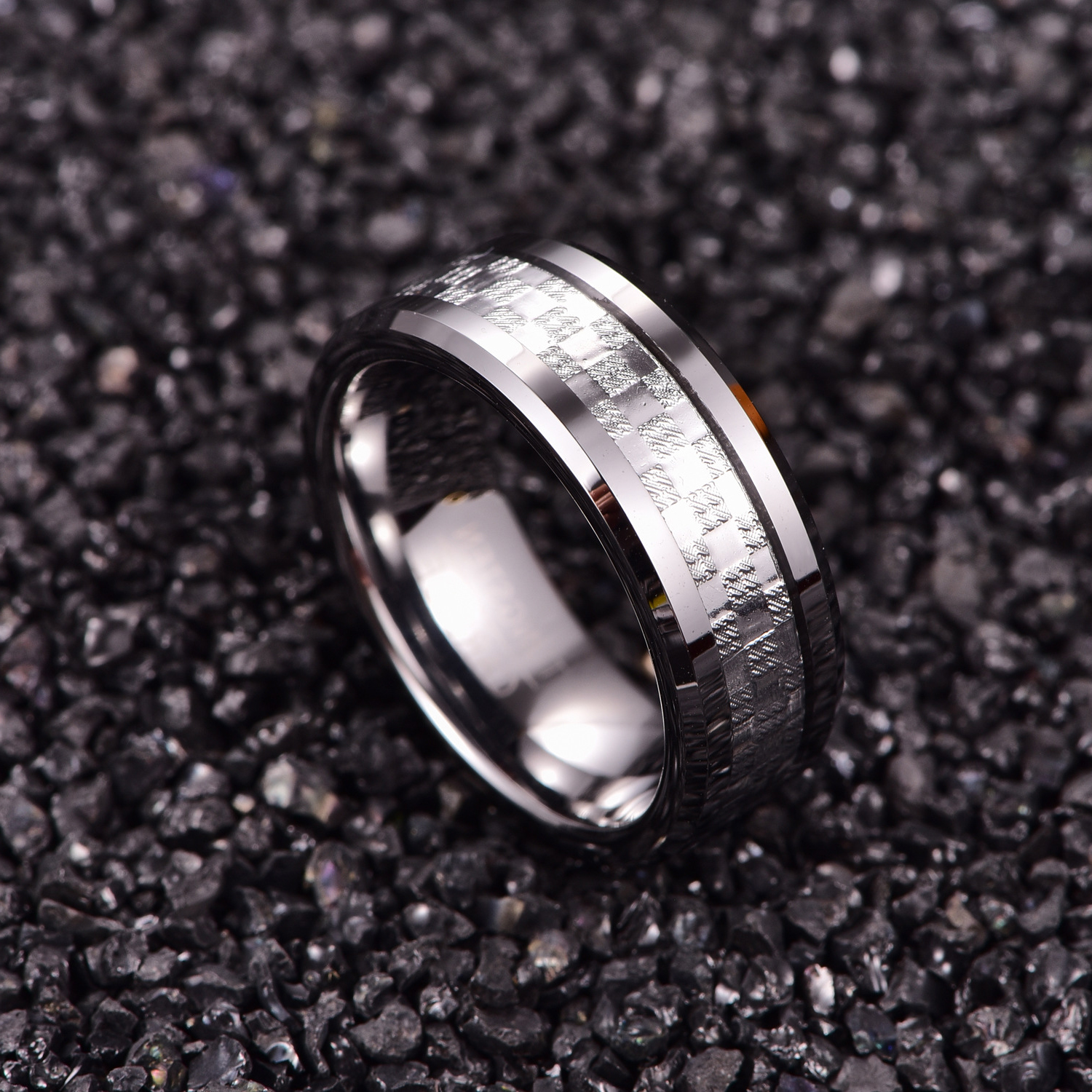 Tungsten Stålring til mænd, Wolfram stål, med Carbon Fiber, forgyldt, mode smykker & Unisex & forskellig størrelse for valg, oprindelige farve, Solgt af PC