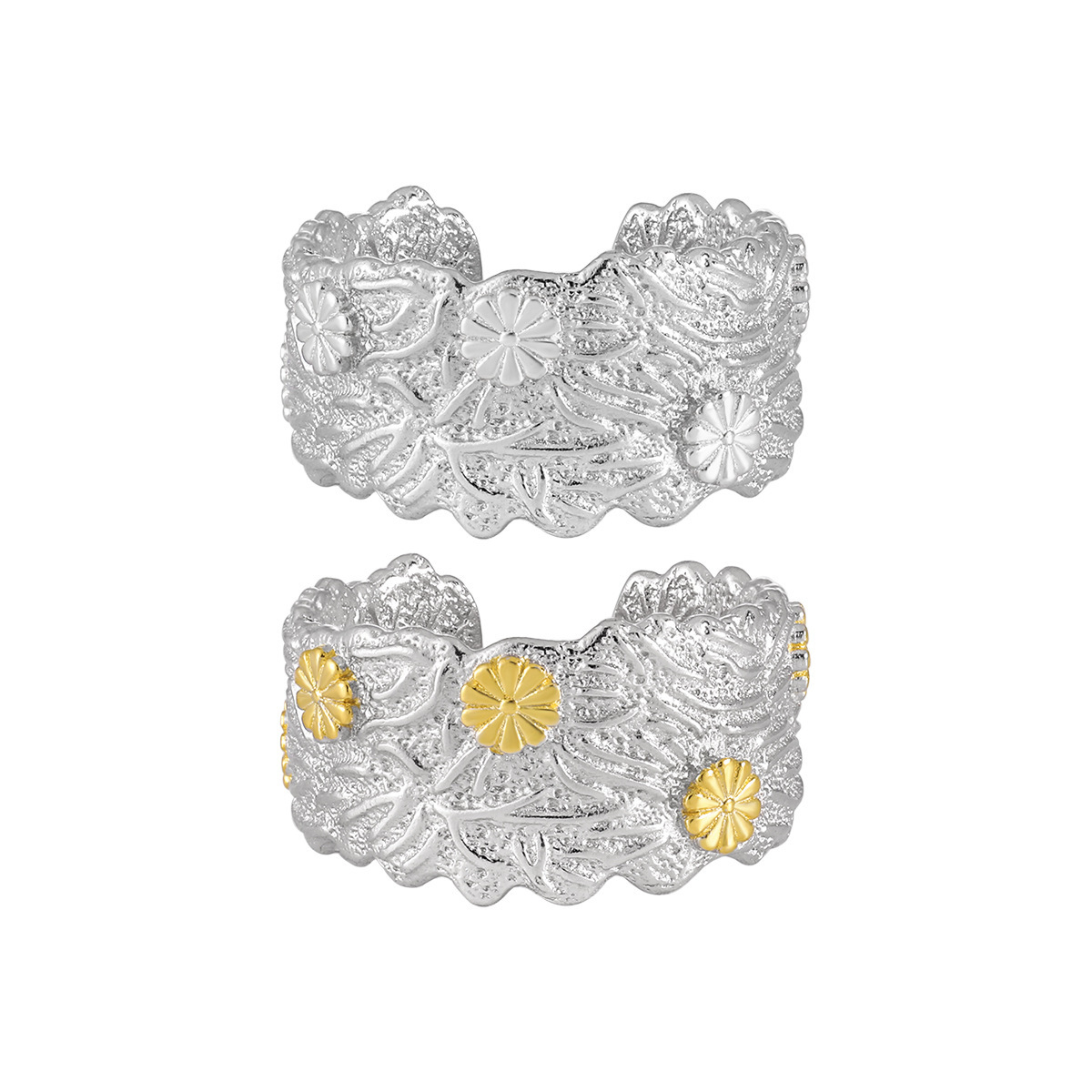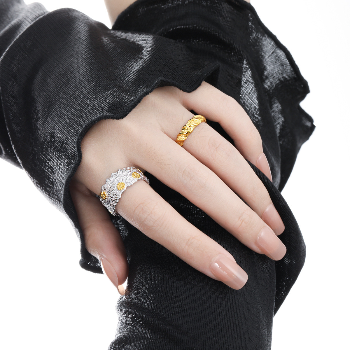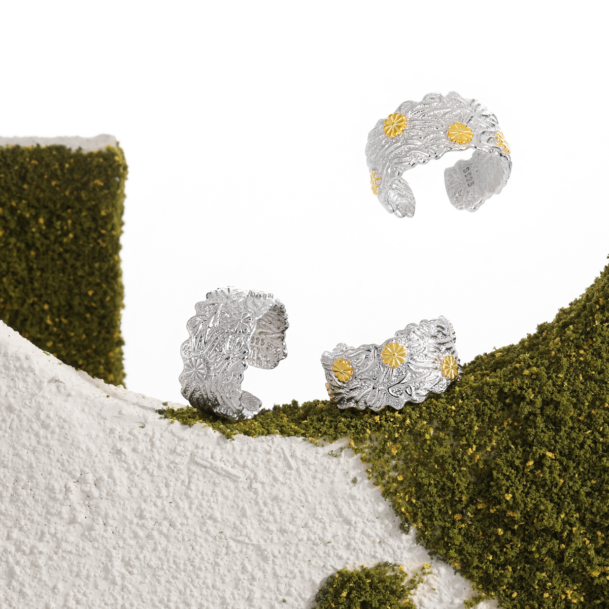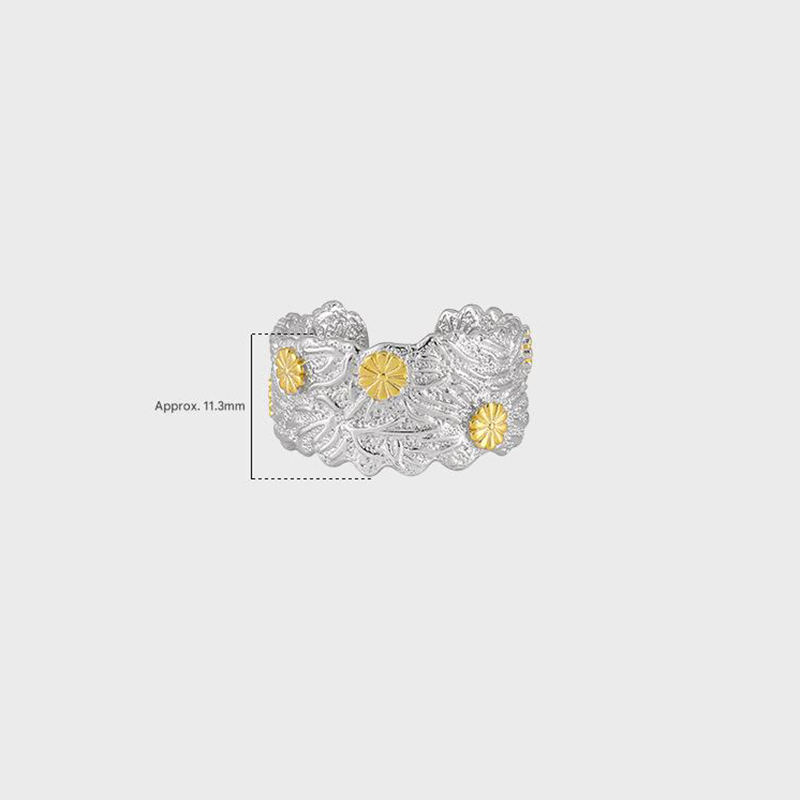 925 Sterling Sølv Cuff fingerring, Daisy, justerbar & for kvinde, flere farver til valg, Størrelse:7.5, Solgt af PC