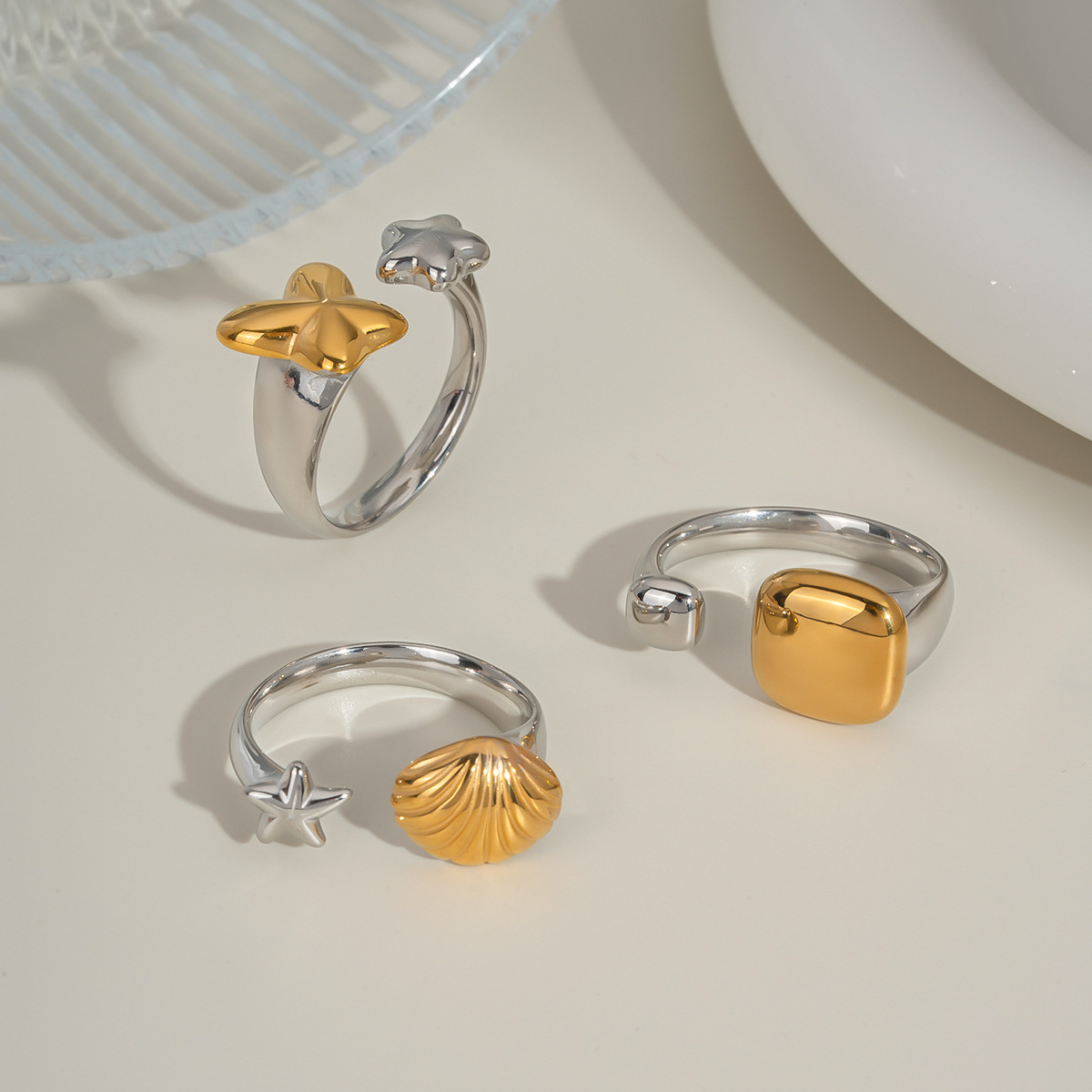 Rustfrit stål fingre Ringe, 304 rustfrit stål, forgyldt, forskellige stilarter for valg & for kvinde & to tone, Solgt af PC