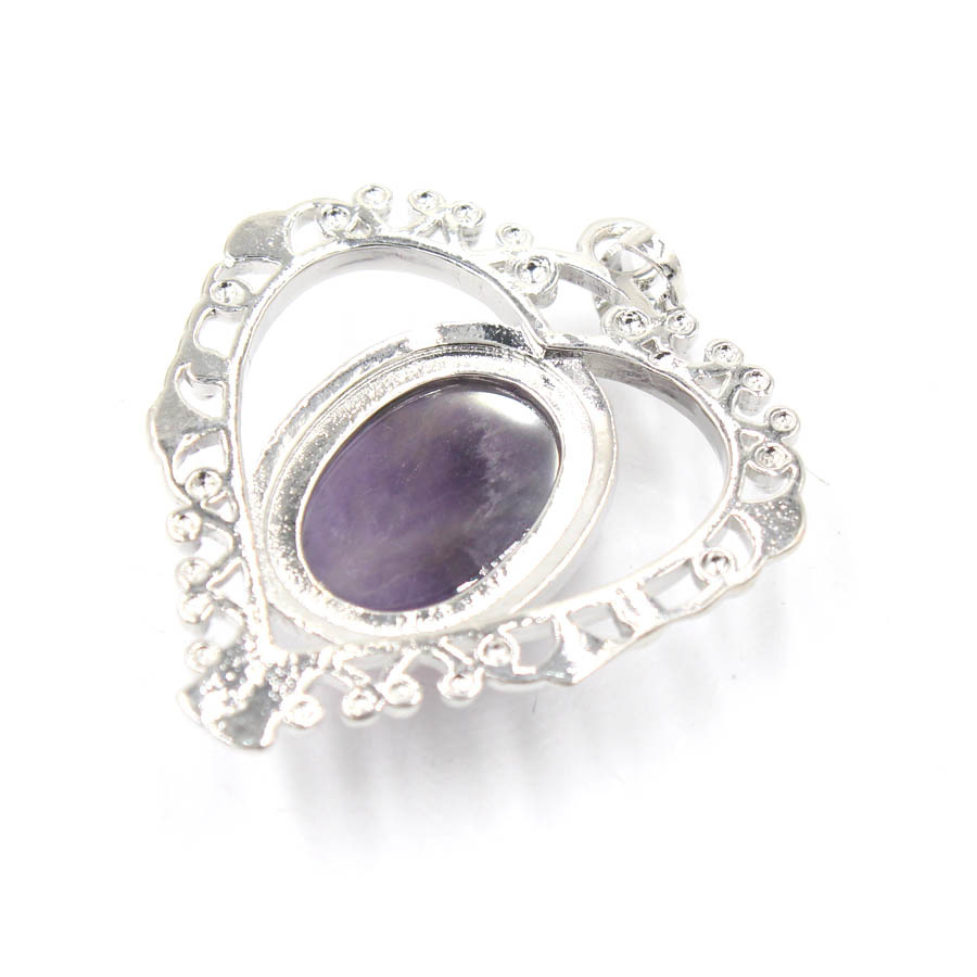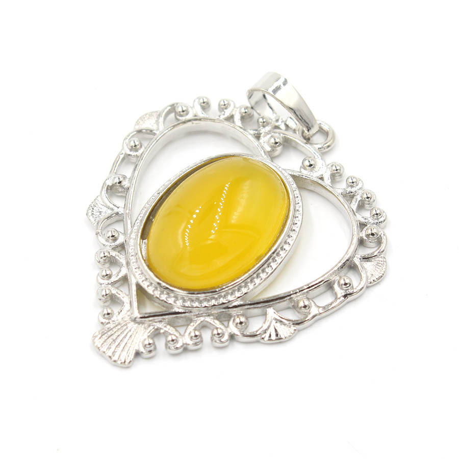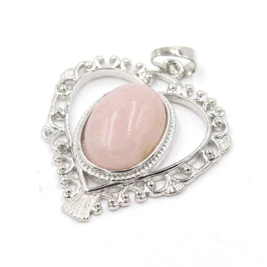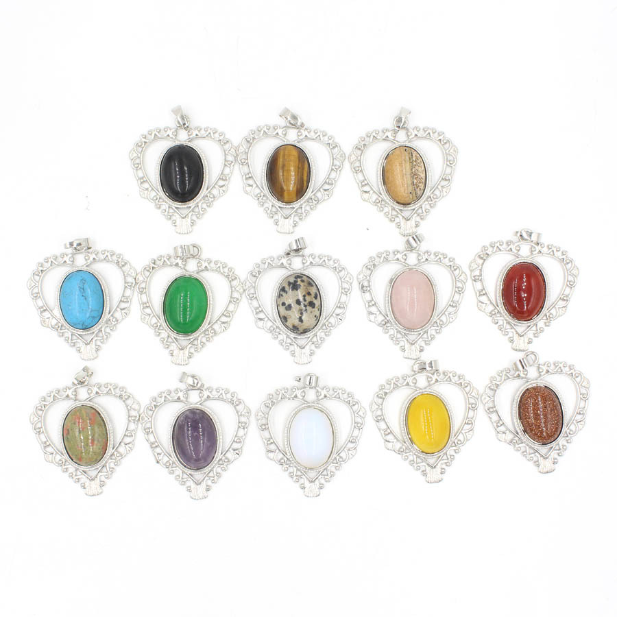 Gemstone Vedhæng Smykker, Messing, med Natursten, Heart, sølvfarvet forgyldt, du kan DIY, flere farver til valg, nikkel, bly & cadmium fri, 9x35x39mm, Solgt af PC