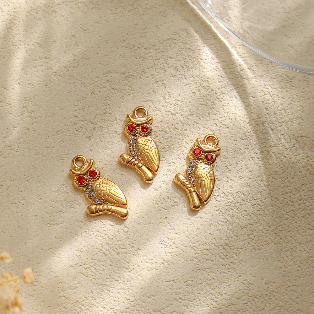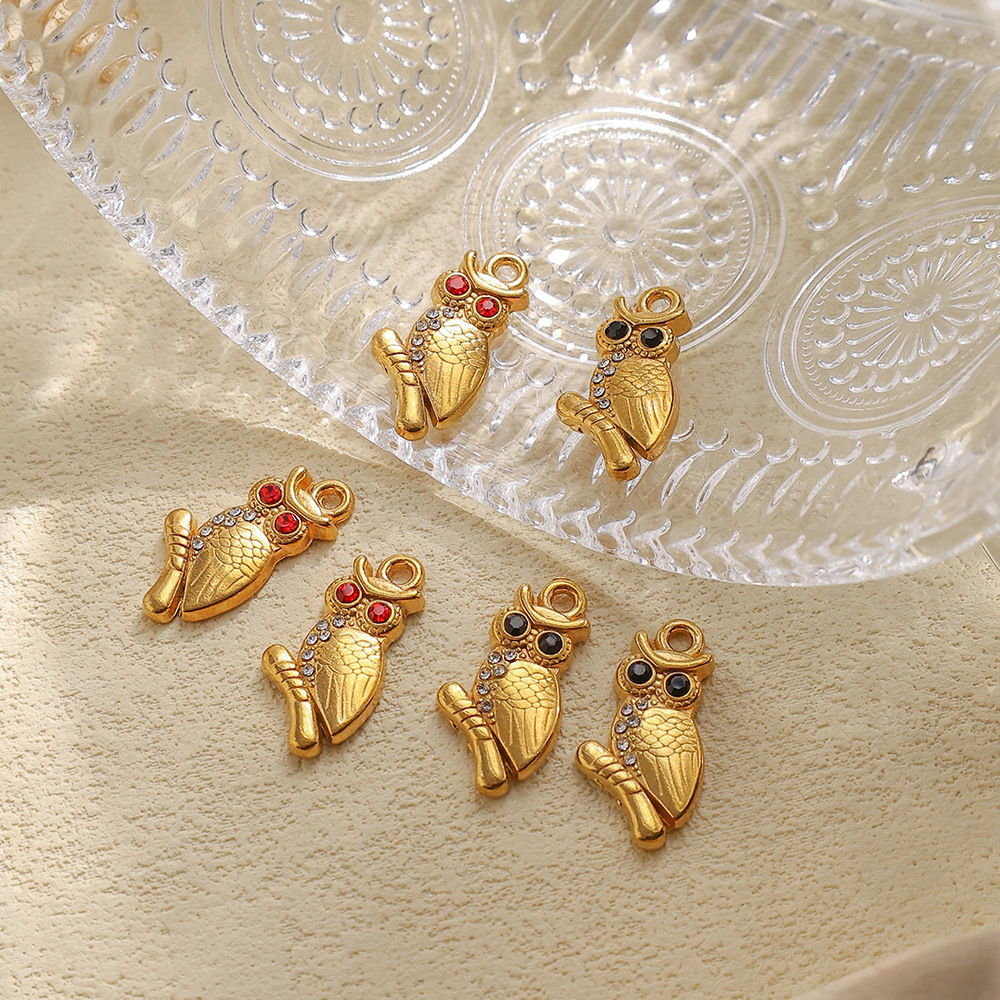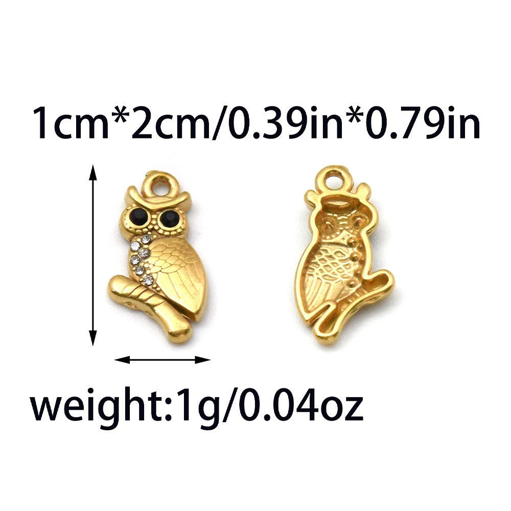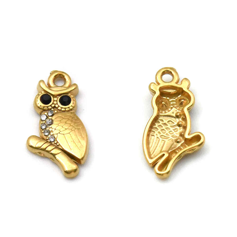 Rustfrit stål smykker Vedhæng, 304 rustfrit stål, Owl, guldfarve belagt, du kan DIY & med rhinestone, flere farver til valg, 10pc'er/Bag, Solgt af Bag