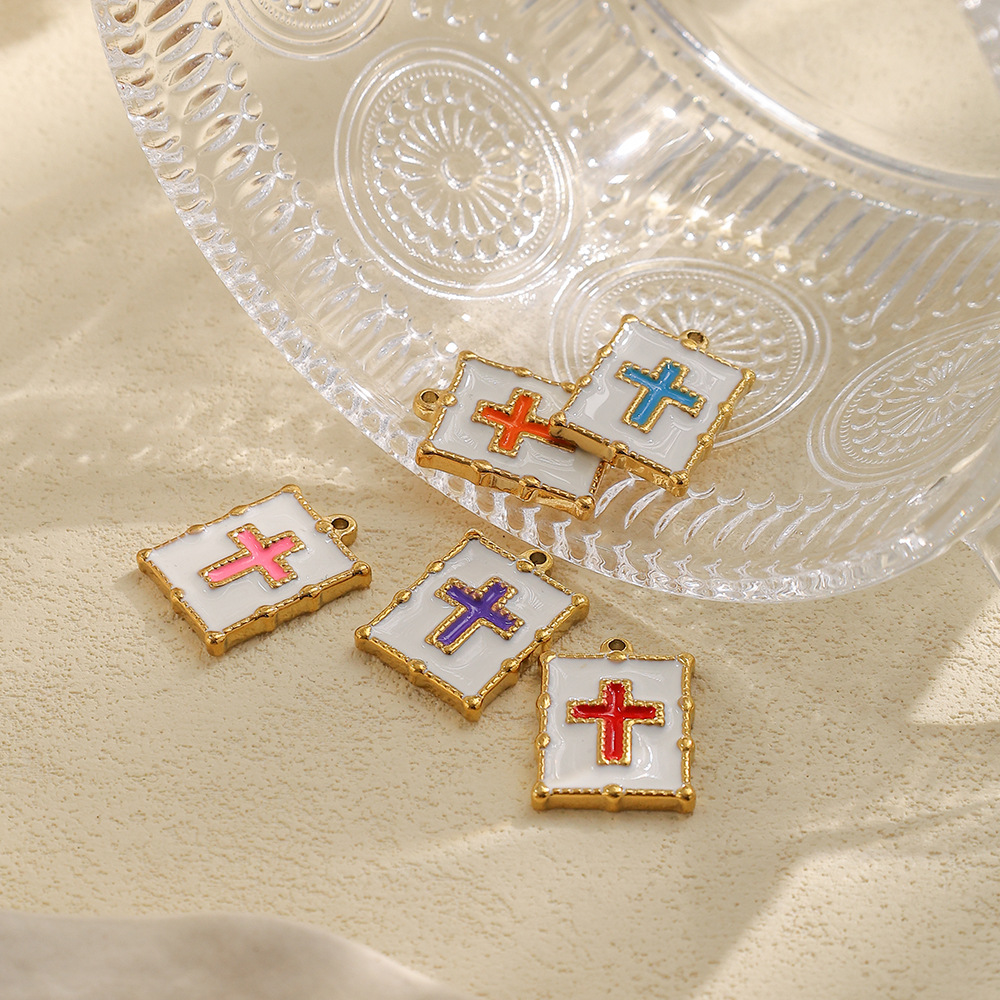 Rustfrit stål smykker Vedhæng, 304 rustfrit stål, Square, guldfarve belagt, du kan DIY & emalje, flere farver til valg, nikkel, bly & cadmium fri, 10pc'er/Bag, Solgt af Bag