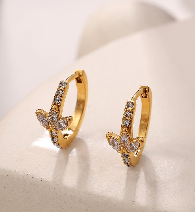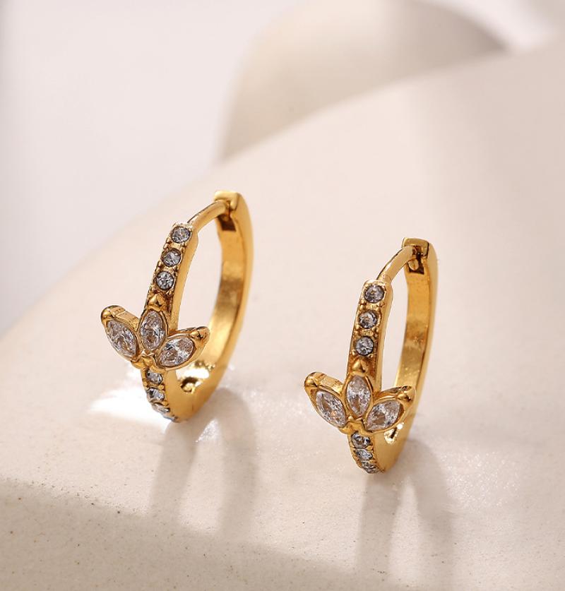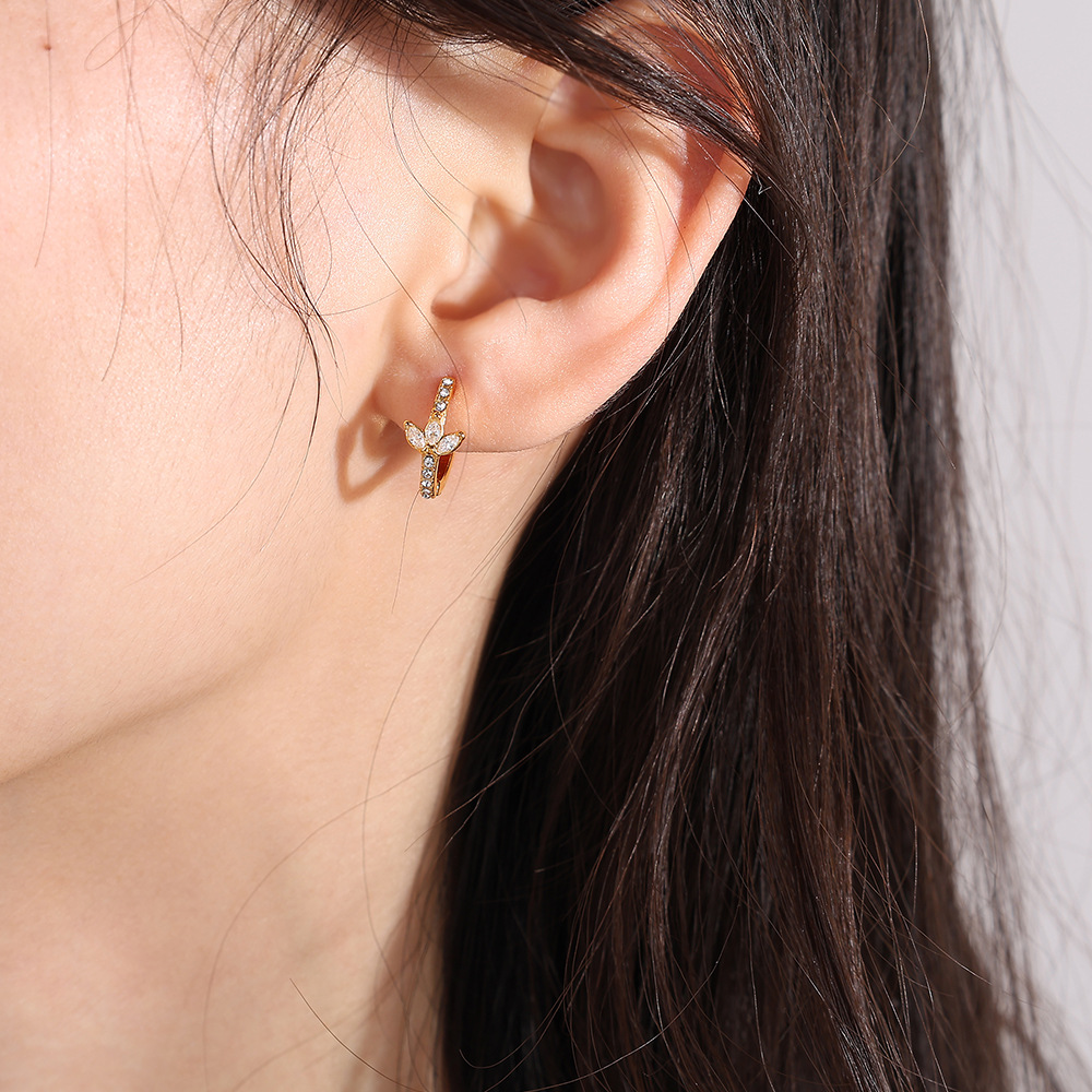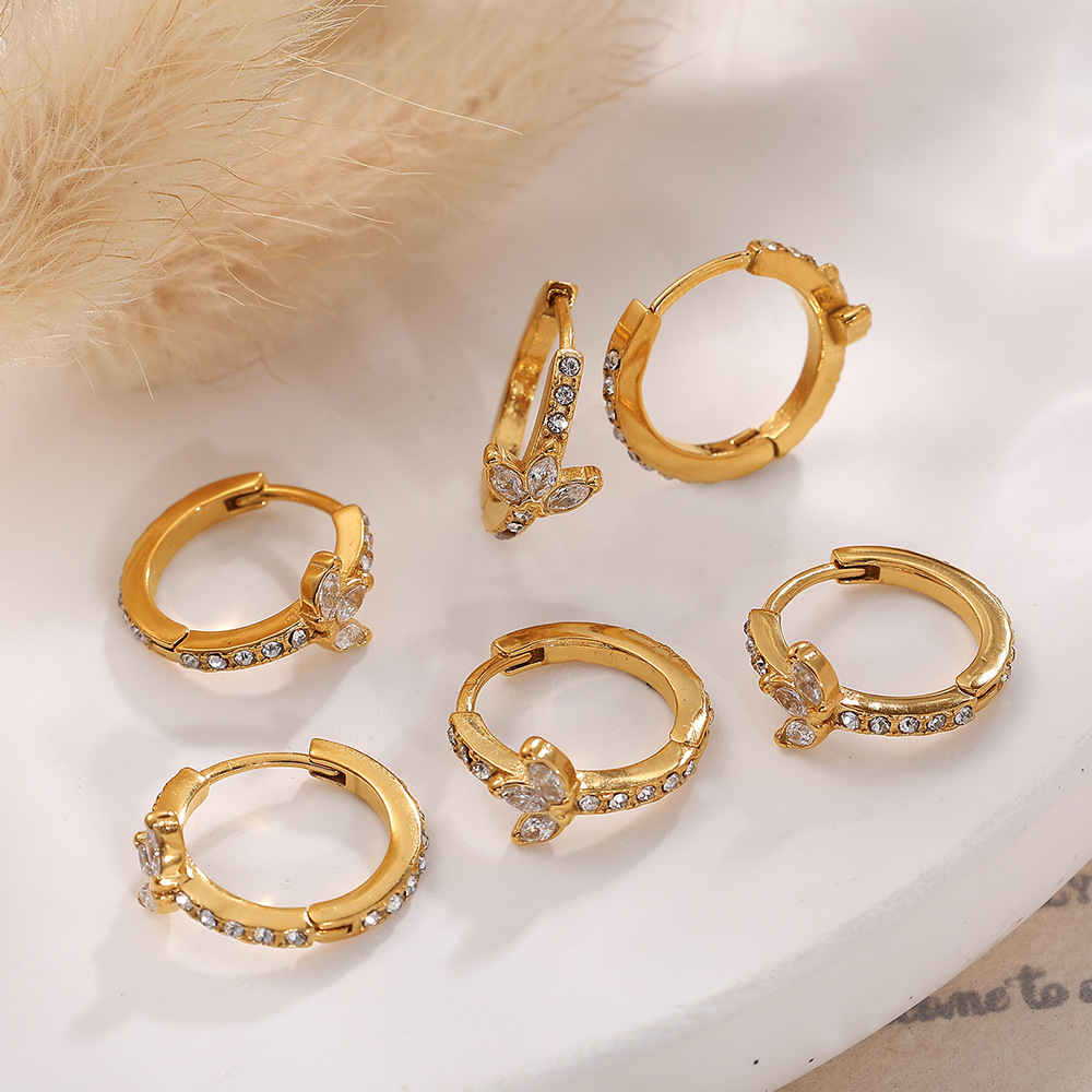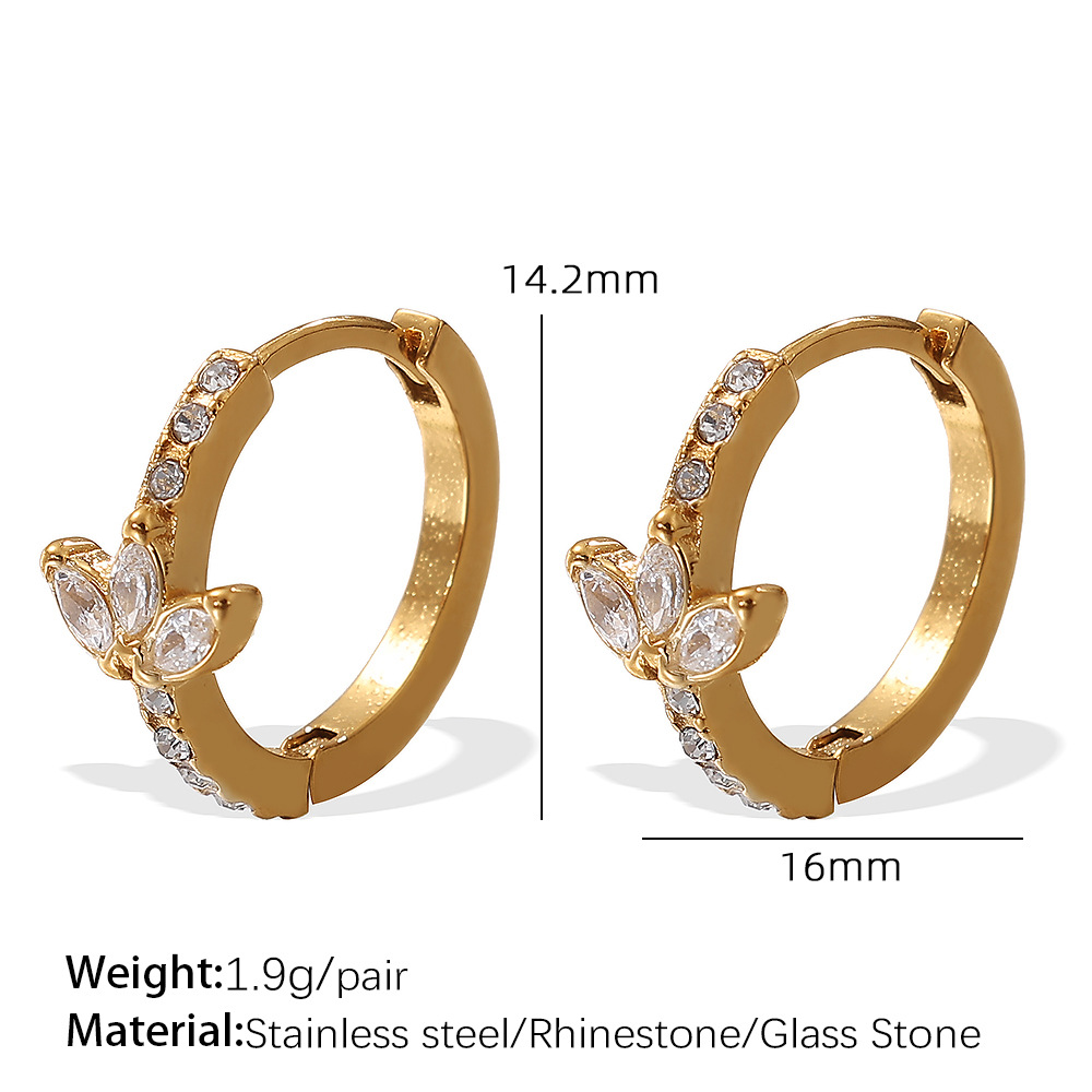 Titanium stål øreringe, guldfarve belagt, mode smykker & med rhinestone, gylden, Solgt af par