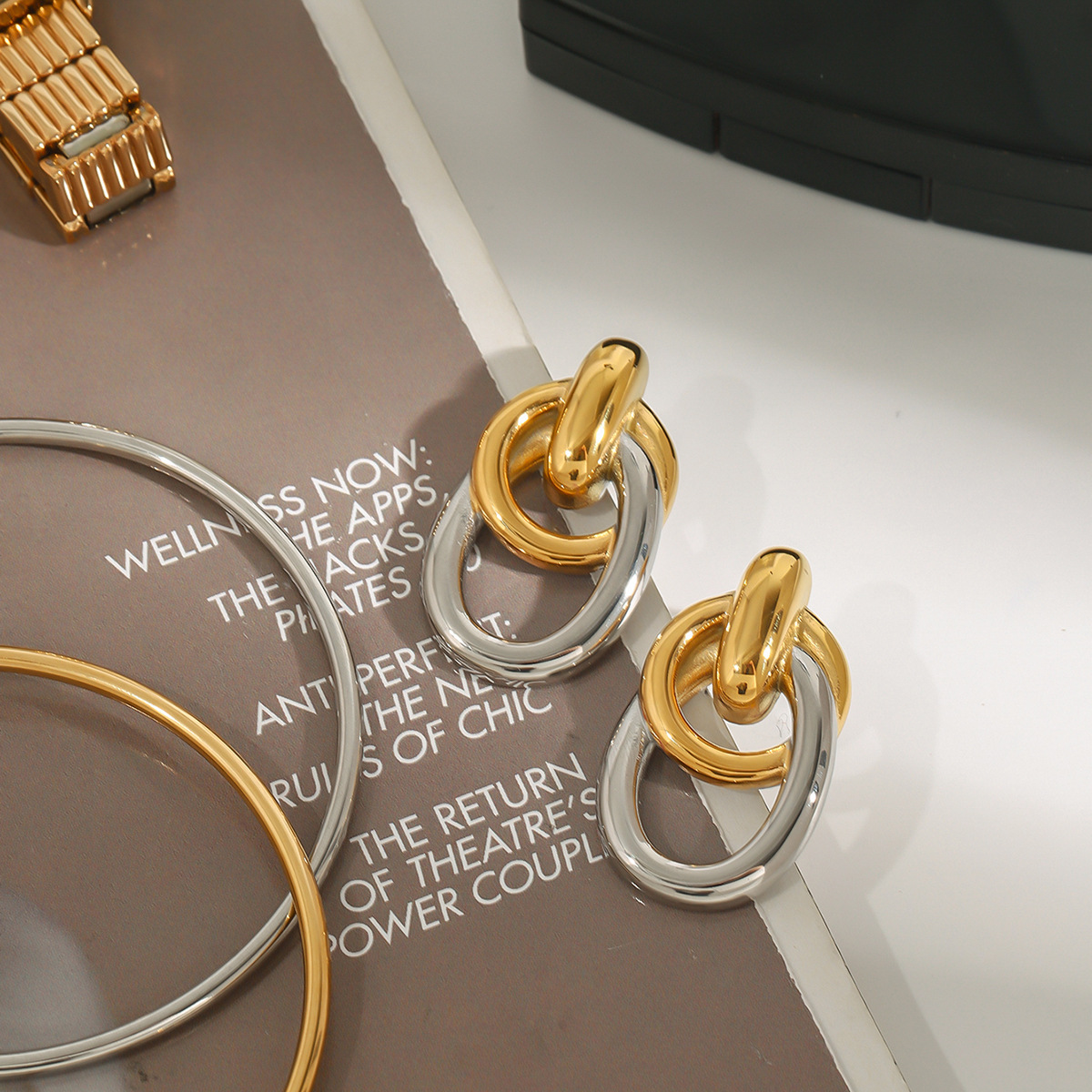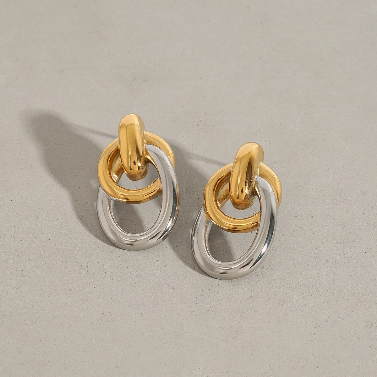 Stainless Steel Stud Øreringe, 304 rustfrit stål, forgyldt, for kvinde & to tone & hule, Solgt af par