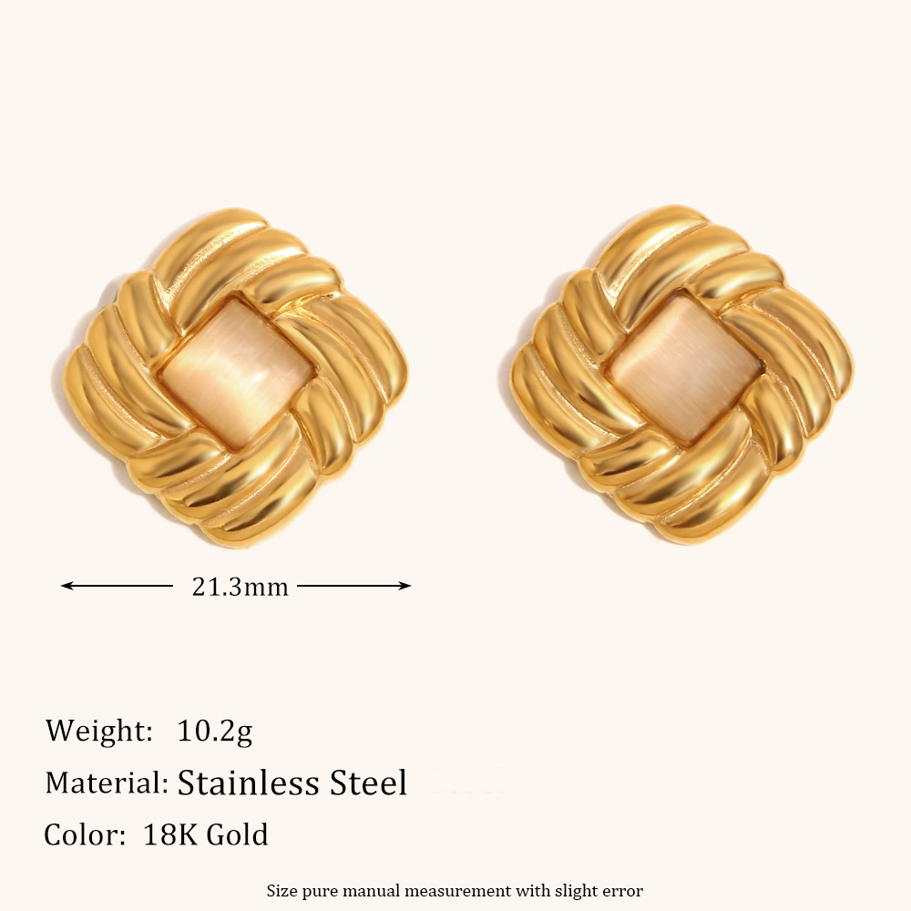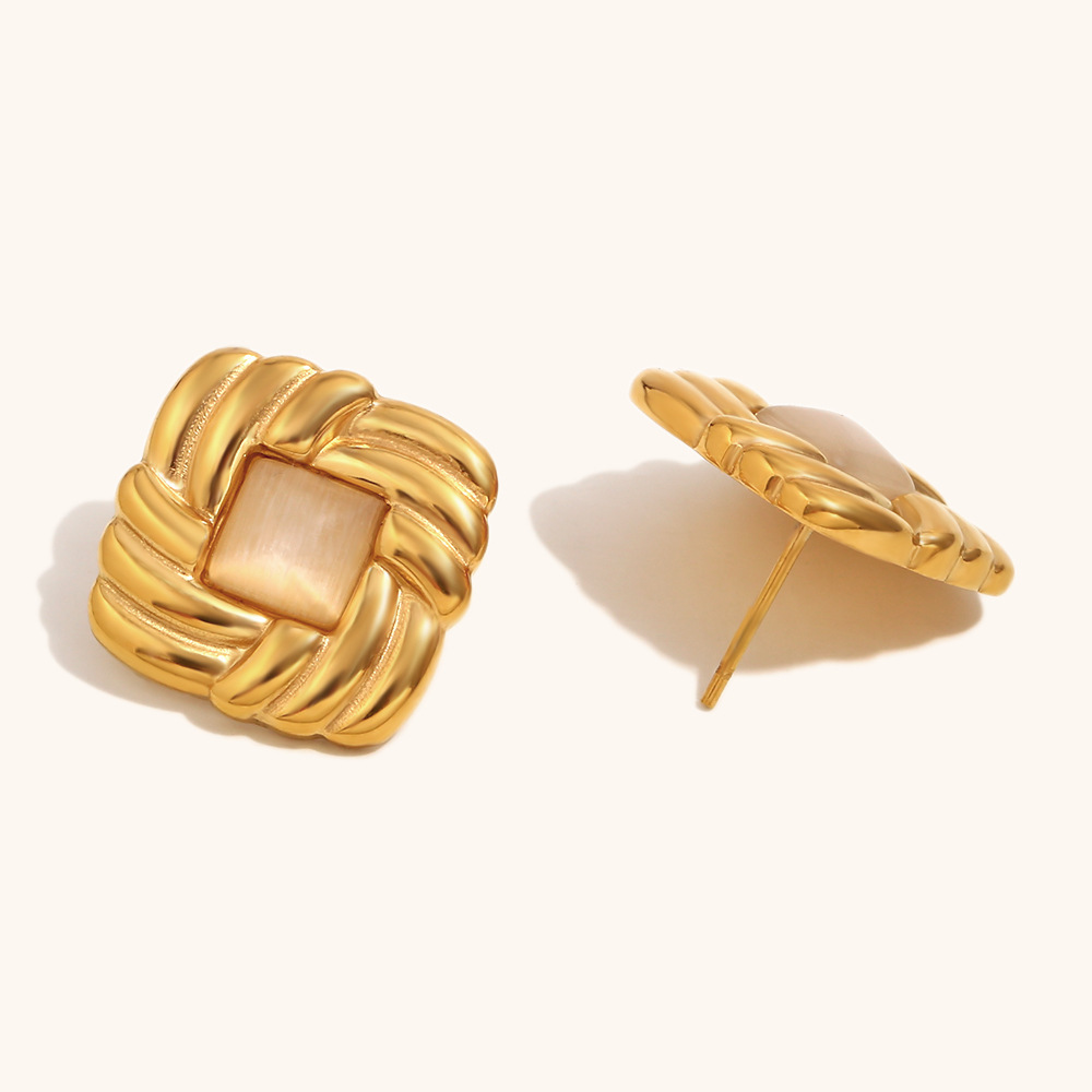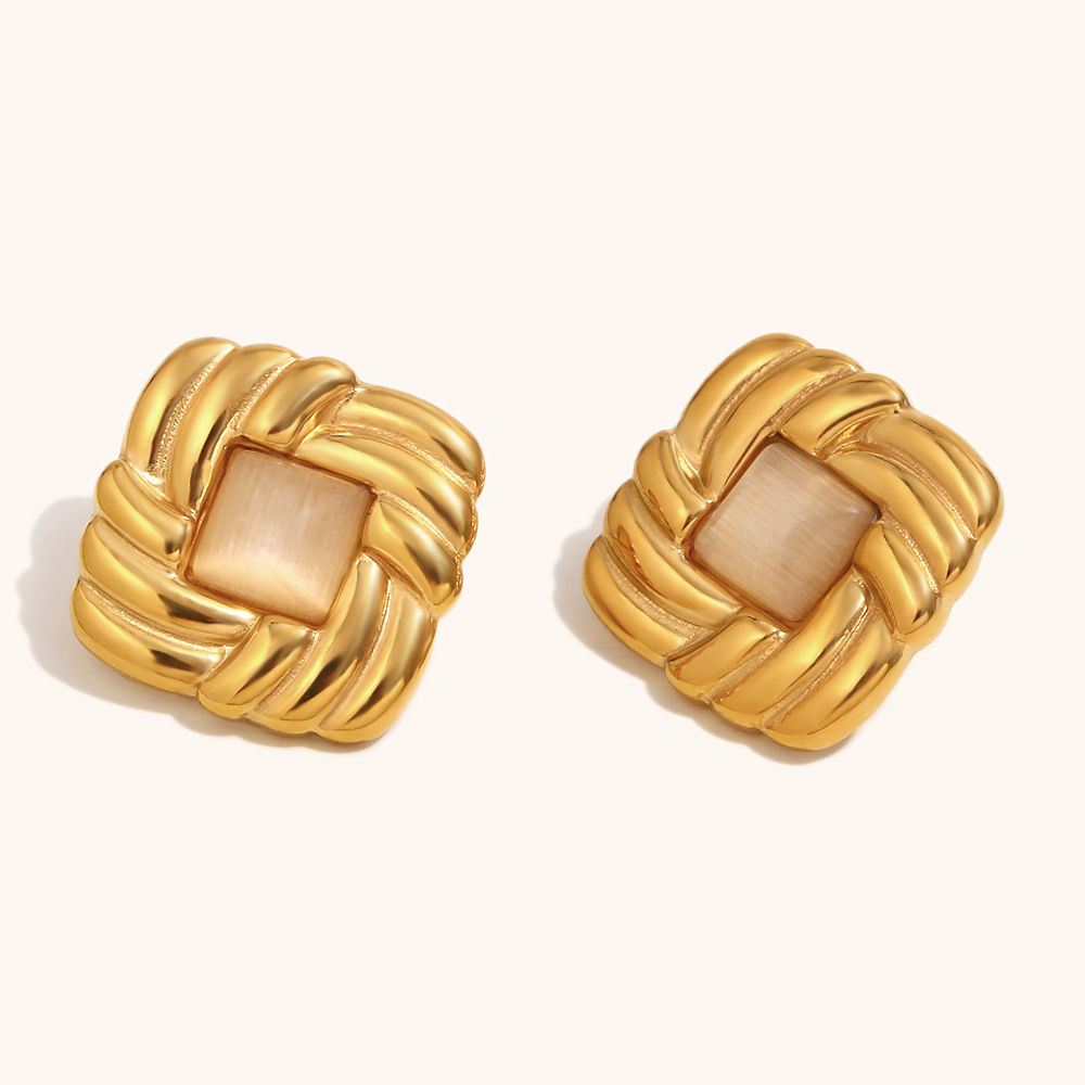 Stainless Steel Stud Øreringe, 304 rustfrit stål, med Cats Eye, Square, guldfarve belagt, for kvinde, Solgt af par