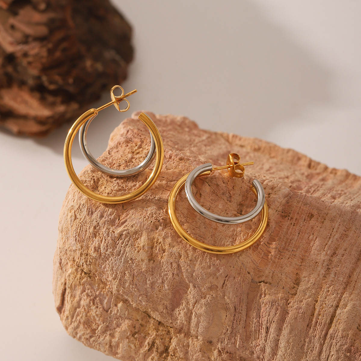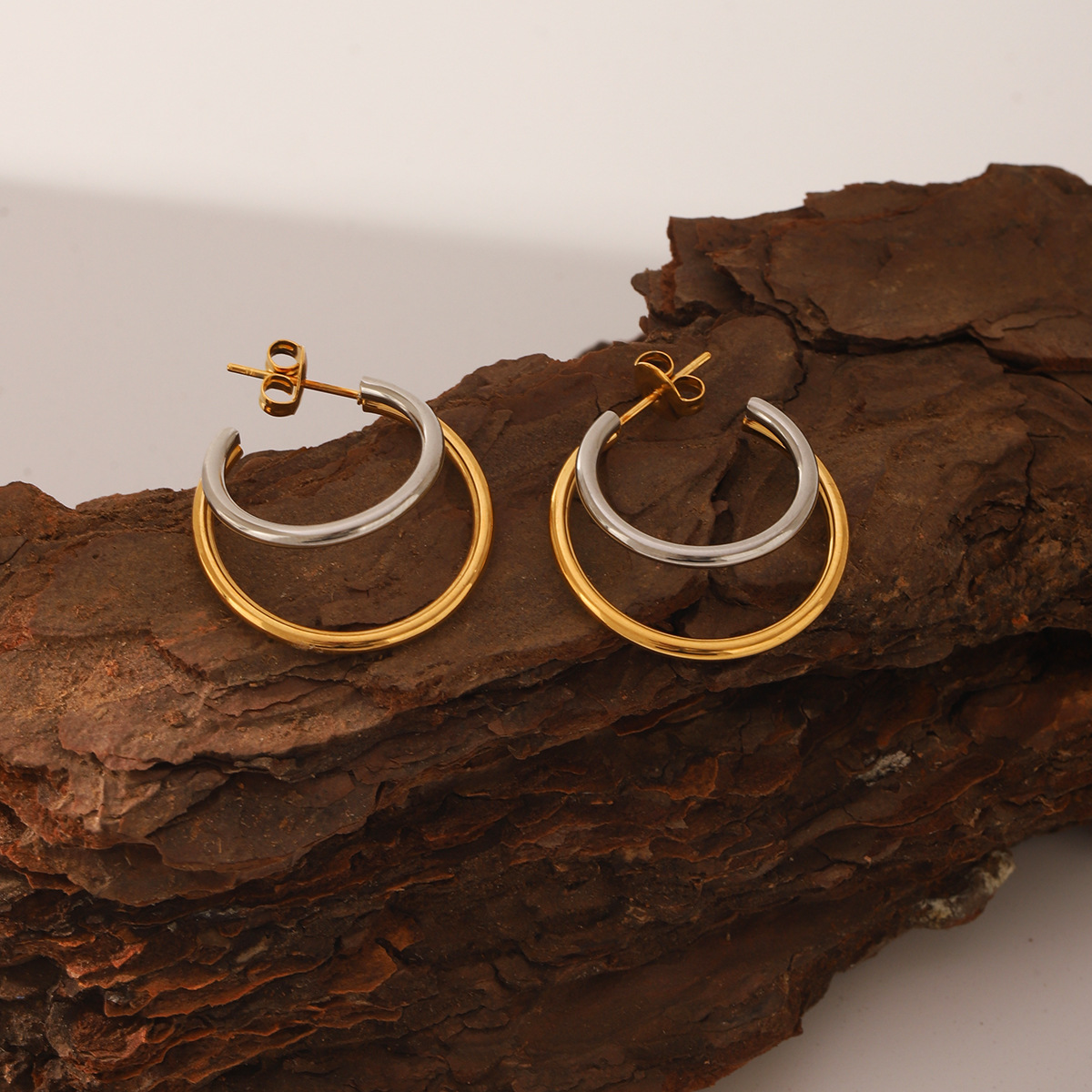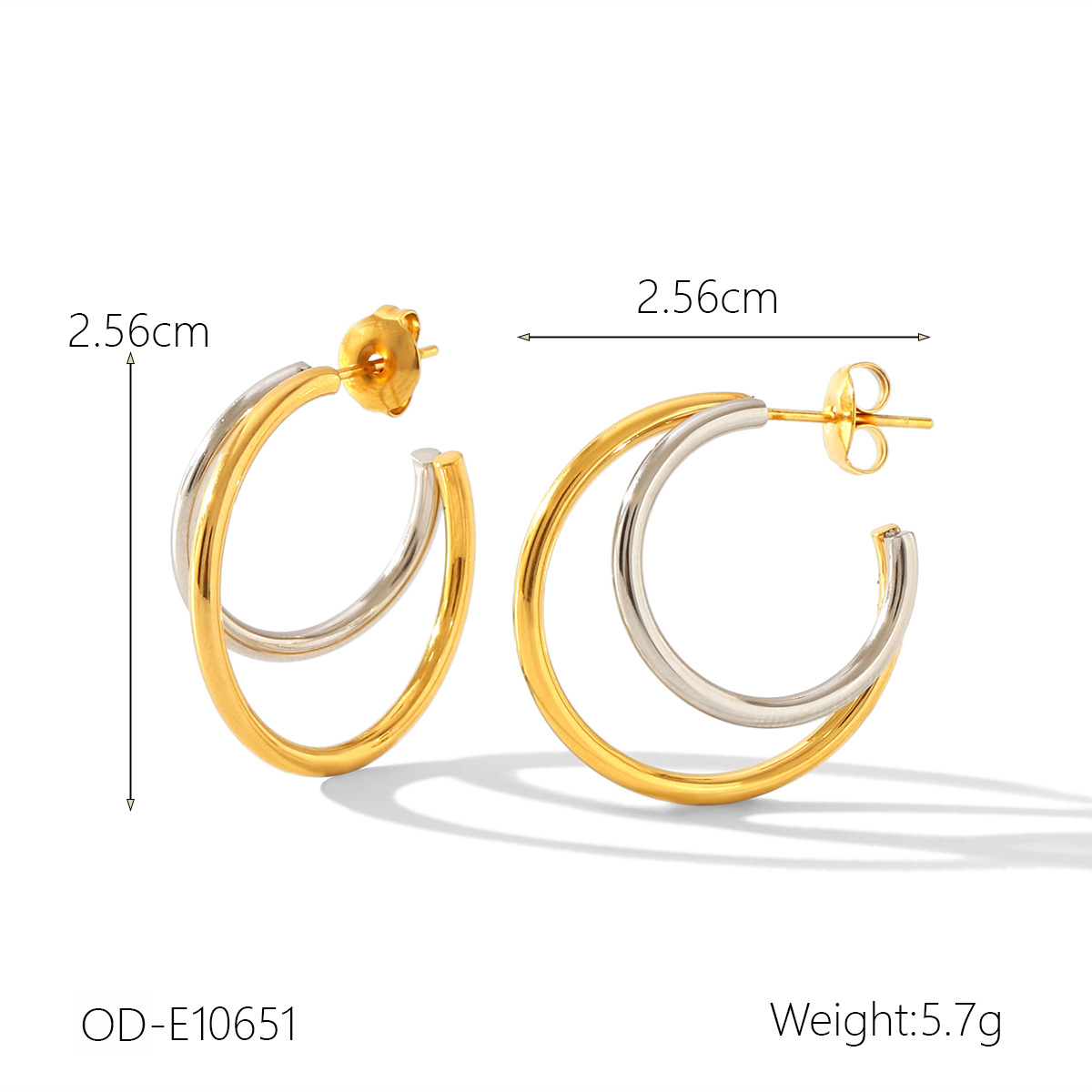 Stainless Steel Stud Øreringe, 304 rustfrit stål, forgyldt, for kvinde & to tone & hule, Solgt af PC