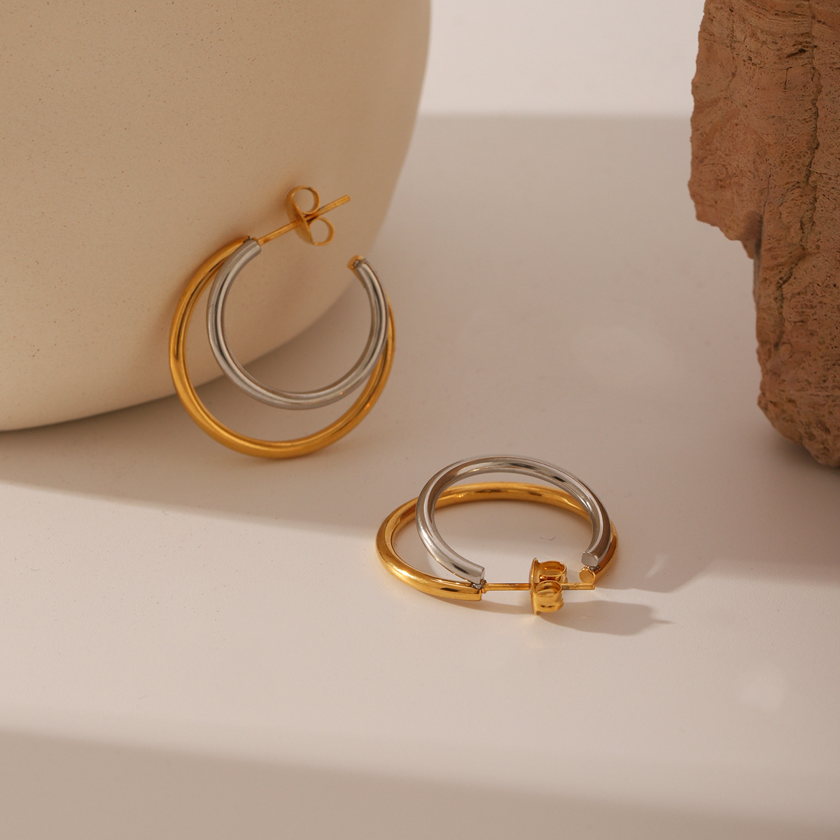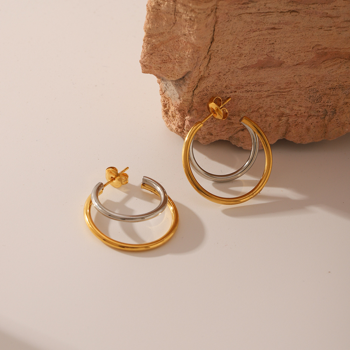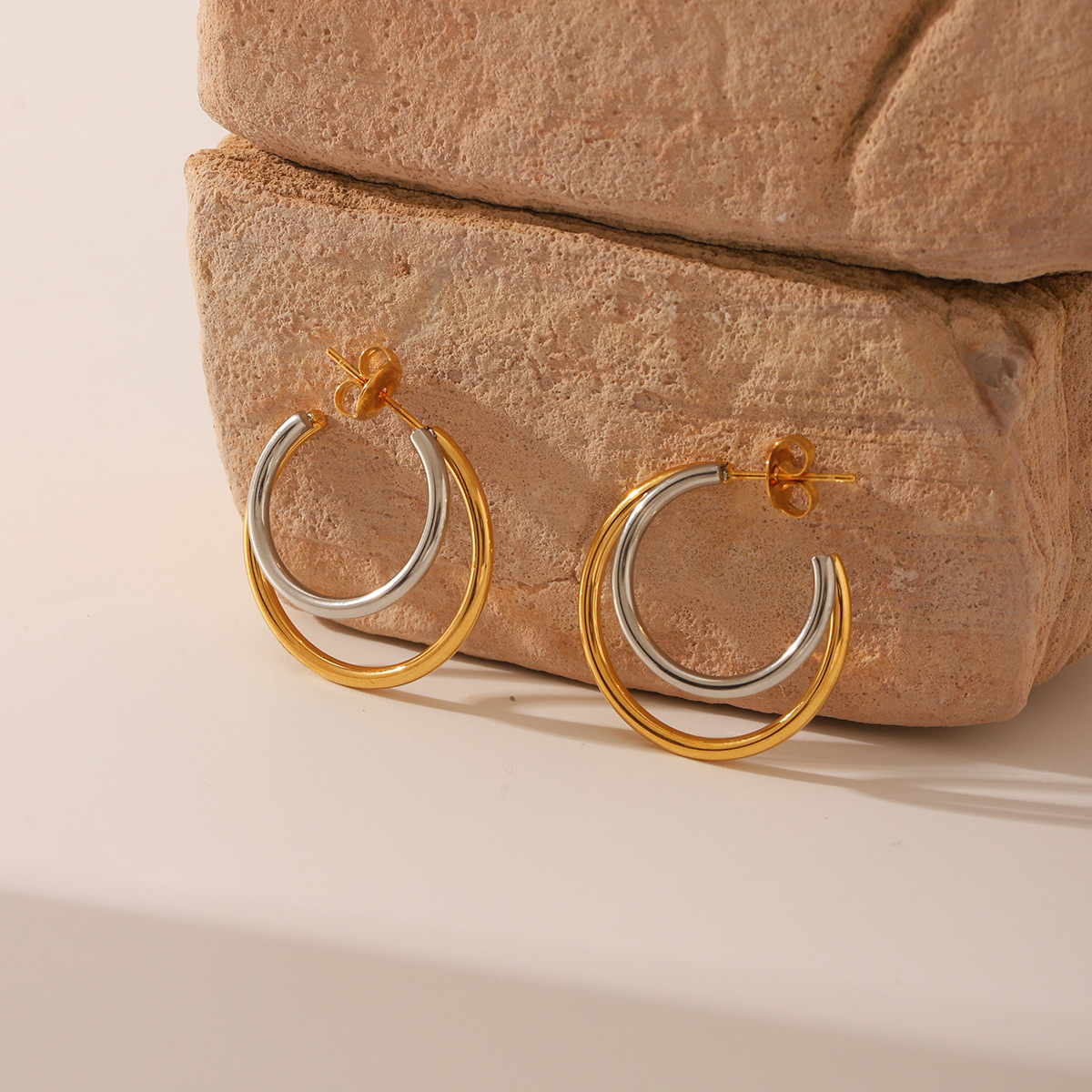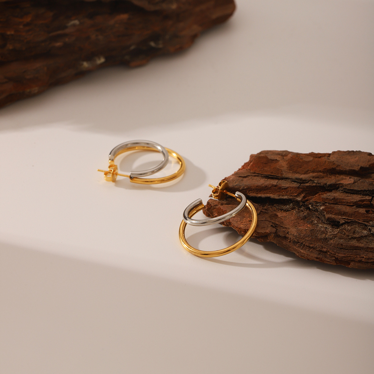 Stainless Steel Stud Øreringe, 304 rustfrit stål, forgyldt, for kvinde & to tone & hule, Solgt af PC