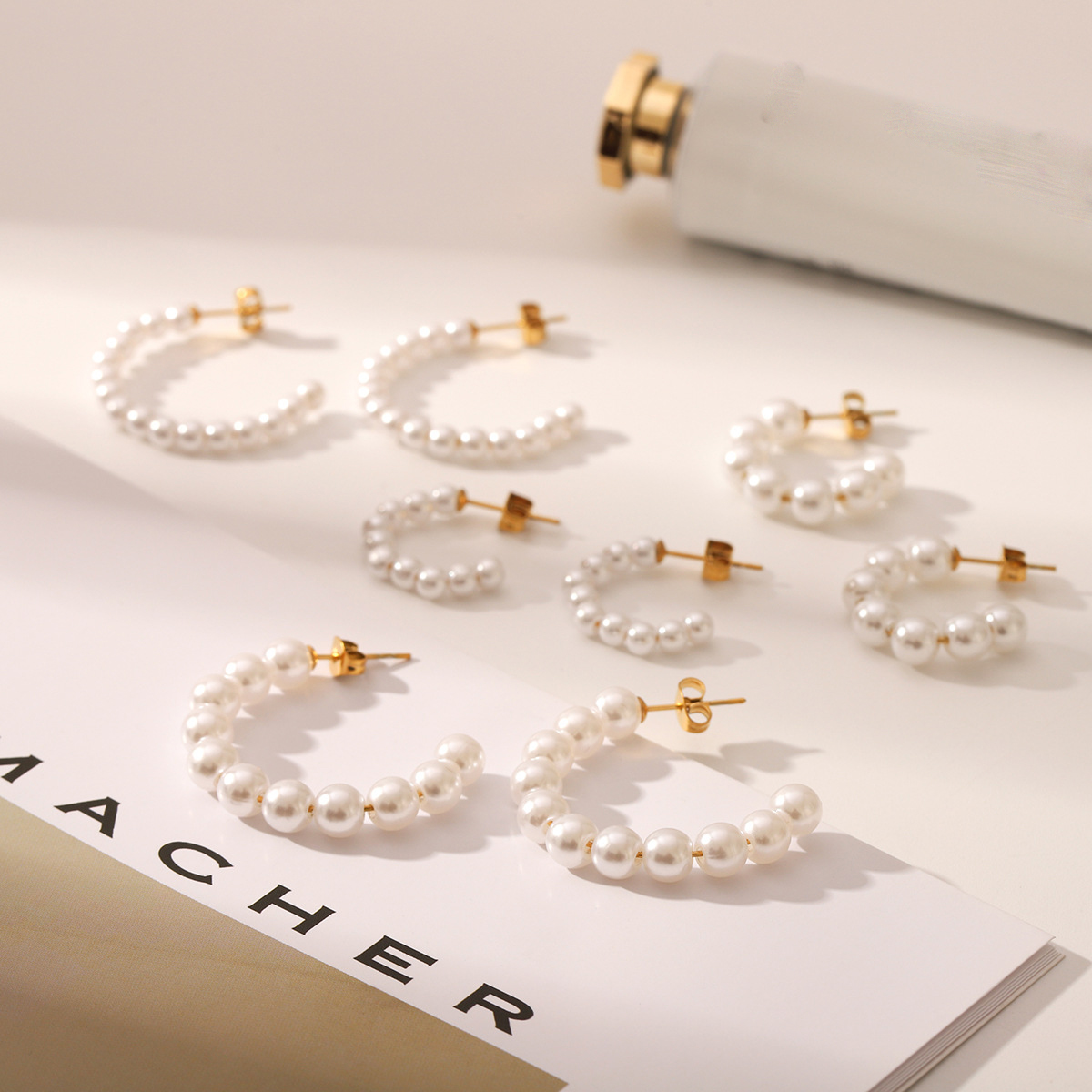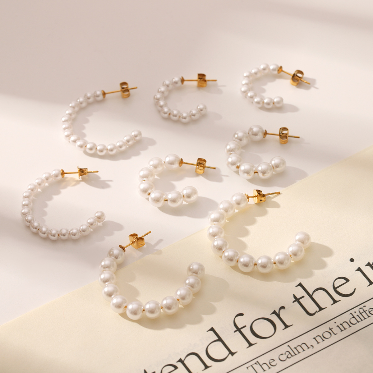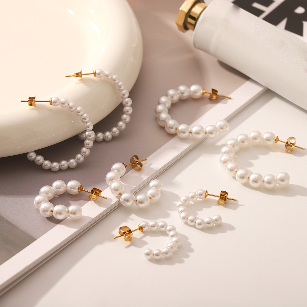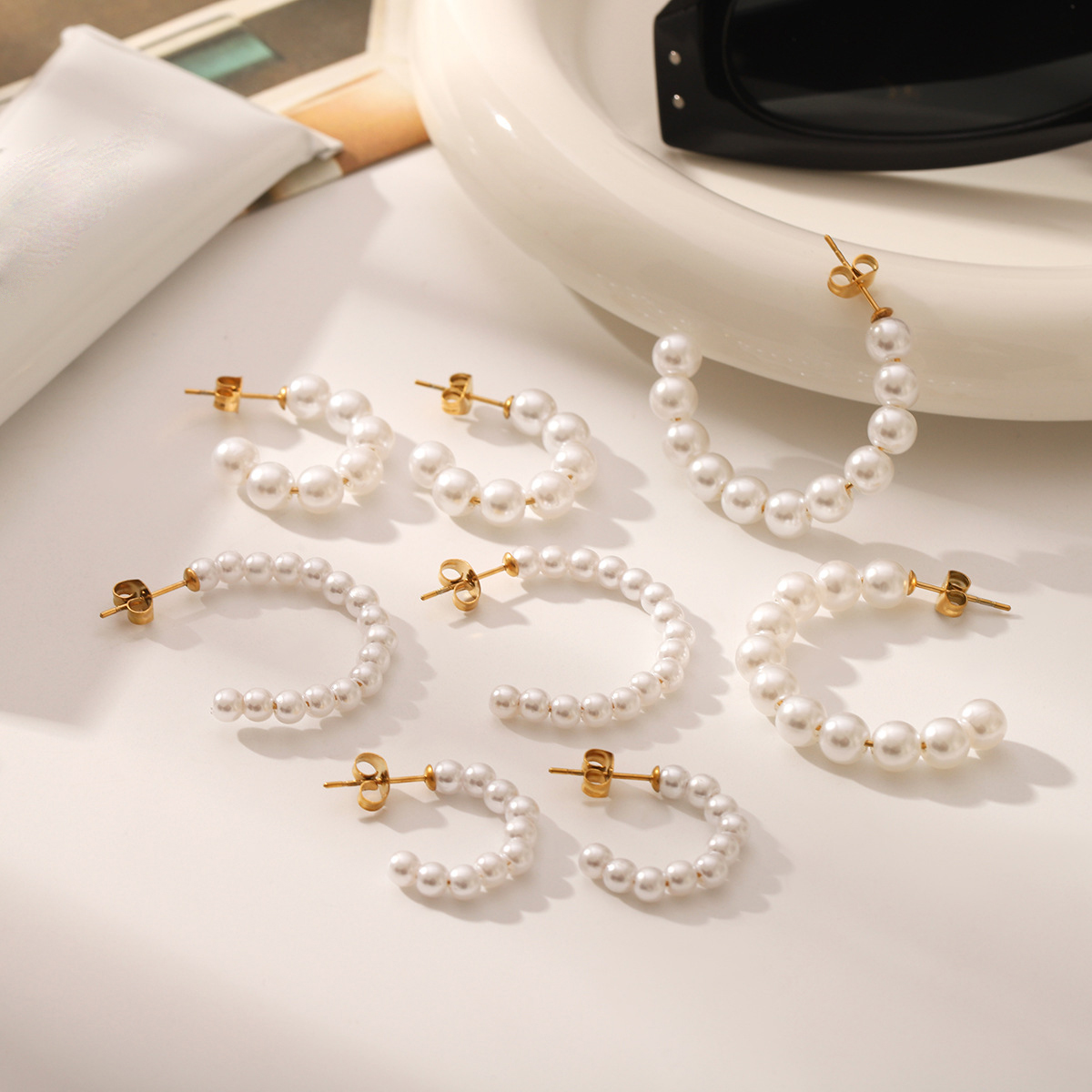 Stainless Steel Stud Øreringe, 304 rustfrit stål, med Plastic Pearl, 18K forgyldt, mode smykker & forskellig størrelse for valg & for kvinde, Solgt af par