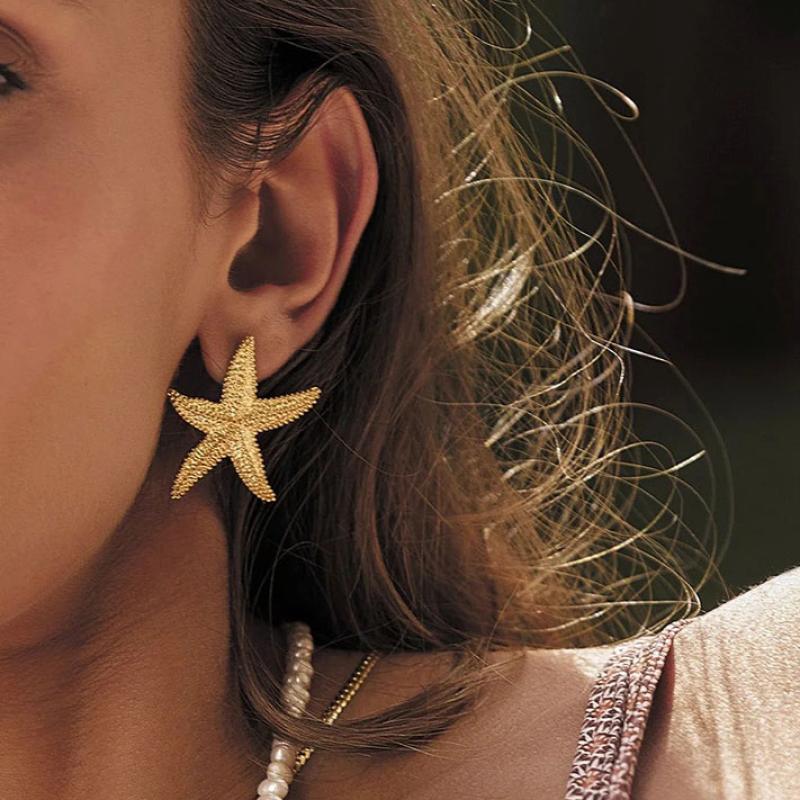Stainless Steel Stud Øreringe, 304 rustfrit stål, Starfish, 18K forgyldt, mode smykker & for kvinde, Solgt af par
