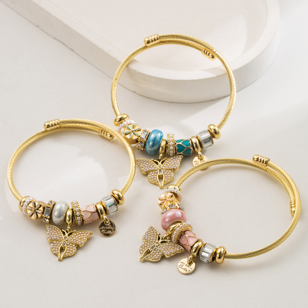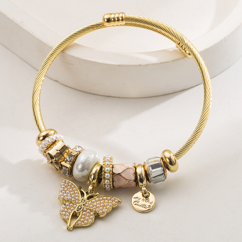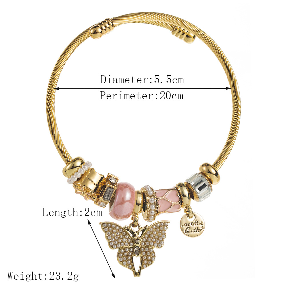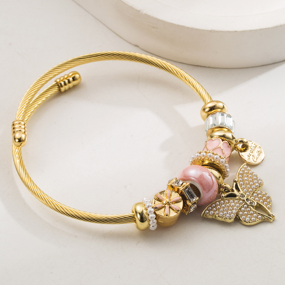 European Armbånd, 304 rustfrit stål, med Plastic Pearl & Zinc Alloy, guldfarve belagt, mode smykker & emalje & med rhinestone, flere farver til valg, Solgt af PC