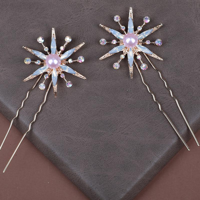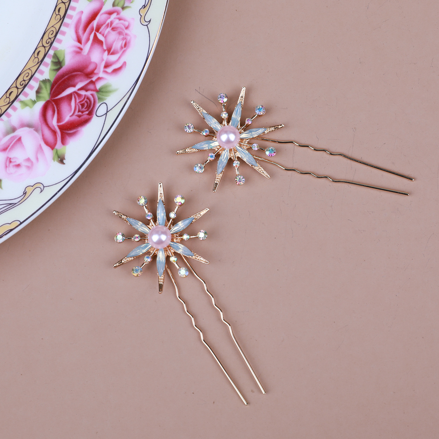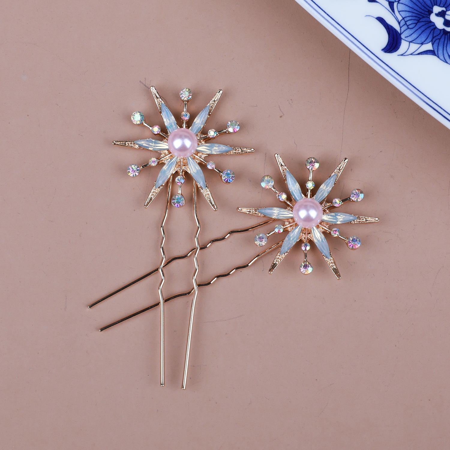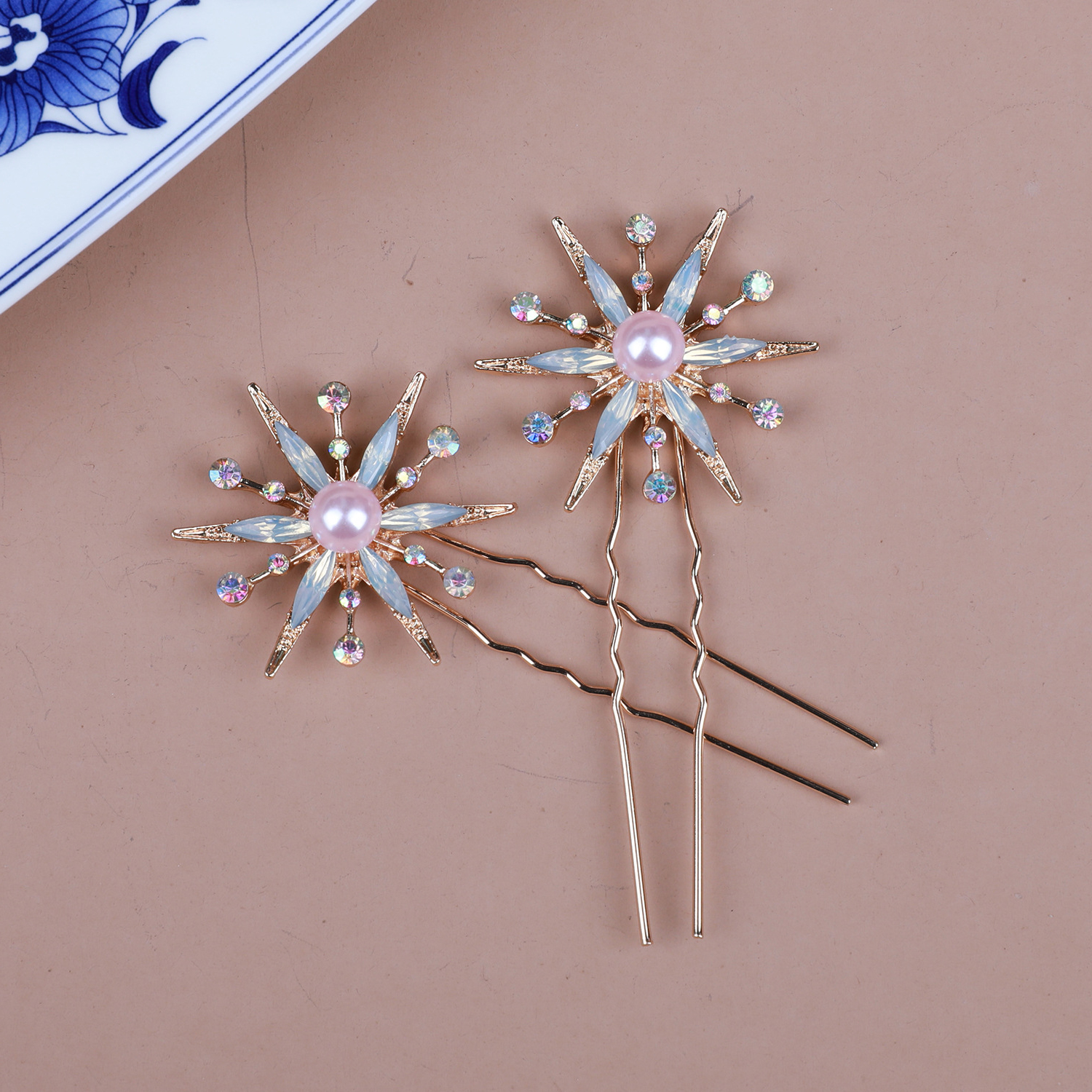 Brude hår Pins, Zinc Alloy, med messingtråd & Rhinestone & Plastic Pearl, håndlavet, 2 stykker & mode smykker & for kvinde, rosa guld farve, 80x35x10mm, Solgt af sæt