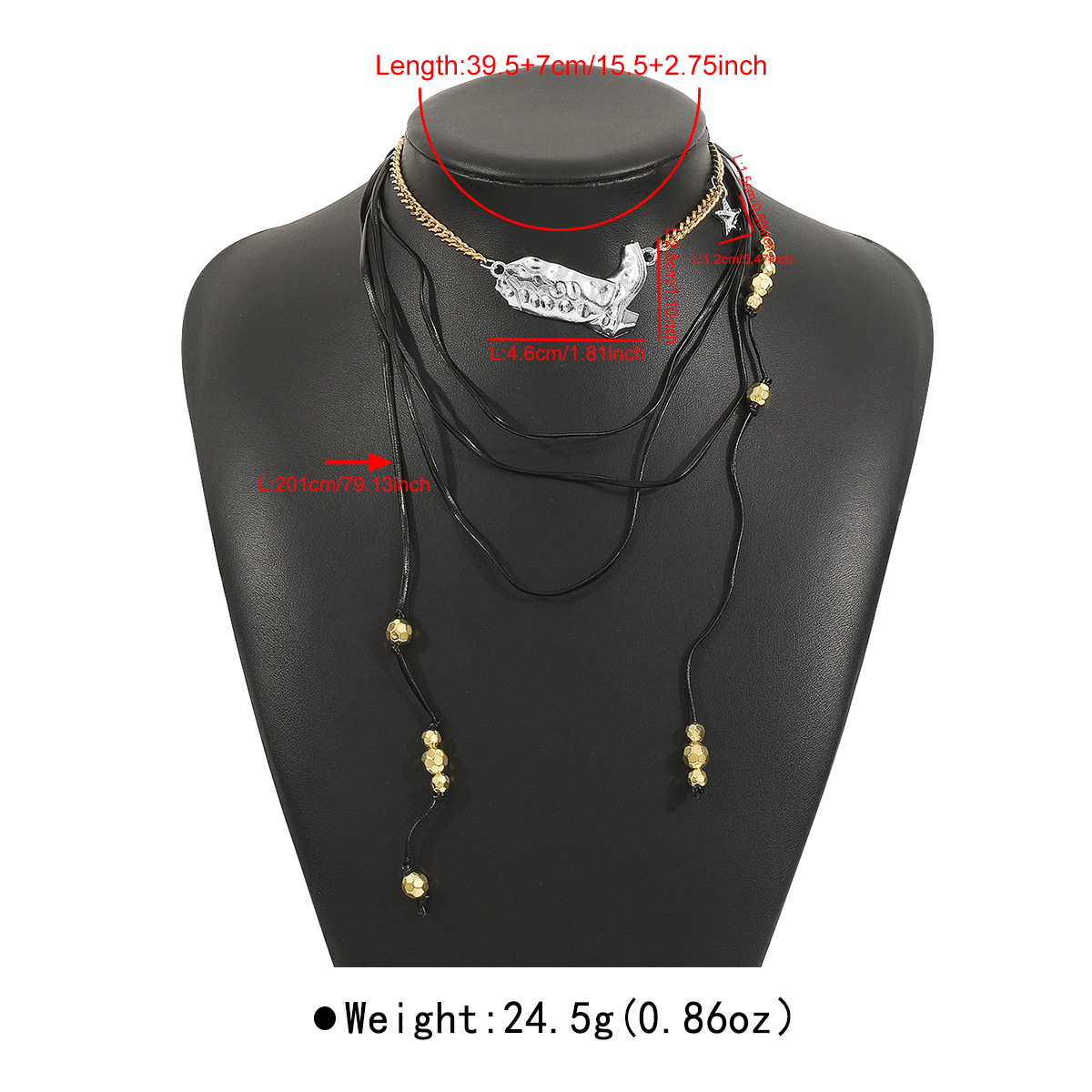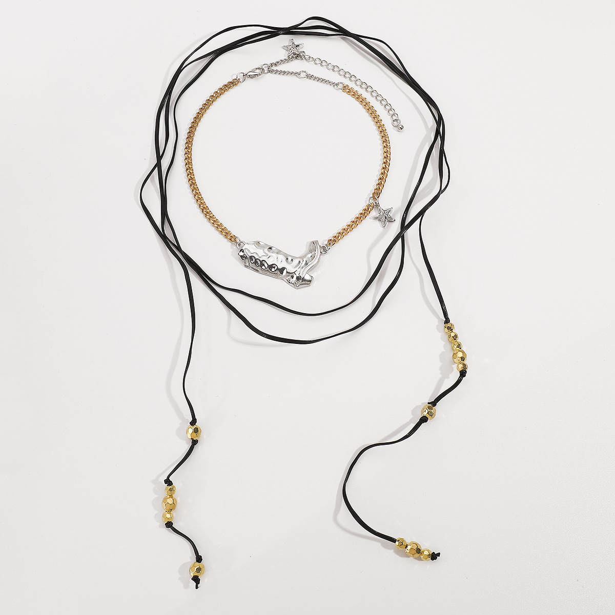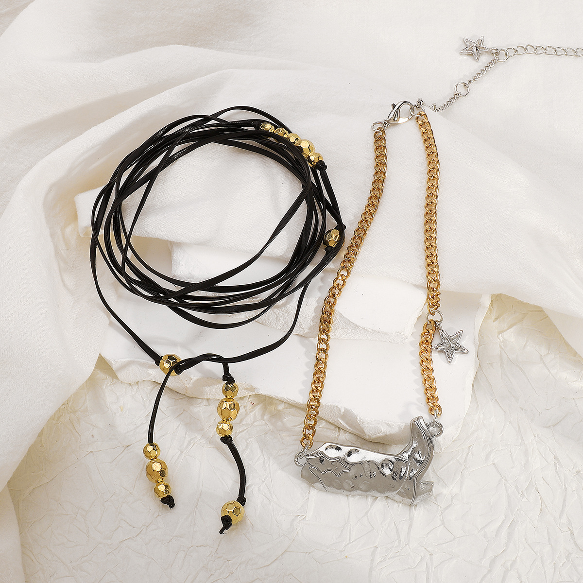 CCB Halskæder, Kobber Coated Plastic, med lædersnor & jern kæde & Zinc Alloy, håndlavet, 2 stykker & for kvinde & to tone, Solgt af sæt