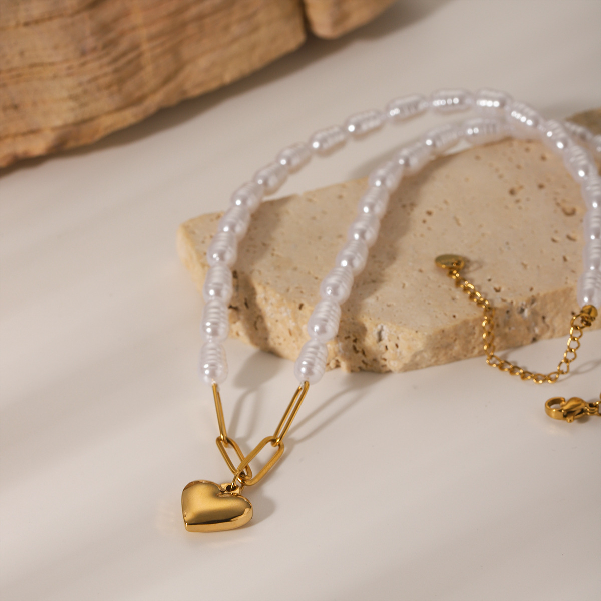 Rustfrit stål smykker halskæde, 304 rustfrit stål, med Plastic Pearl, guldfarve belagt, mode smykker, gylden, Solgt af PC