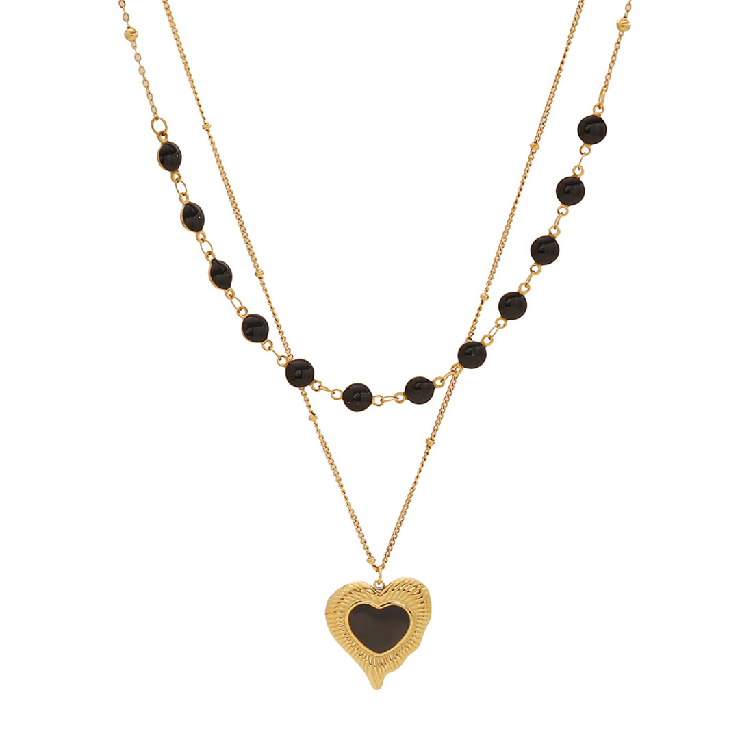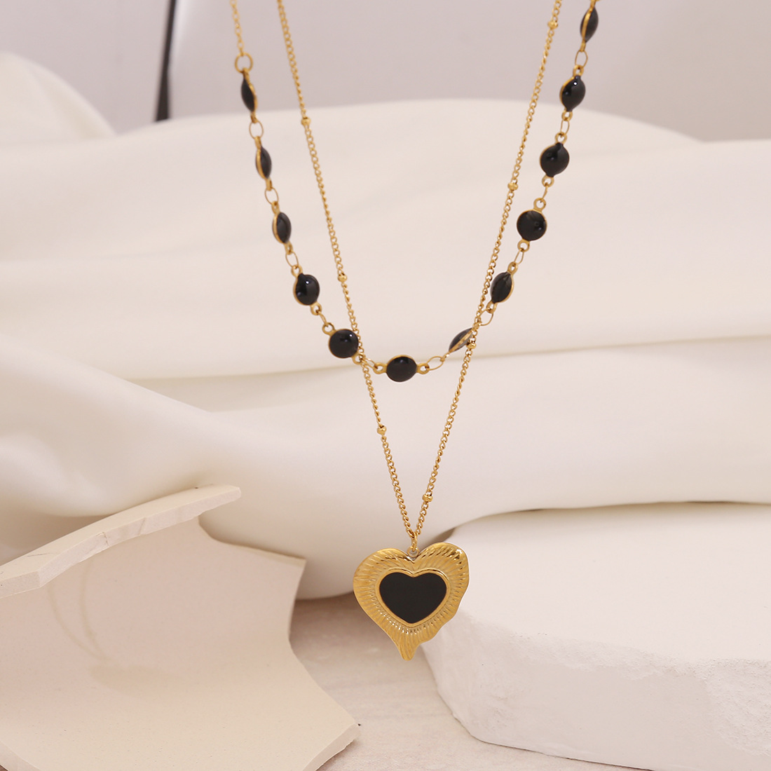 Rustfrit stål smykker halskæde, 304 rustfrit stål, forgyldt, Dobbelt lag & forskellige stilarter for valg & for kvinde & epoxy sticker, gylden, Solgt af PC