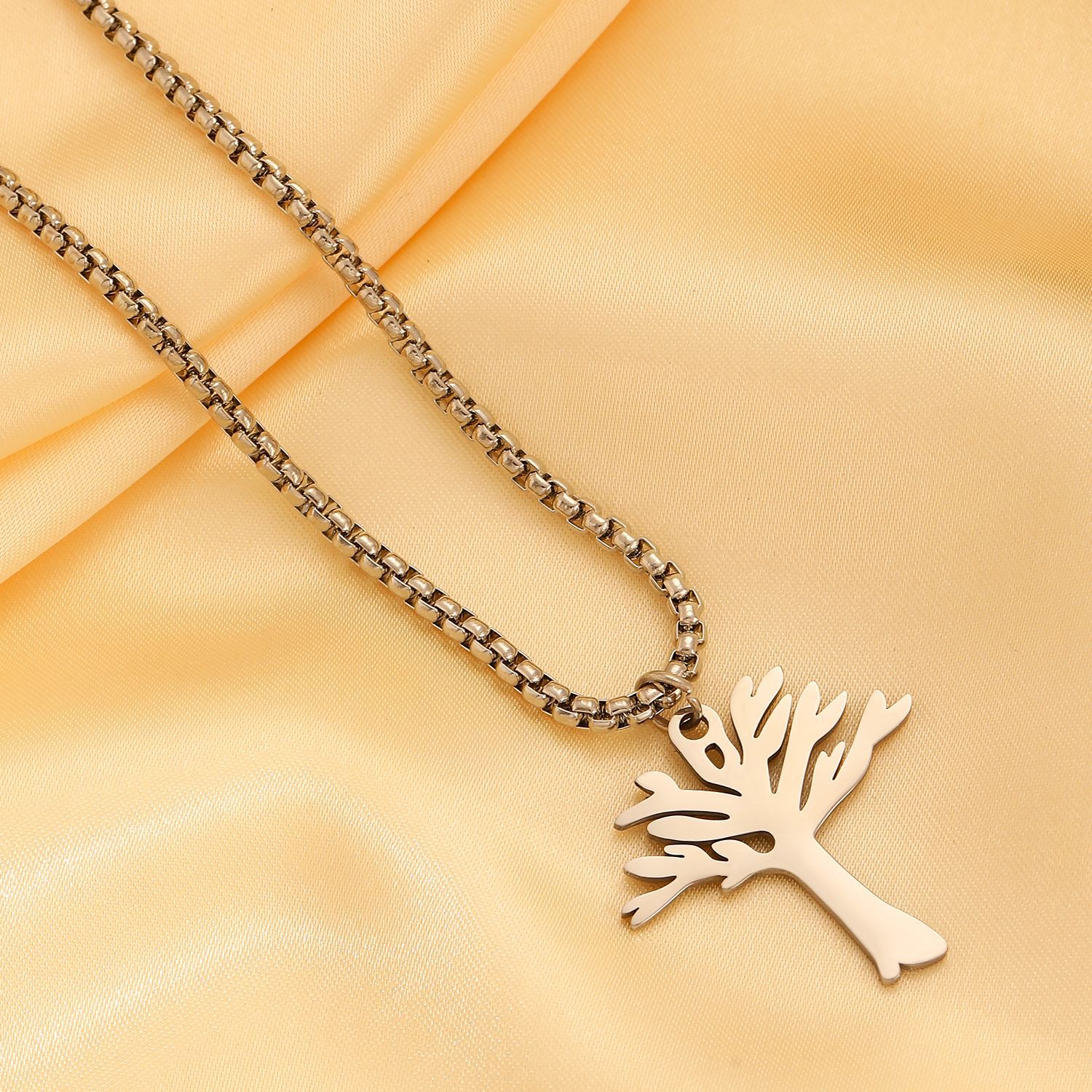 Rustfrit stål smykker halskæde, 304 rustfrit stål, Tree, mode smykker & for kvinde, oprindelige farve, 29x29mm, Længde Ca. 62 cm, Solgt af PC