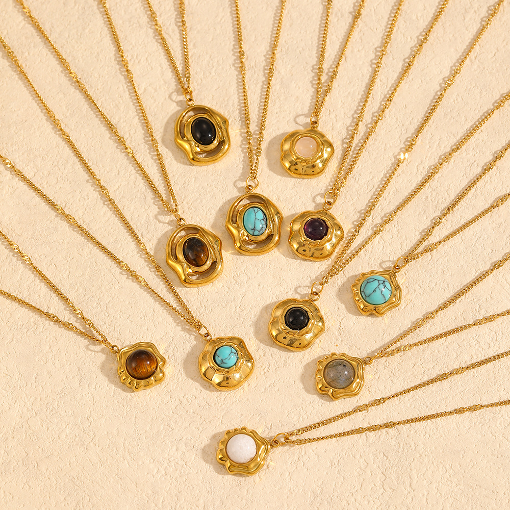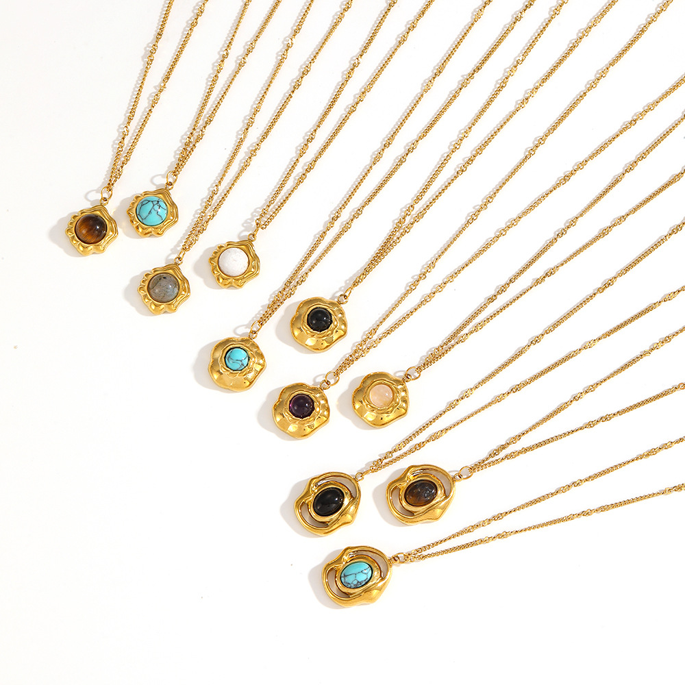 Rustfrit stål smykker halskæde, 304 rustfrit stål, med Ædelsten, guldfarve belagt, mode smykker, flere farver til valg, Solgt af PC