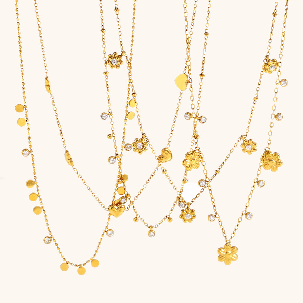 Rustfrit stål smykker halskæde, 304 rustfrit stål, med Cubic Zirconia, 18K forgyldt, mode smykker & forskellige stilarter for valg & for kvinde, Solgt af PC