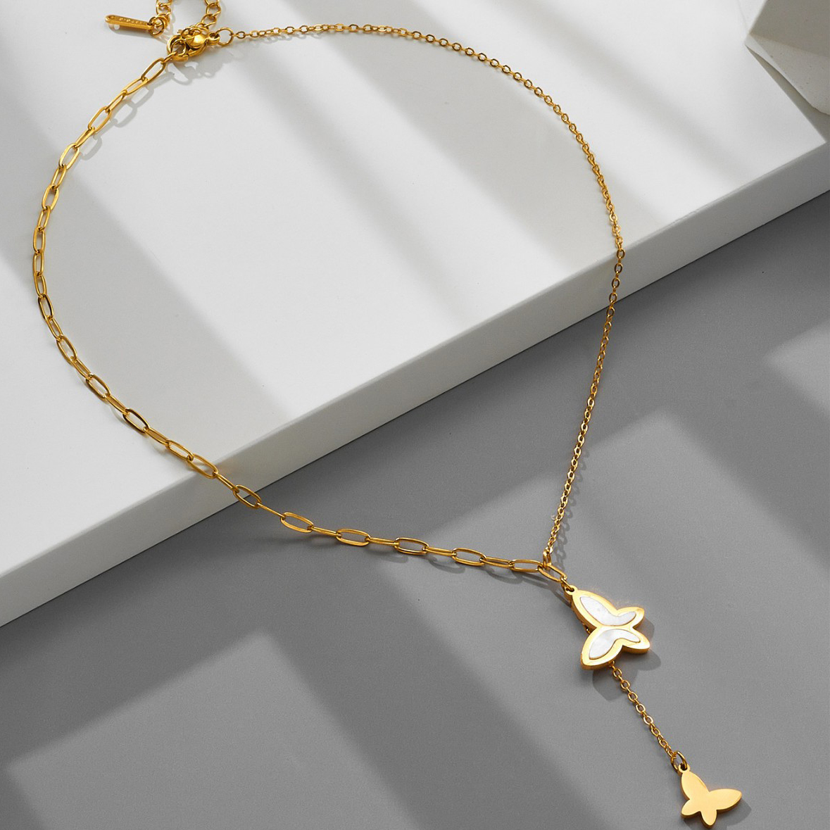 Rustfrit stål smykker halskæde, 304 rustfrit stål, med White Shell, forgyldt, mode smykker & for kvinde, gylden, Længde Ca. 45 cm, Solgt af PC