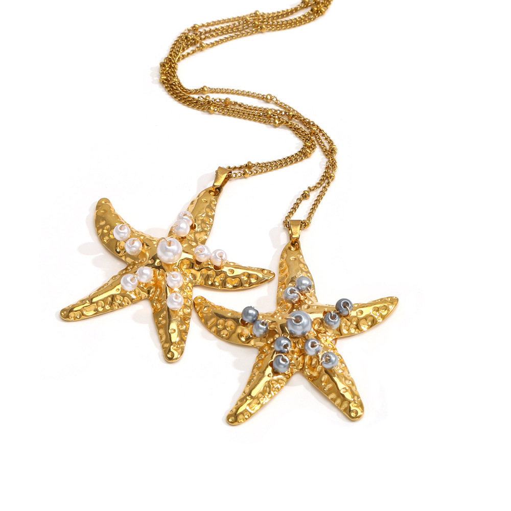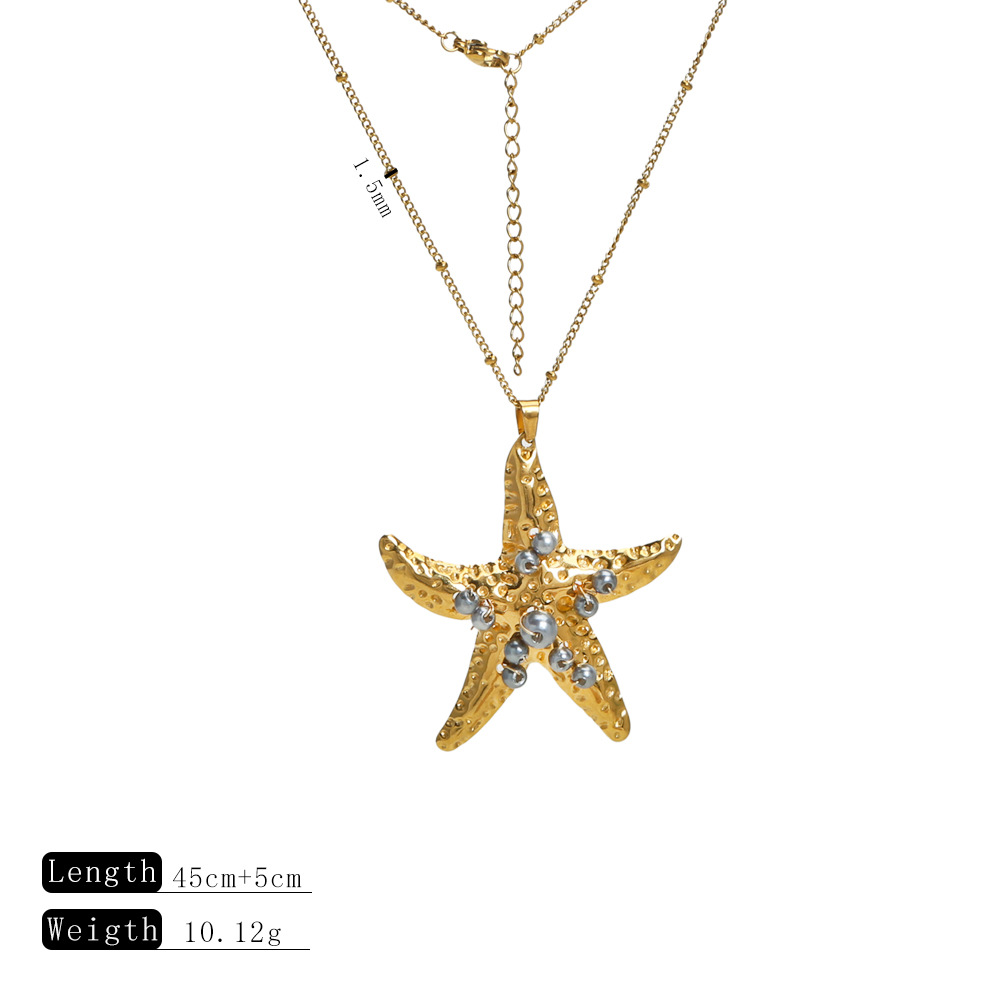 Rustfrit stål smykker halskæde, 304 rustfrit stål, med Plastic Pearl, Stjerne, guldfarve belagt, mode smykker, gylden, Solgt af PC