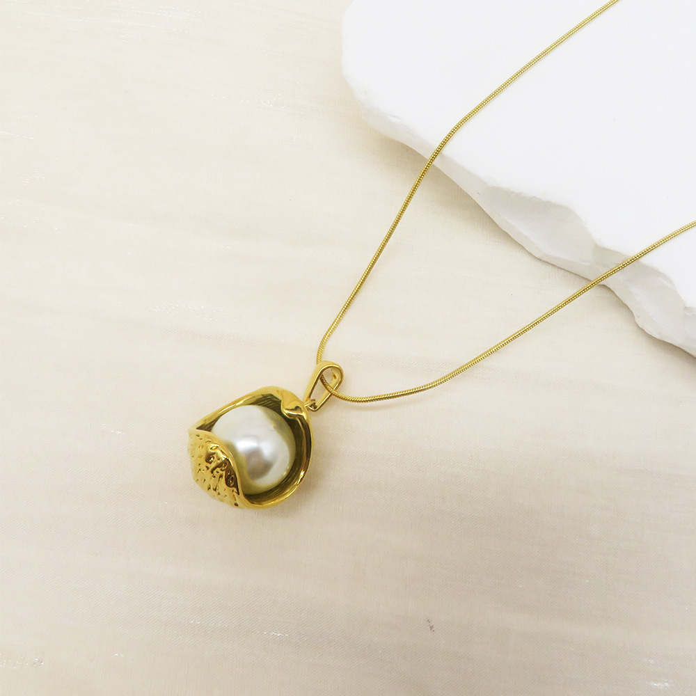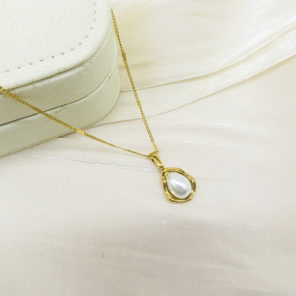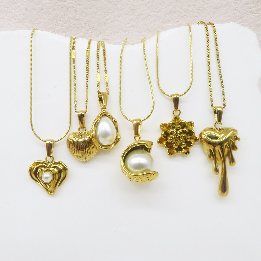 Rustfrit stål smykker halskæde, 304 rustfrit stål, med Plastic Pearl, 18K forgyldt, mode smykker & forskellige stilarter for valg & for kvinde, Længde Ca. 41-50 cm, Solgt af PC
