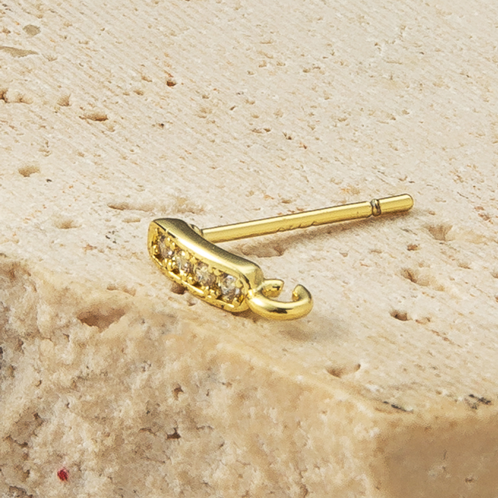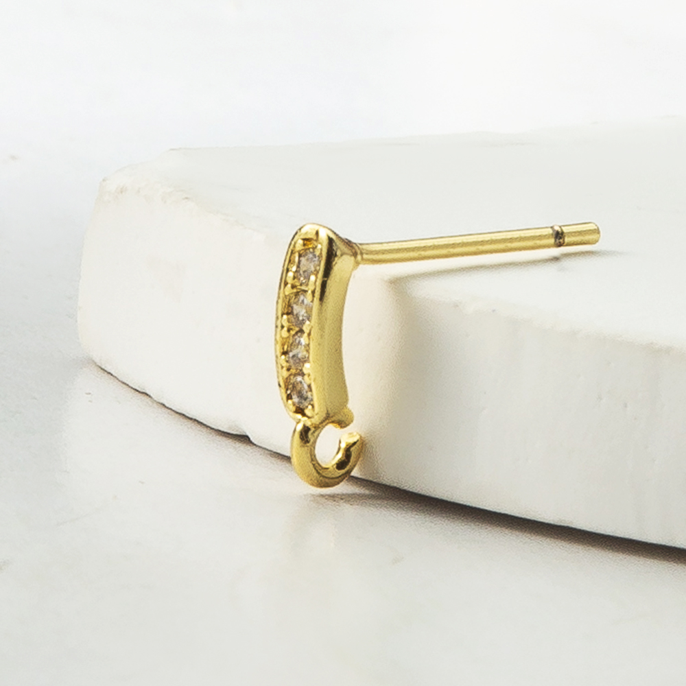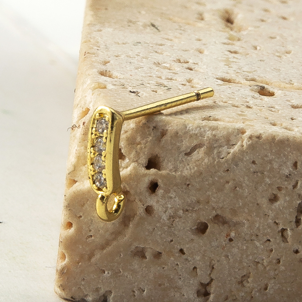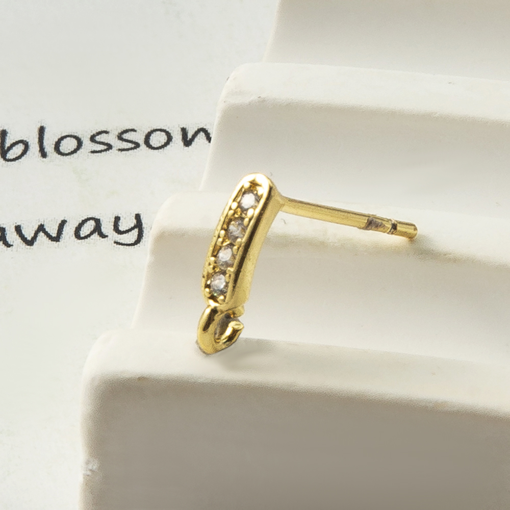 Messing Earring Drop Component, forgyldt, mode smykker & Micro Pave cubic zirconia, guld, nikkel, bly & cadmium fri, 14.35x2.30x9.30mm, Solgt af PC