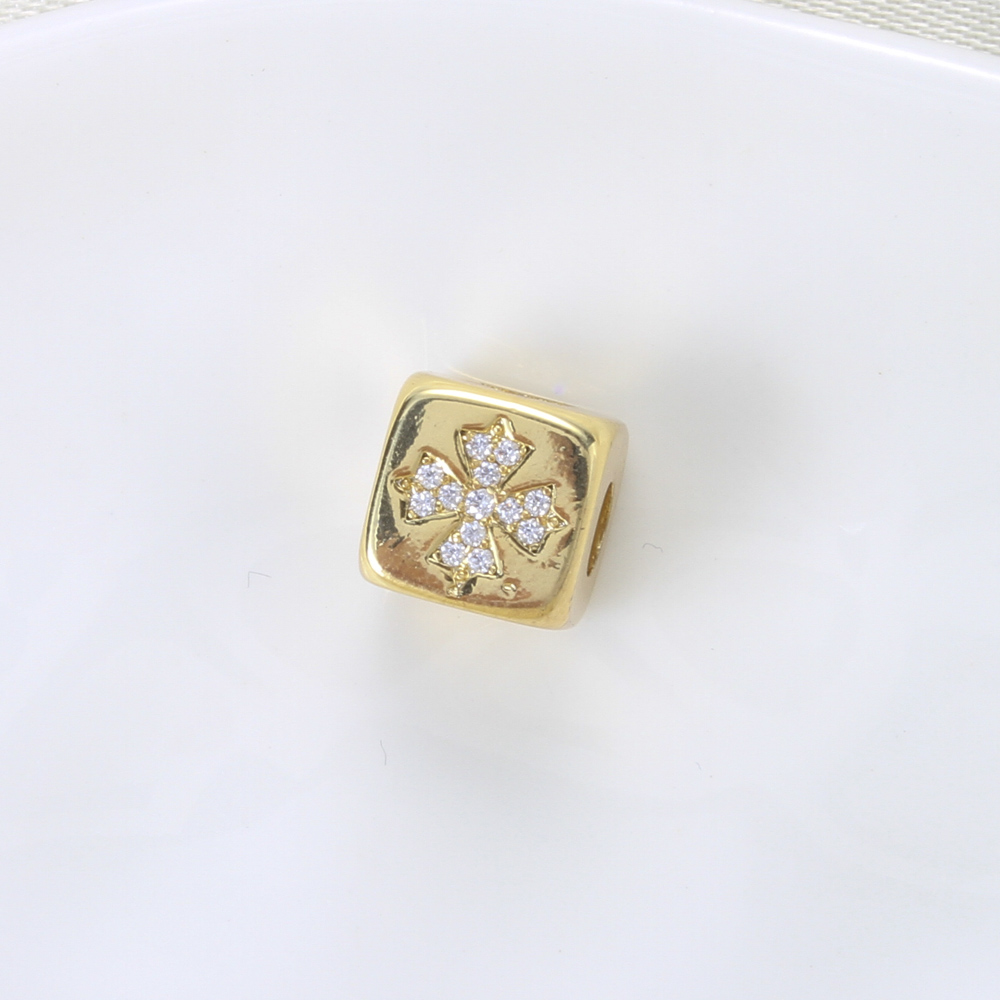 Cubic Zirconia Micro bane messing European perle, Square, forgyldt, du kan DIY & Micro Pave cubic zirconia, flere farver til valg, nikkel, bly & cadmium fri, 9x9x9mm, Solgt af PC