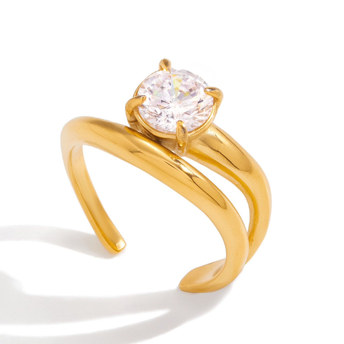 Cubic Zirconia rustfrit stål fingre Ringe, 304 rustfrit stål, med Cubic Zirconia, forgyldt, mode smykker & forskellig størrelse for valg & for kvinde, flere farver til valg, Solgt af PC