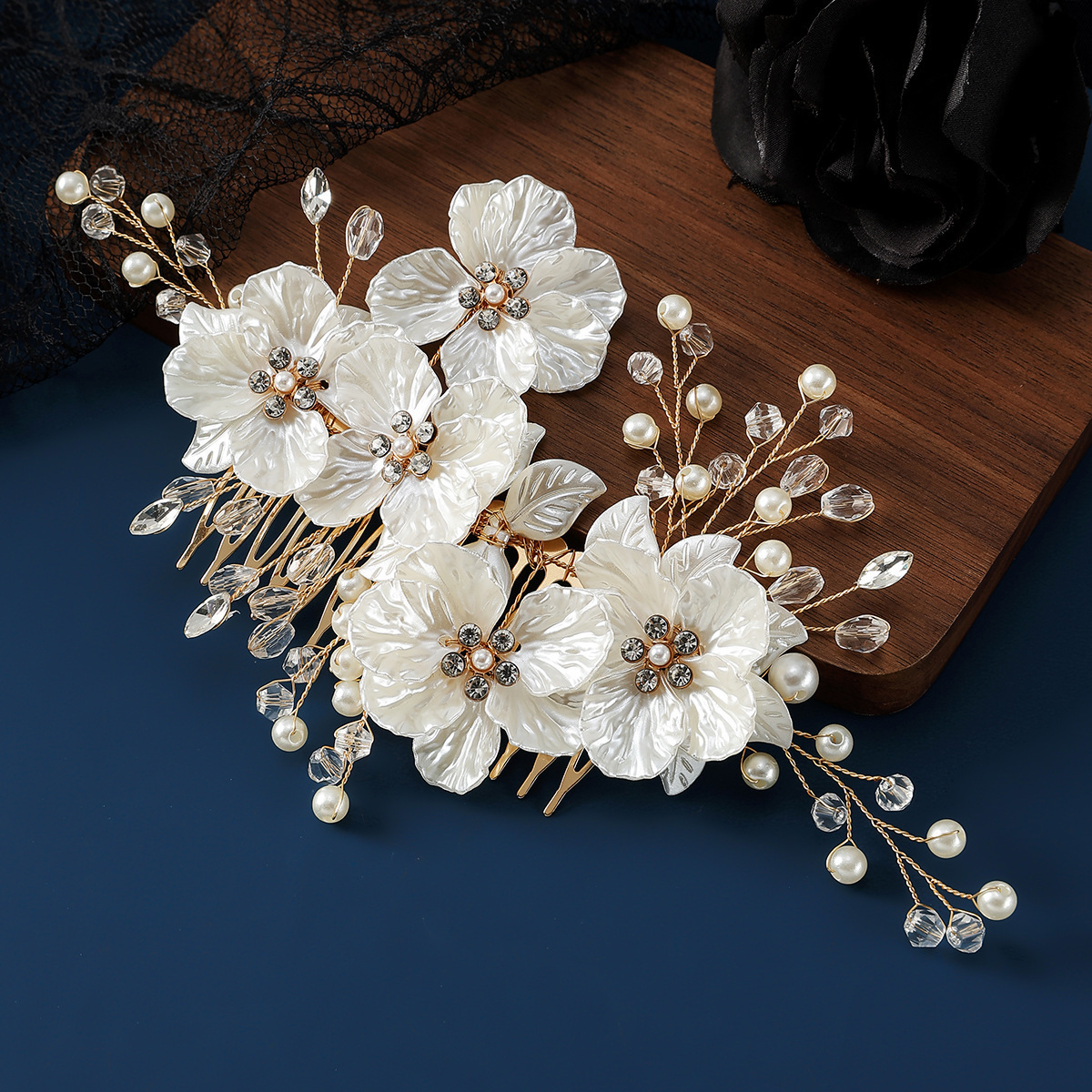 Brude Dekorative hår kam, Zinc Alloy, med messingtråd & Krystal & Plastic & Plastic Pearl, håndlavet, mode smykker & for kvinde & med rhinestone, flere farver til valg, 200x100mm, Solgt af PC