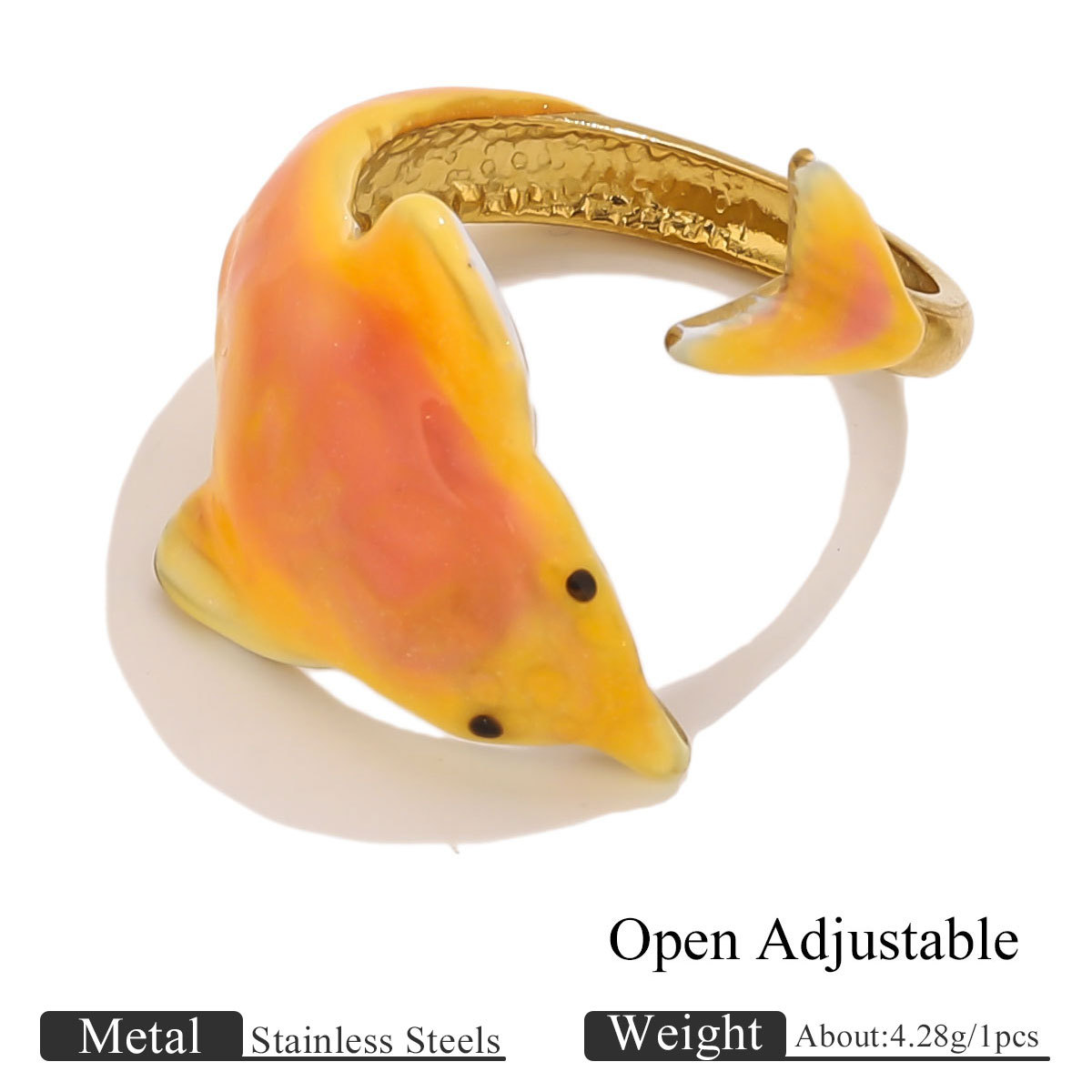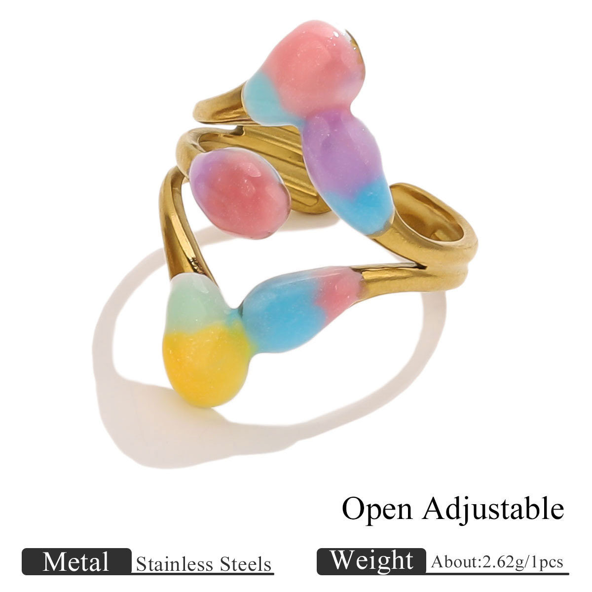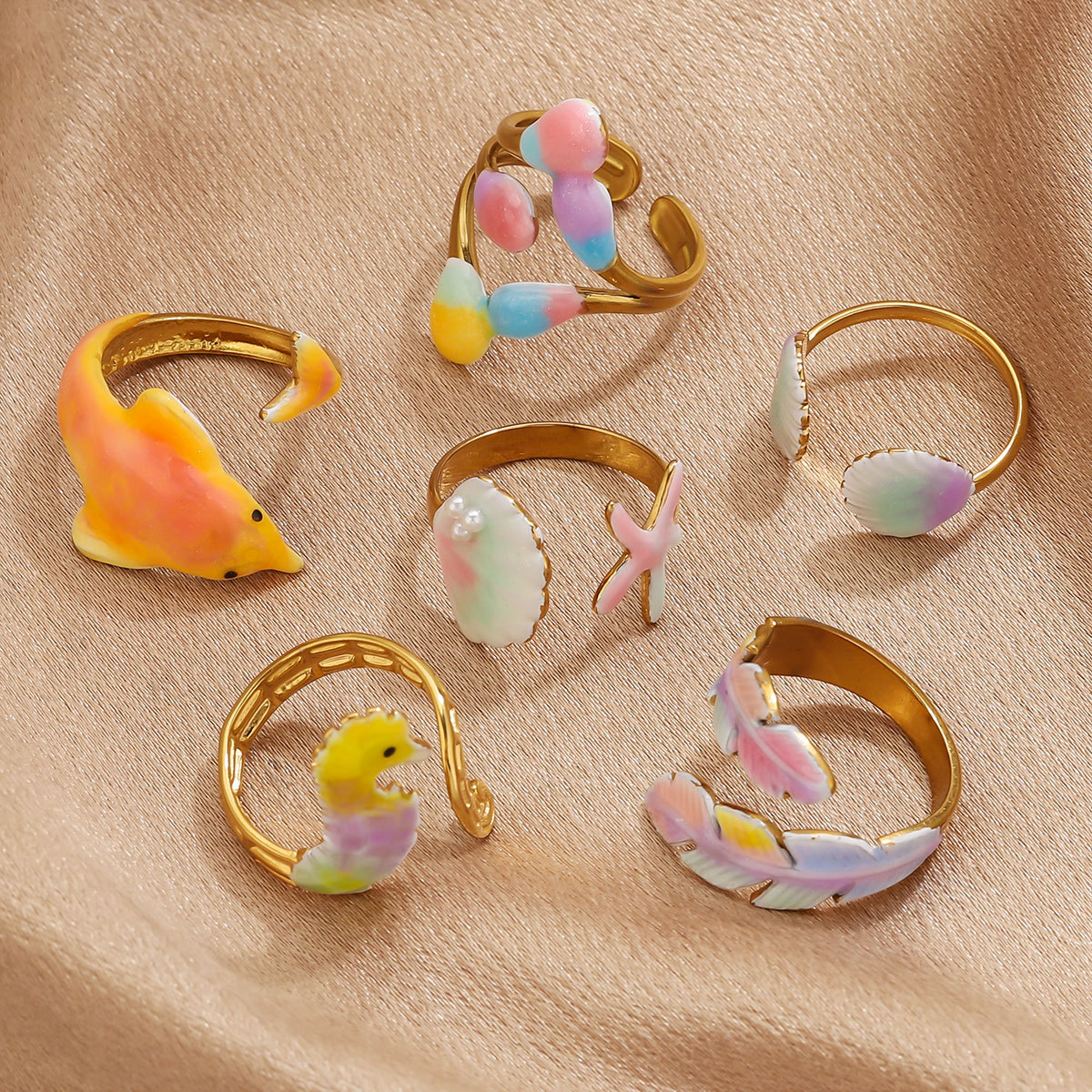 Emalje rustfrit stål fingre Ringe, 304 rustfrit stål, guldfarve belagt, forskellige stilarter for valg & for kvinde, 2pc'er/Bag, Solgt af Bag