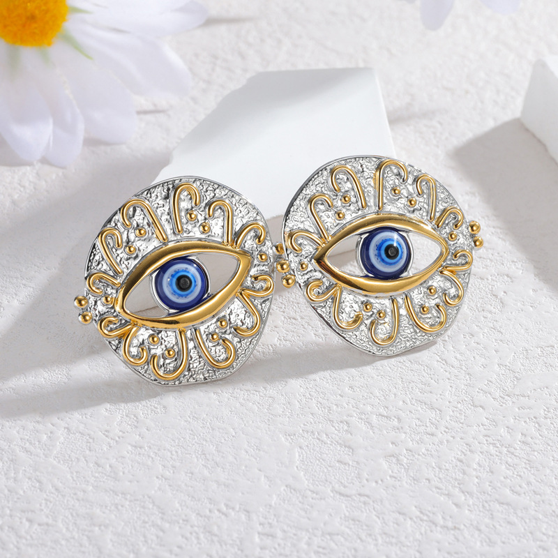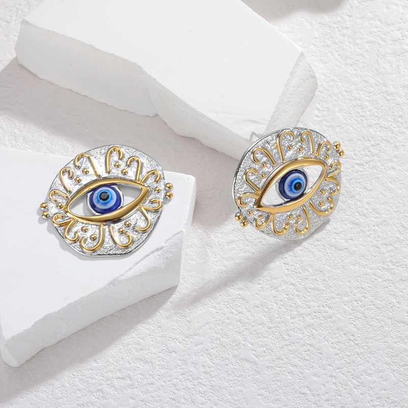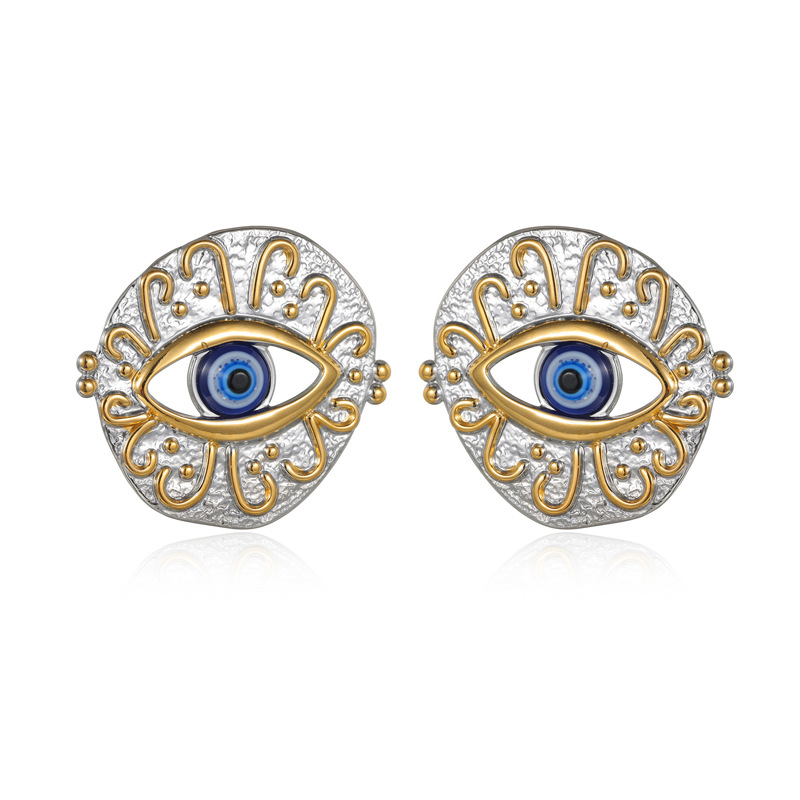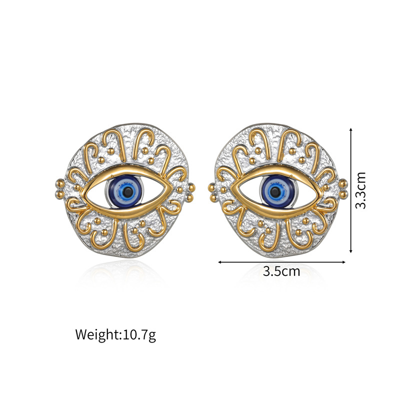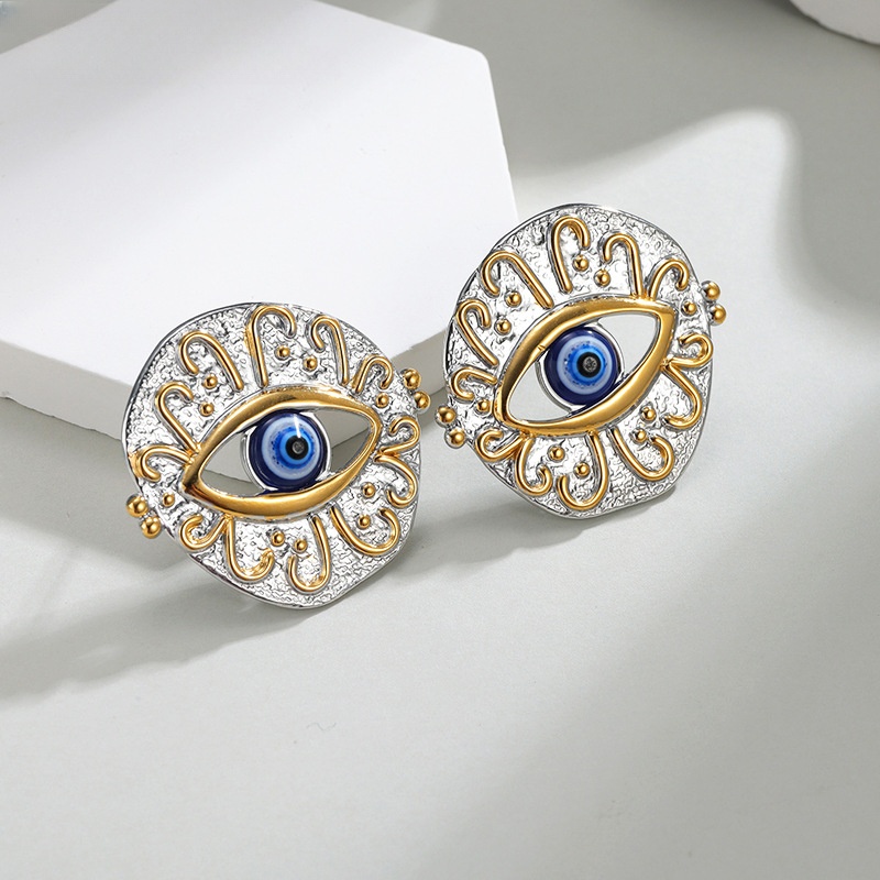 Evil Eye Øreringe, 304 rustfrit stål, forgyldt, for kvinde & emalje & hule, sølv, Solgt af par