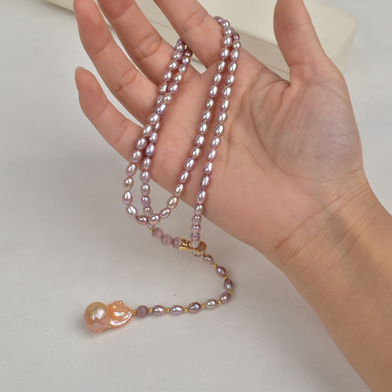 Ferskvandsperle Messing kæde halskæde, med Messing, Barok, forgyldt, mode smykker, flere farver til valg, 4-5mm, Længde 60 cm, Solgt af PC