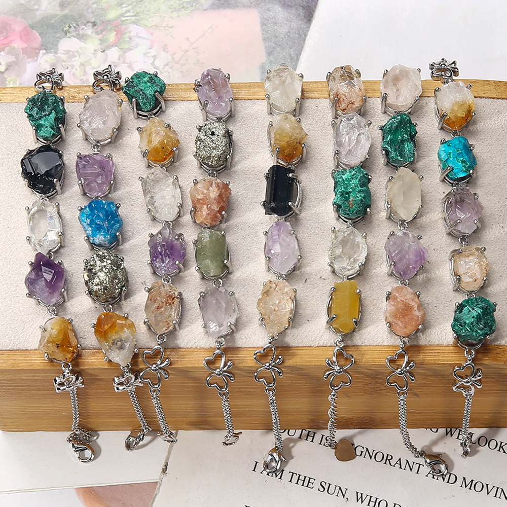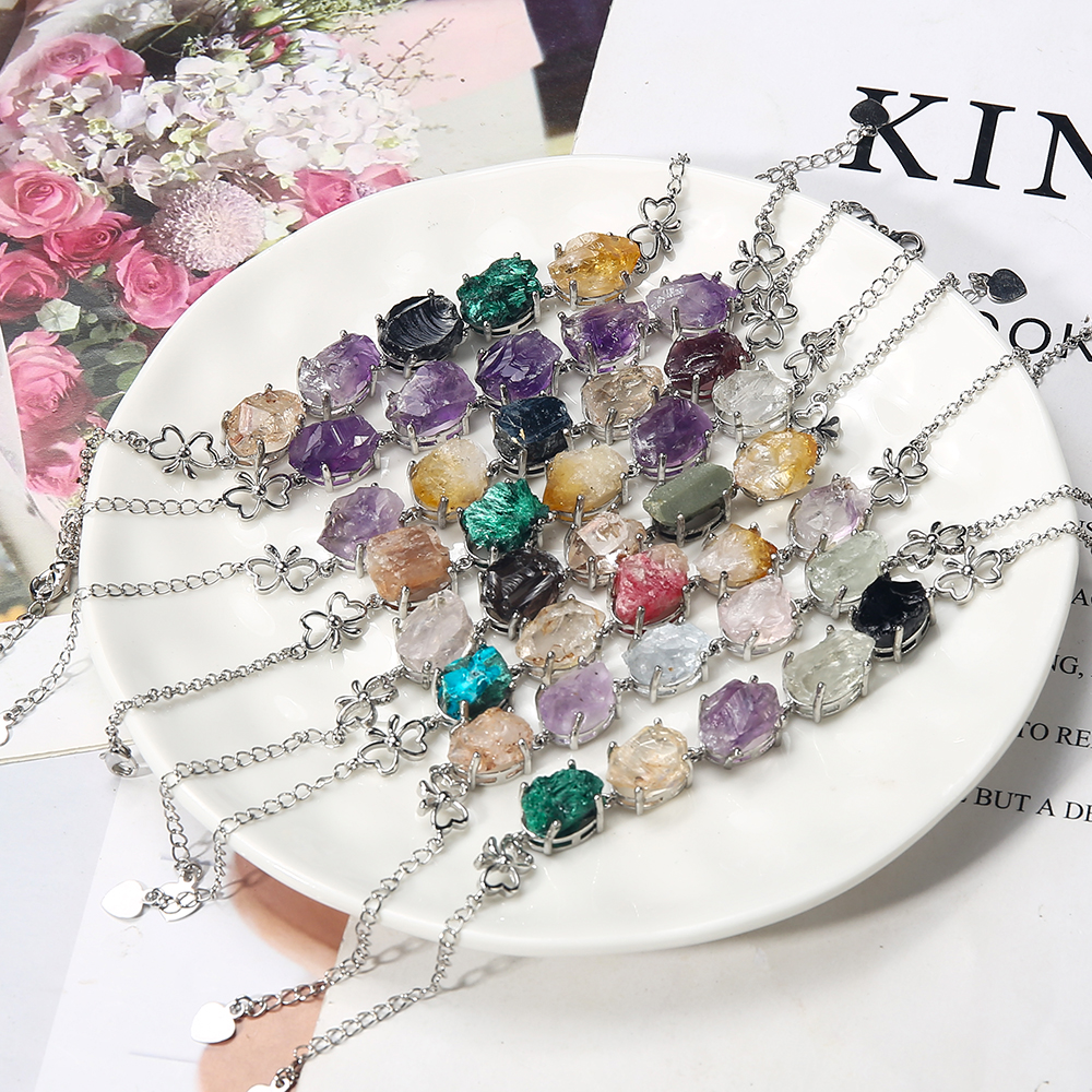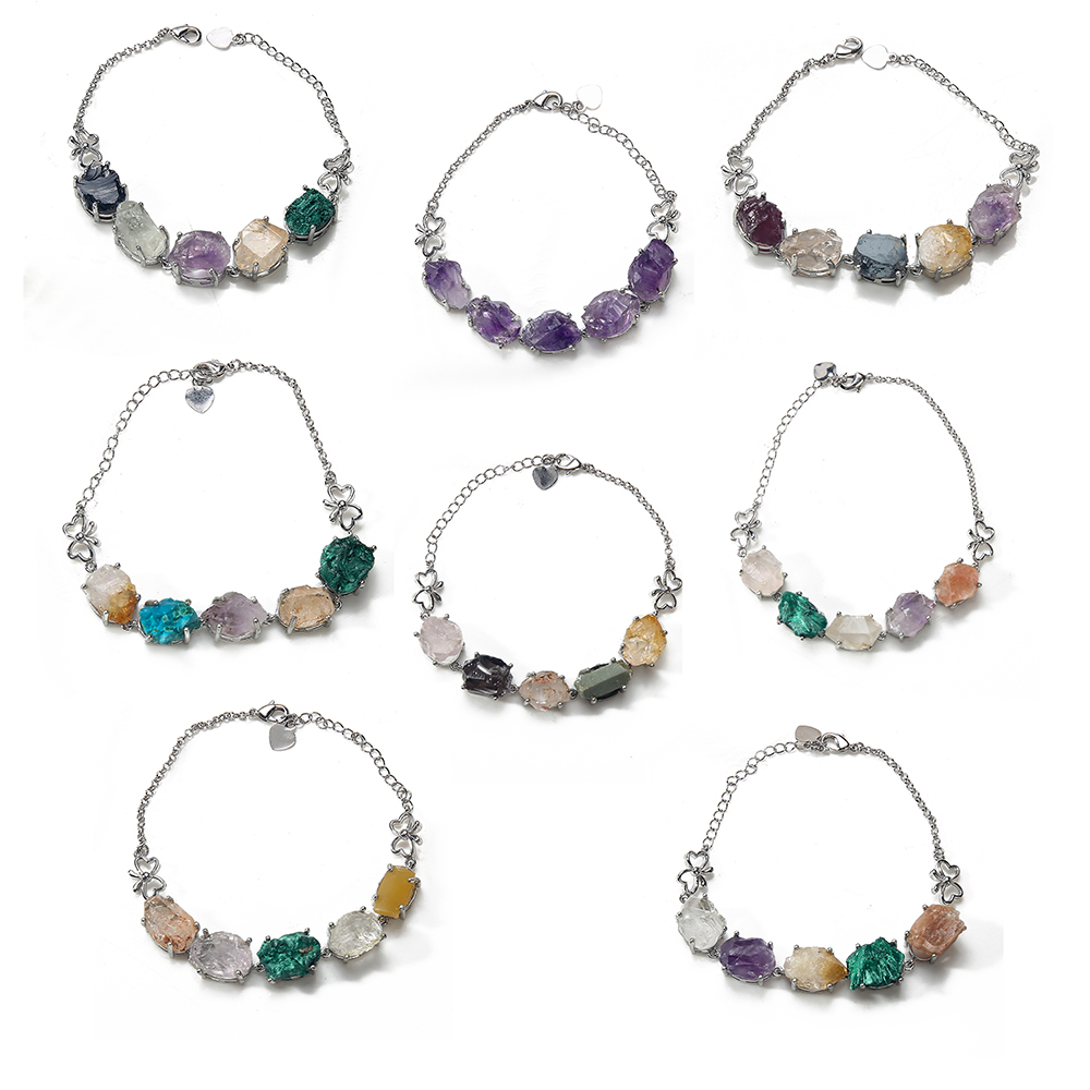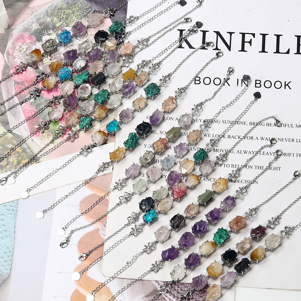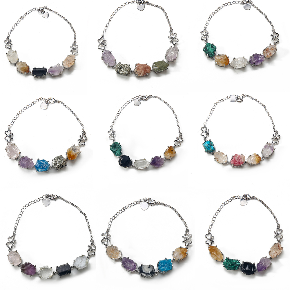 Gemstone Armbånd, Ædelsten, med 304 rustfrit stål, tilfældigt sendt & mode smykker & Unisex, blandede farver, Længde Ca. 22.2 cm, Solgt af PC