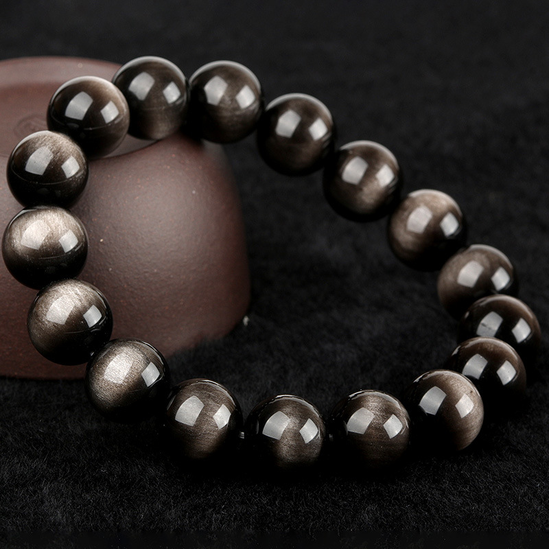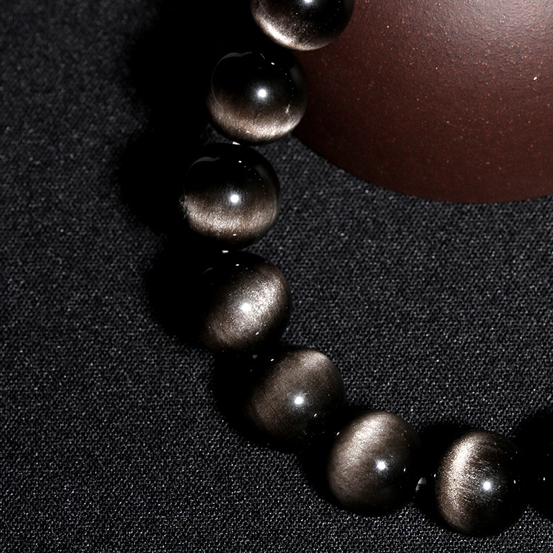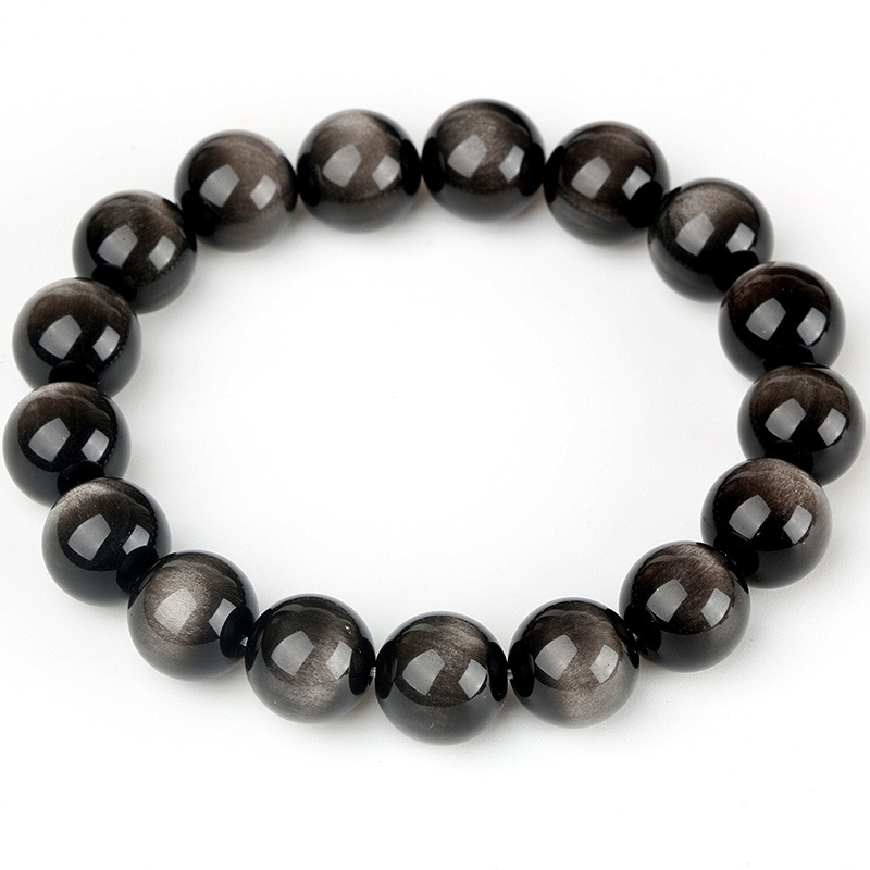 Gemstone Armbånd, Silver + Obsidian, mode smykker, blandede farver, Længde 19 cm, Solgt af PC
