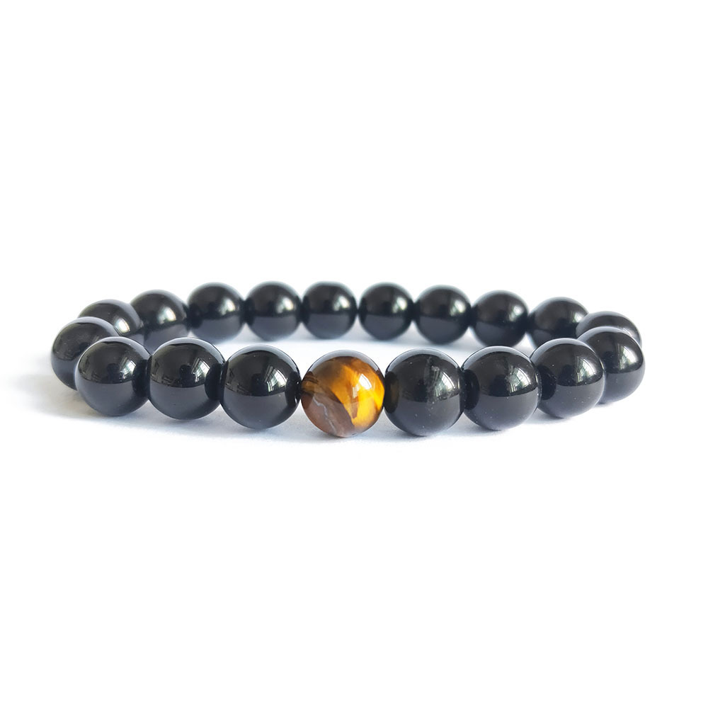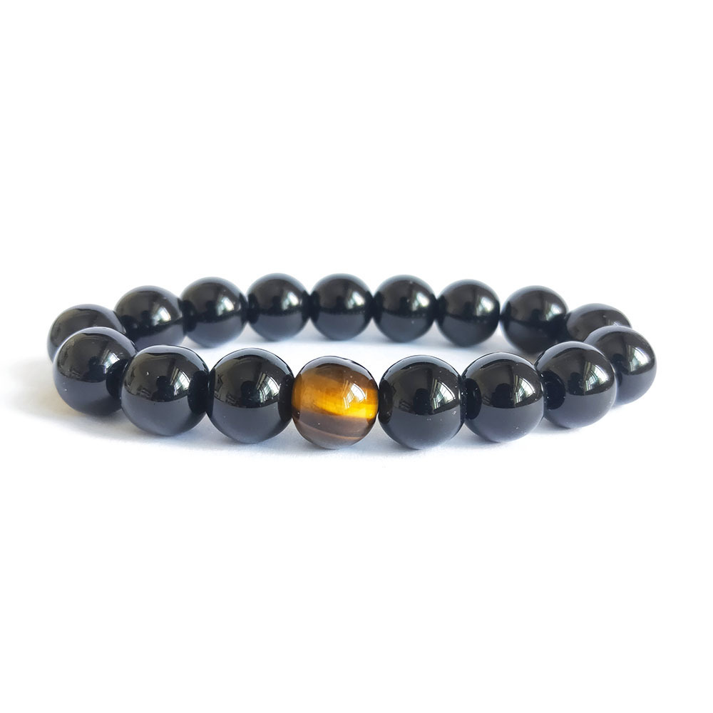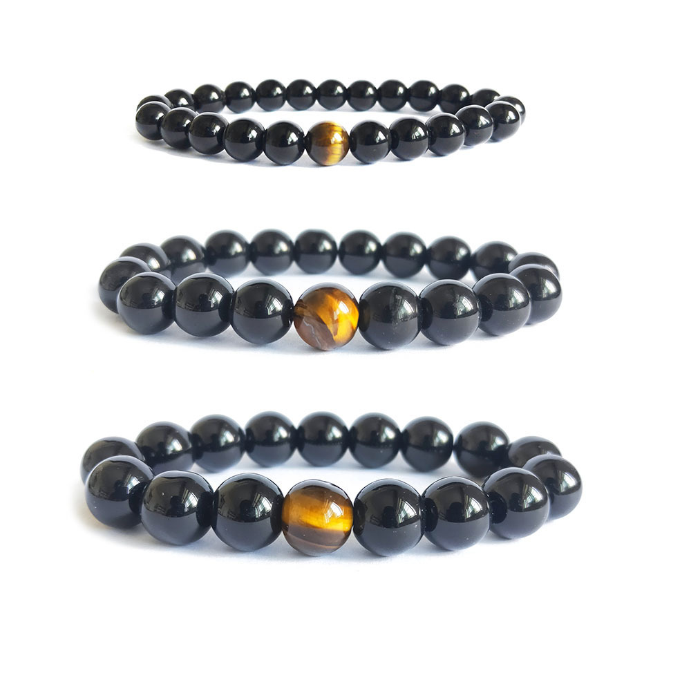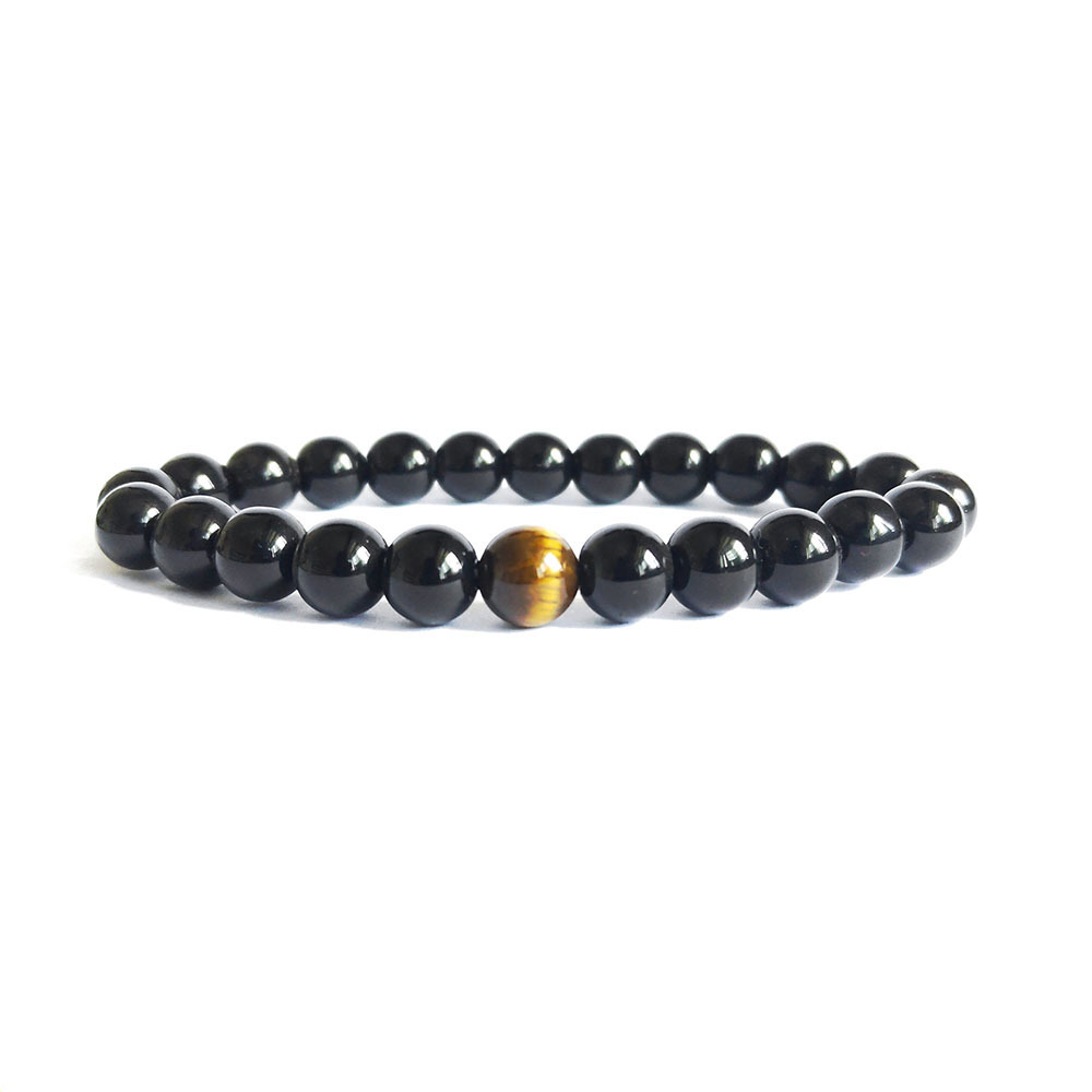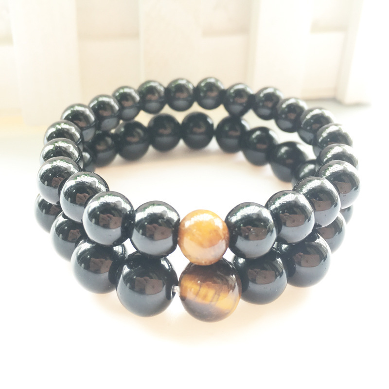 Gemstone Armbånd, Black Stone, med Tiger Eye, mode smykker, blandede farver, Længde 21 cm, Solgt af PC