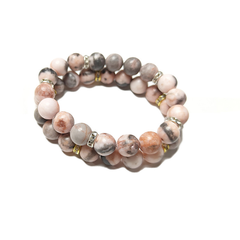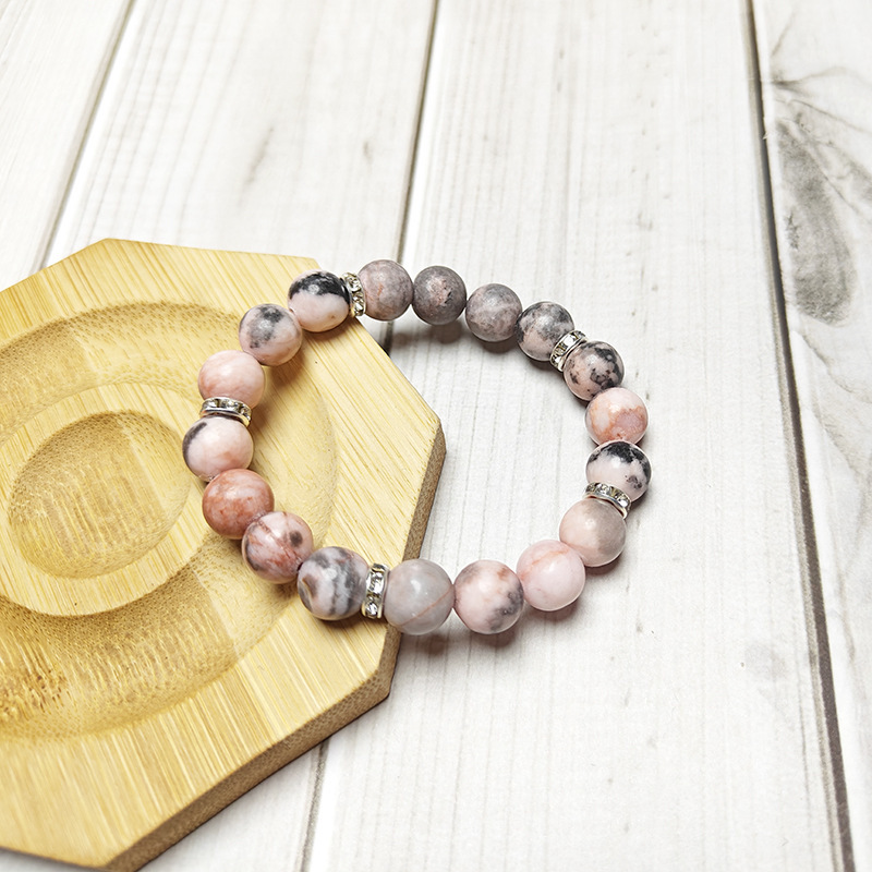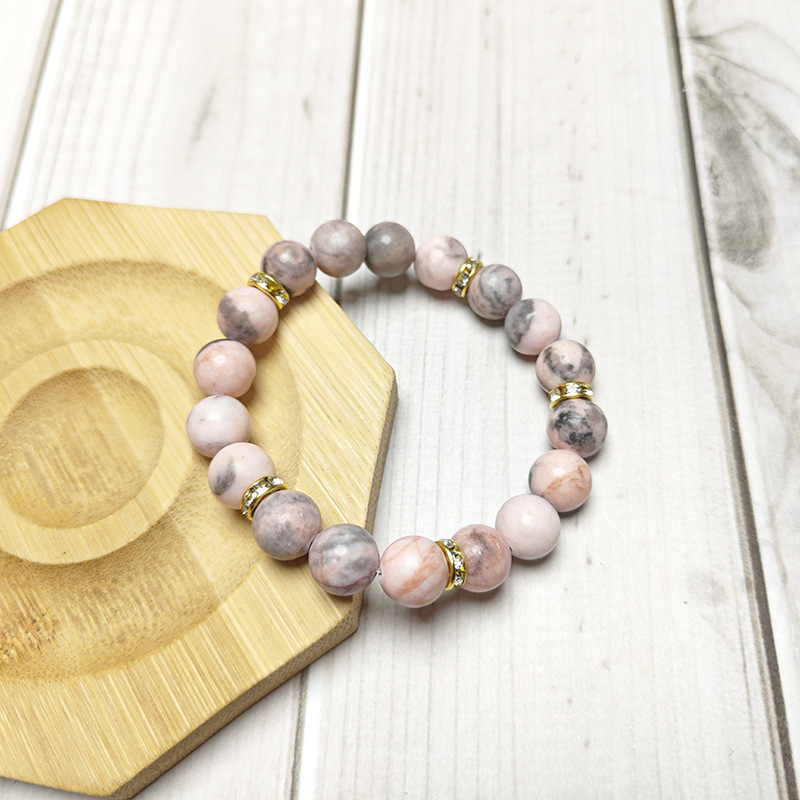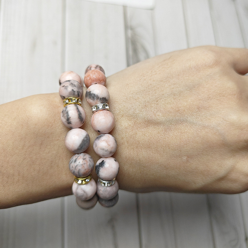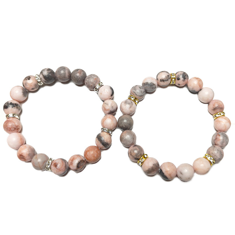 Gemstone Armbånd, Zebra Jasper, med Zinc Alloy, mode smykker & med rhinestone, flere farver til valg, 10mm, Længde 21 cm, Solgt af PC