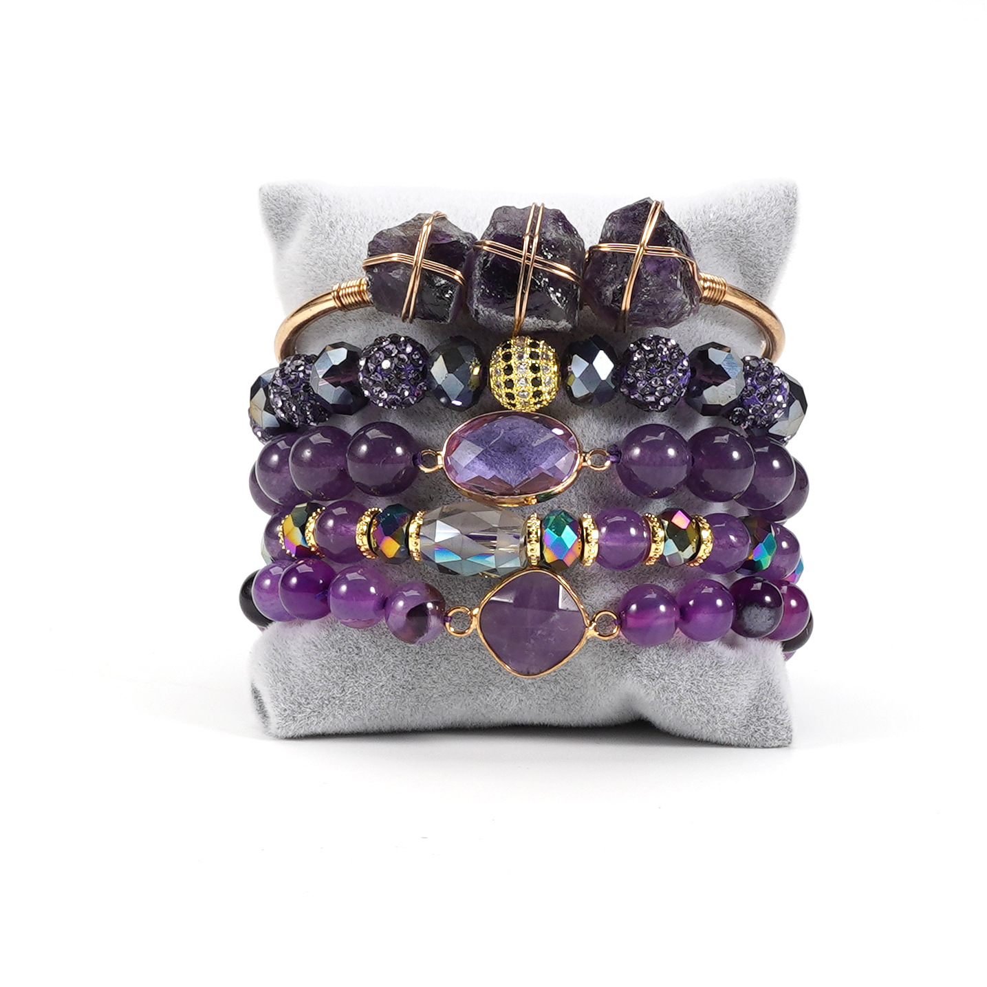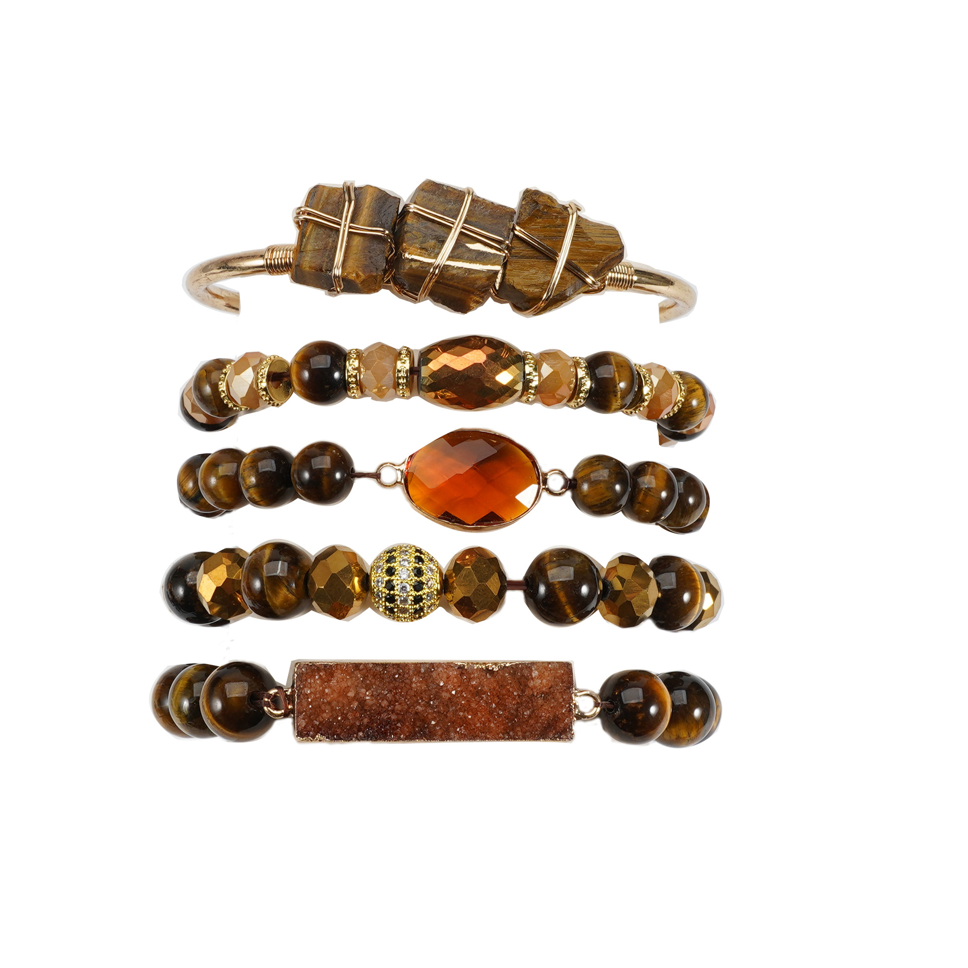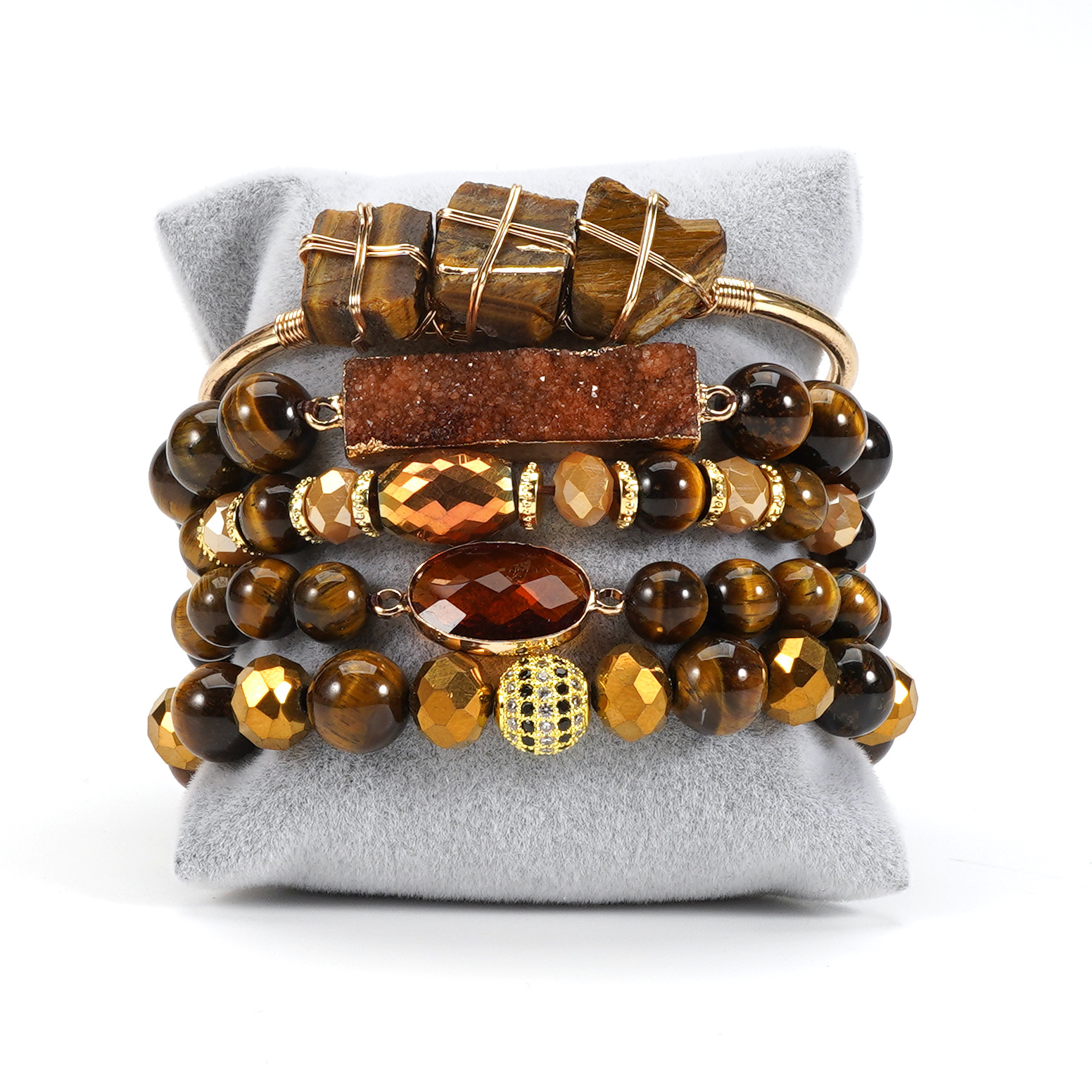 Gemstone Armbånd, Ametyst, med Tiger Eye, guldfarve belagt, mode smykker, flere farver til valg, 8mm, Solgt af sæt