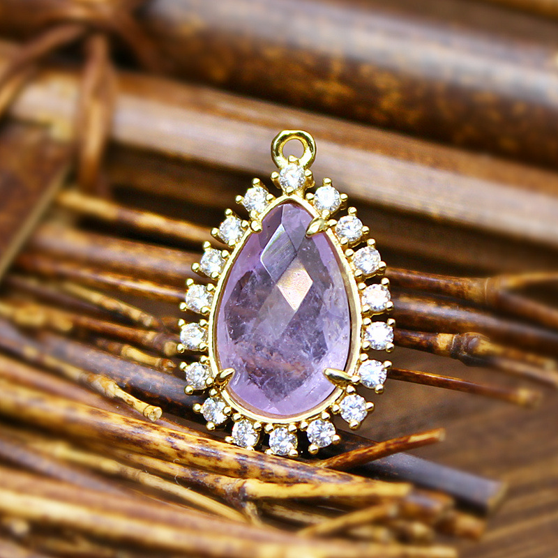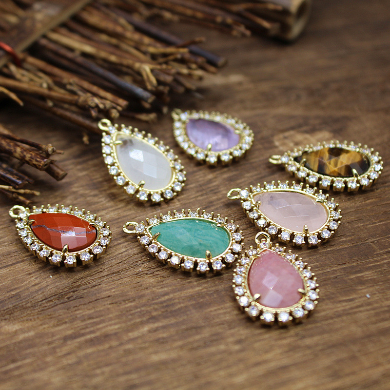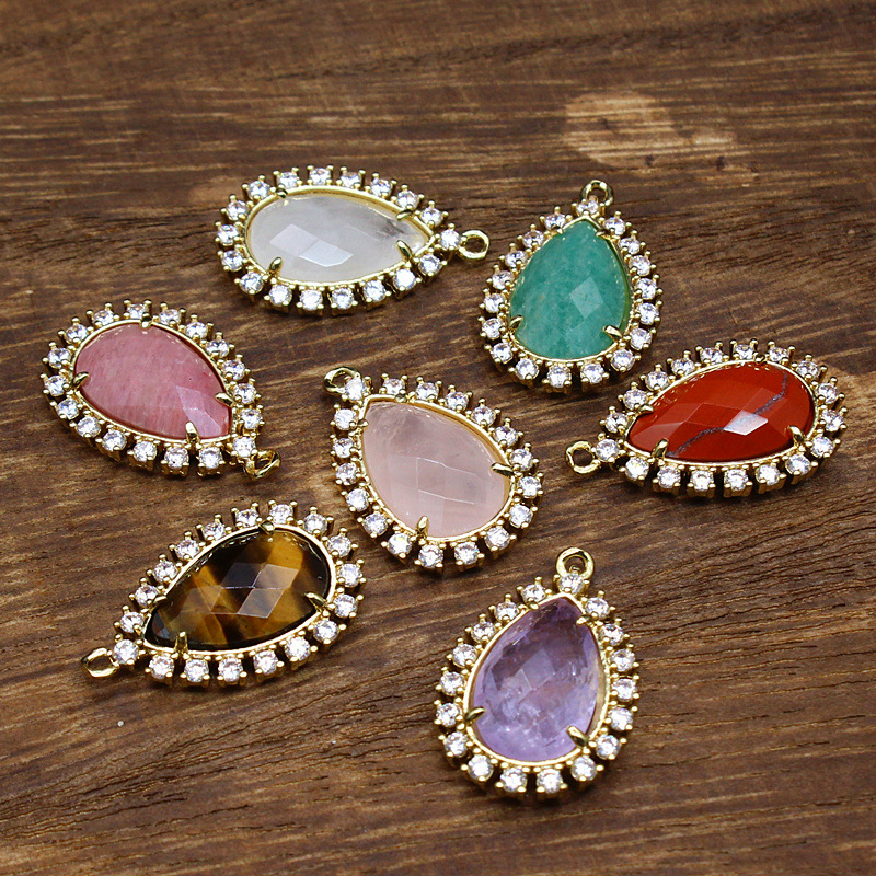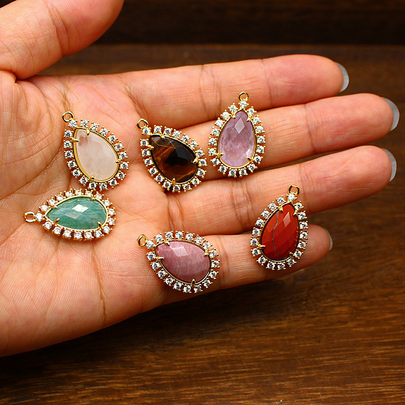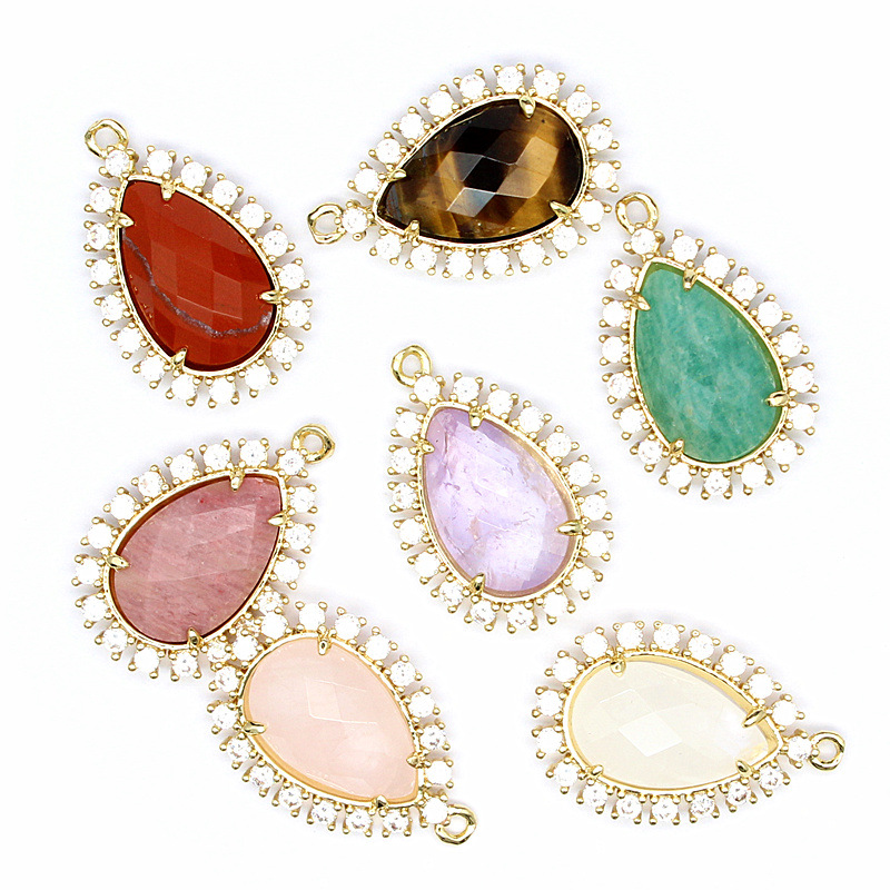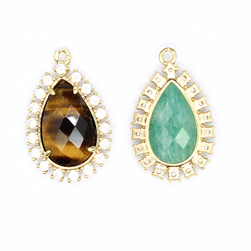 Gemstone Vedhæng Smykker, Natursten, med Messing & Zinc Alloy, Teardrop, du kan DIY & forskellige materialer til valg & Micro Pave cubic zirconia, flere farver til valg, 25x17x5mm, Solgt af PC