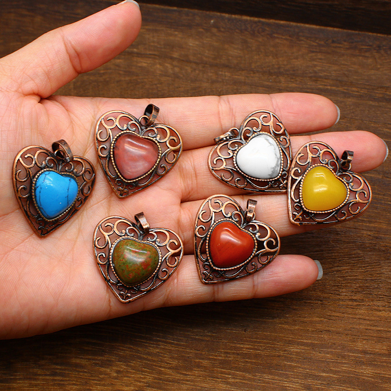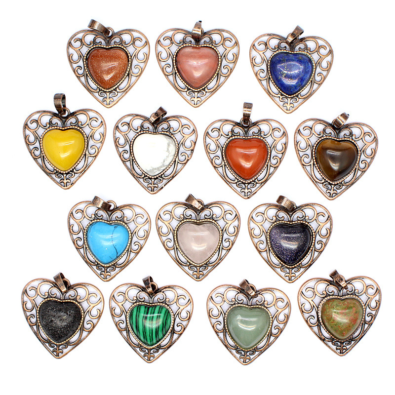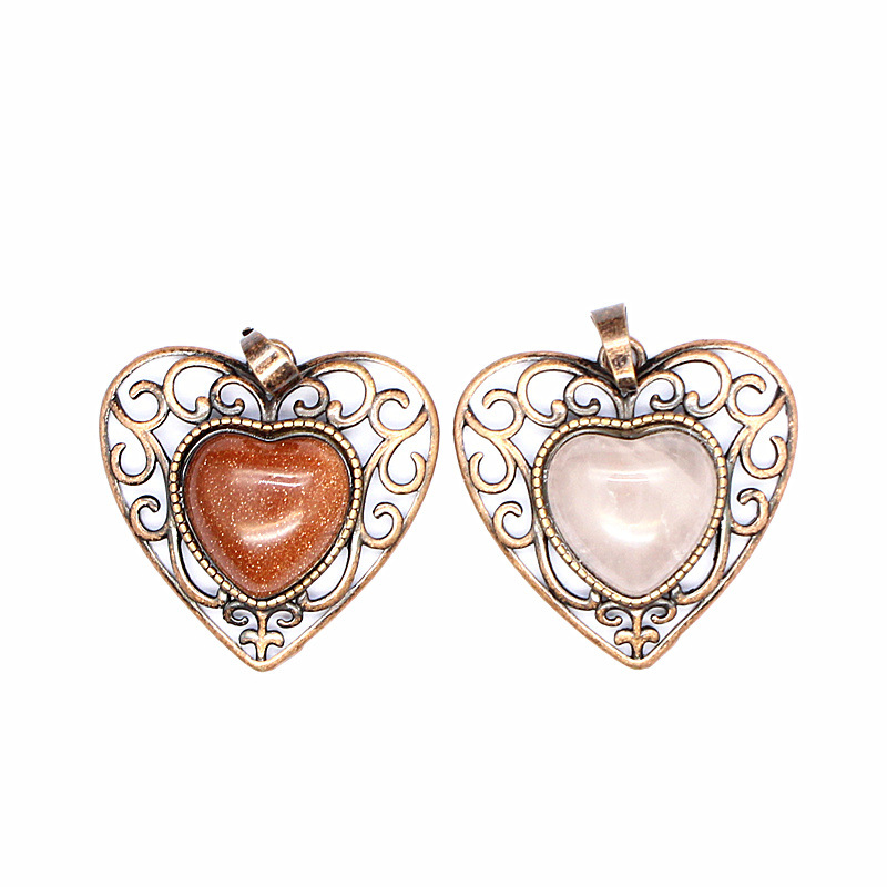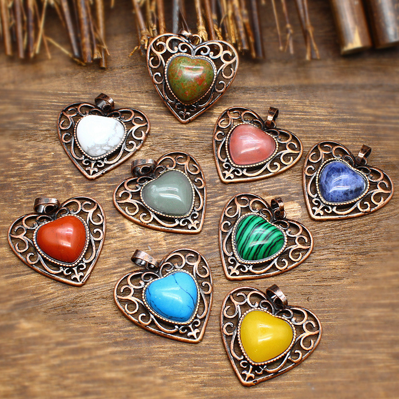 Gemstone Vedhæng Smykker, Natursten, med Messing & Zinc Alloy, Heart, du kan DIY & forskellige materialer til valg, flere farver til valg, 30x30x8mm, Solgt af PC