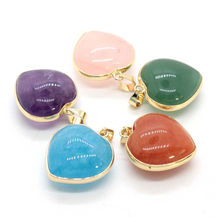 Gemstone Vedhæng Smykker, Ædelsten, med Zinc Alloy, Heart, du kan DIY & forskellige materialer til valg, 21x21x11mm, Solgt af PC