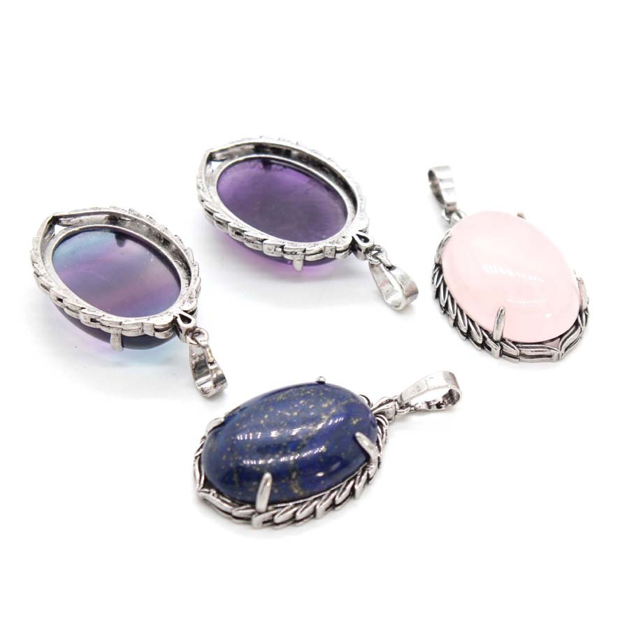 Gemstone Vedhæng Smykker, Ædelsten, med Zinc Alloy, poleret, du kan DIY & forskellige materialer til valg, 33x21mm, Solgt af PC