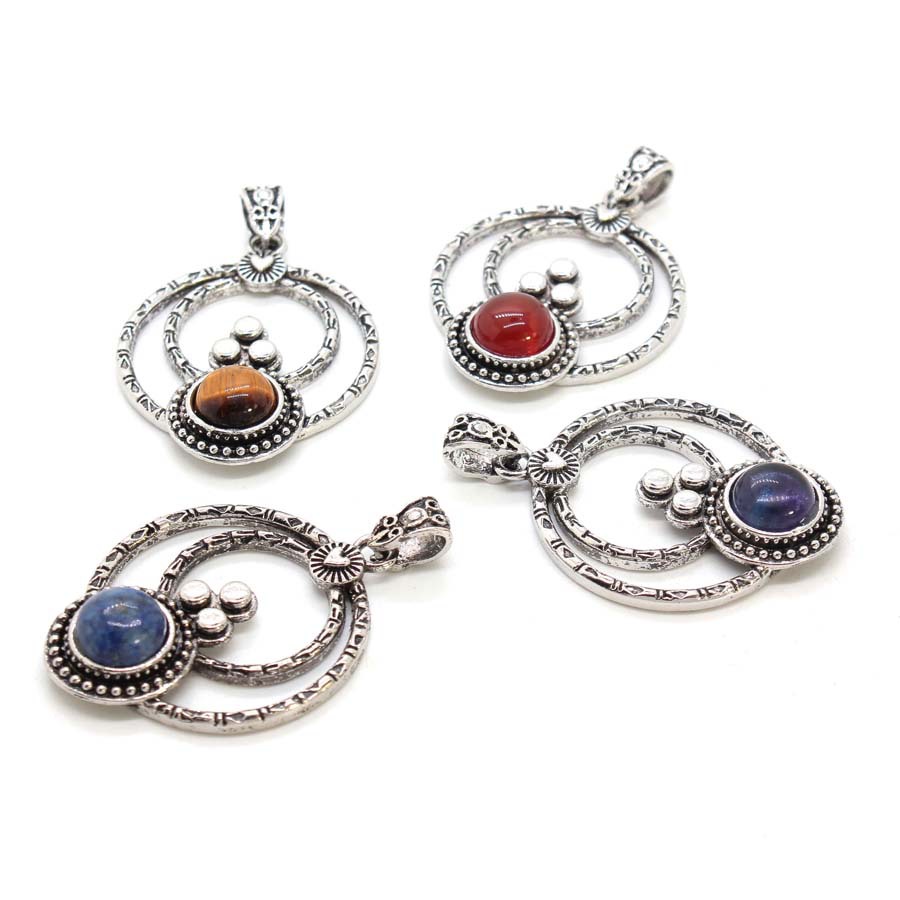 Gemstone Vedhæng Smykker, Ædelsten, med Zinc Alloy, forgyldt, du kan DIY & forskellige materialer til valg & hule, 44x34mm, Solgt af PC