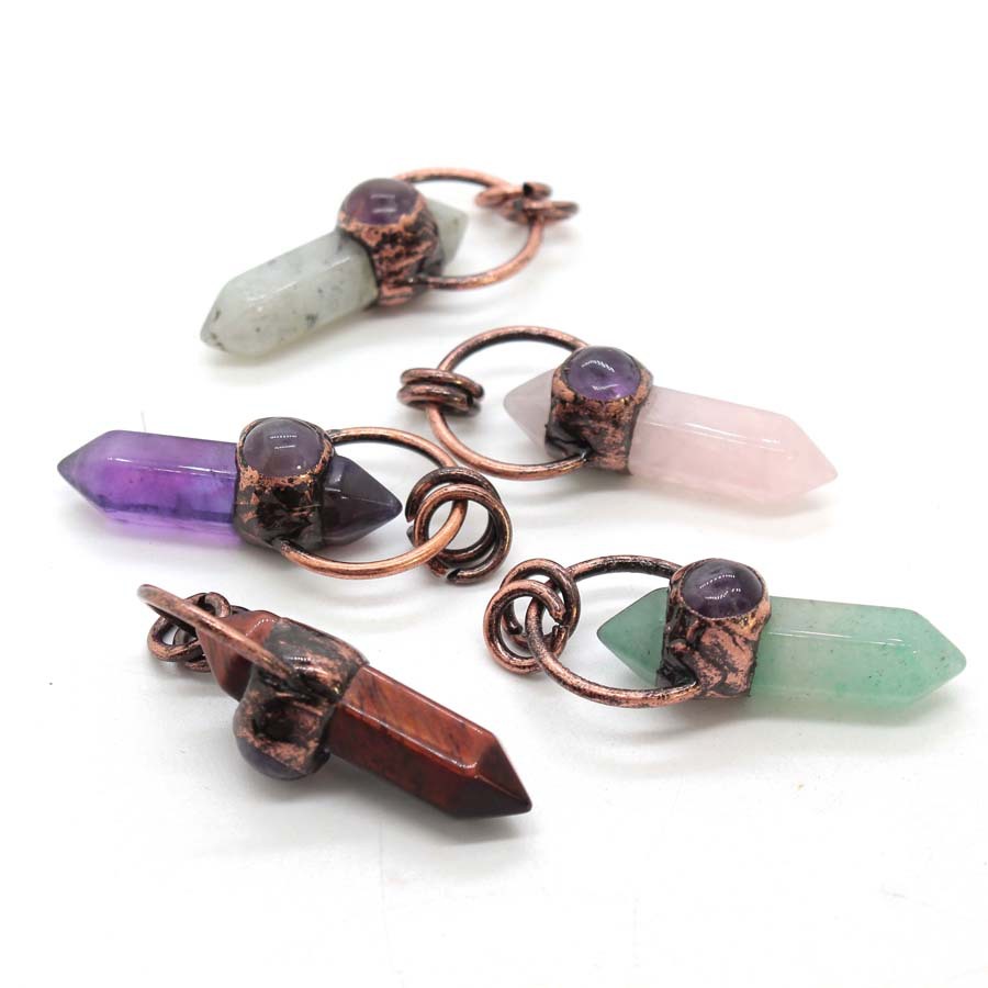 Gemstone Vedhæng Smykker, Messing, med Ædelsten, forgyldt, du kan DIY & med rhinestone, flere farver til valg, nikkel, bly & cadmium fri, 13.68x6.30x29.33mm, Solgt af PC