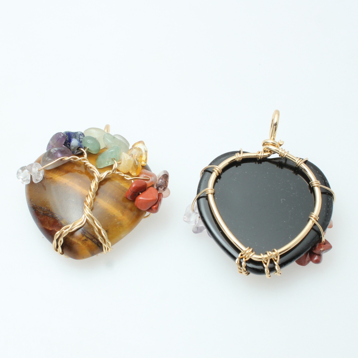 Gemstone Vedhæng Smykker, Ædelsten, med Natur grus & Zinc Alloy, Heart, du kan DIY & forskellige materialer til valg, 40x40x10mm, Solgt af PC