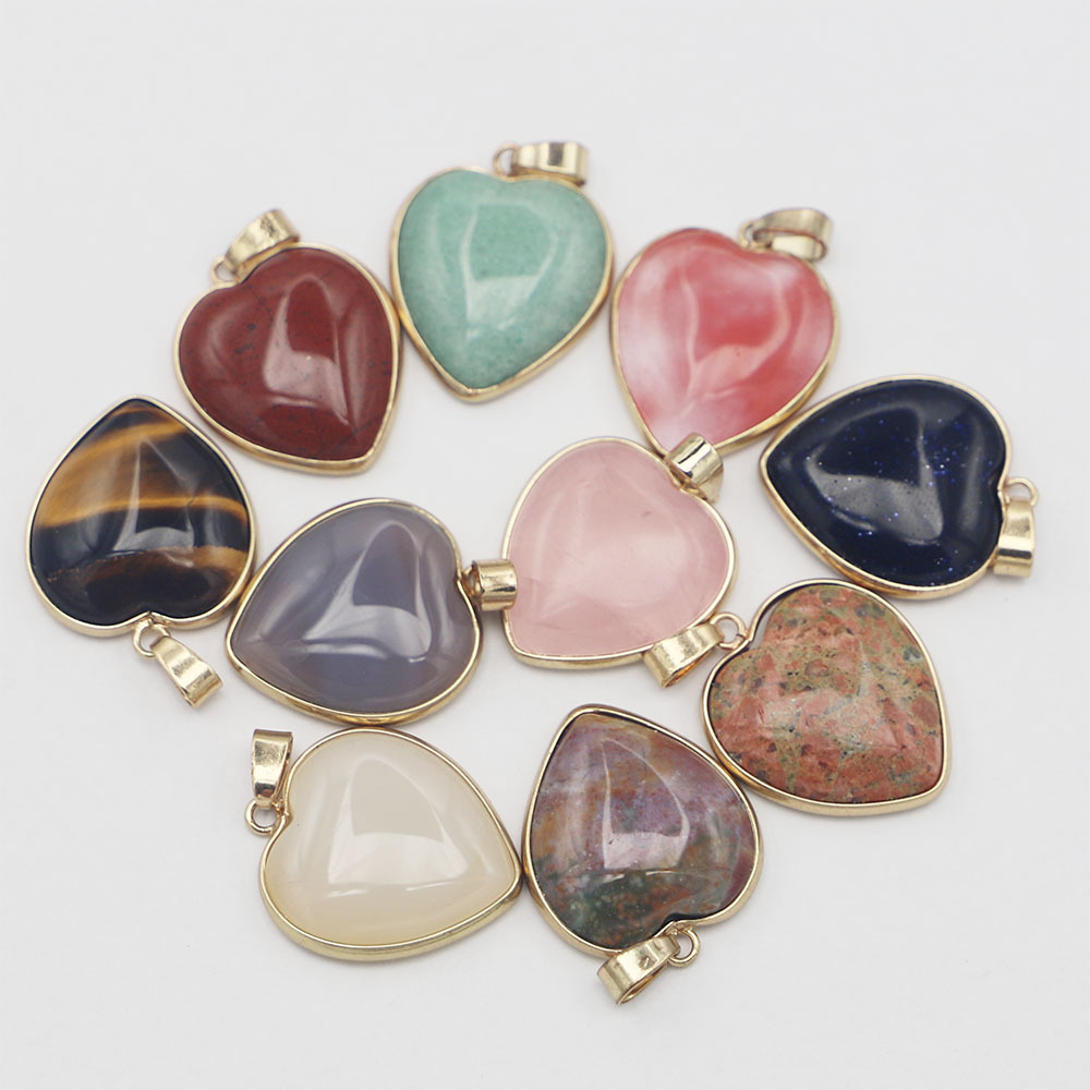 Gemstone Vedhæng Smykker, Ædelsten, med Zinc Alloy, Heart, guldfarve belagt, du kan DIY & forskellige materialer til valg, 26x24x6mm, Solgt af PC