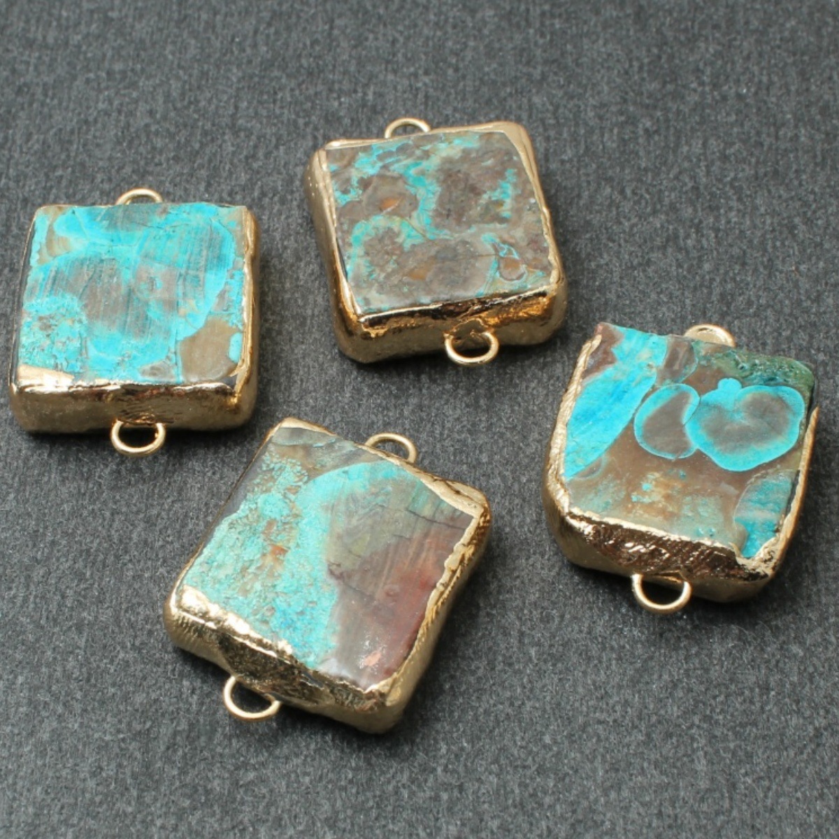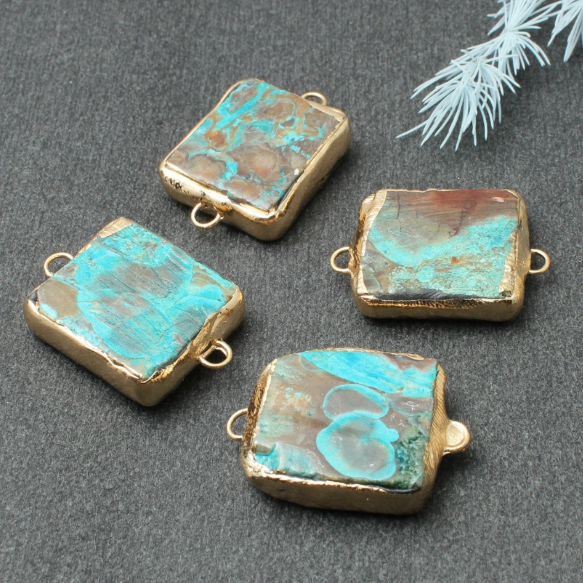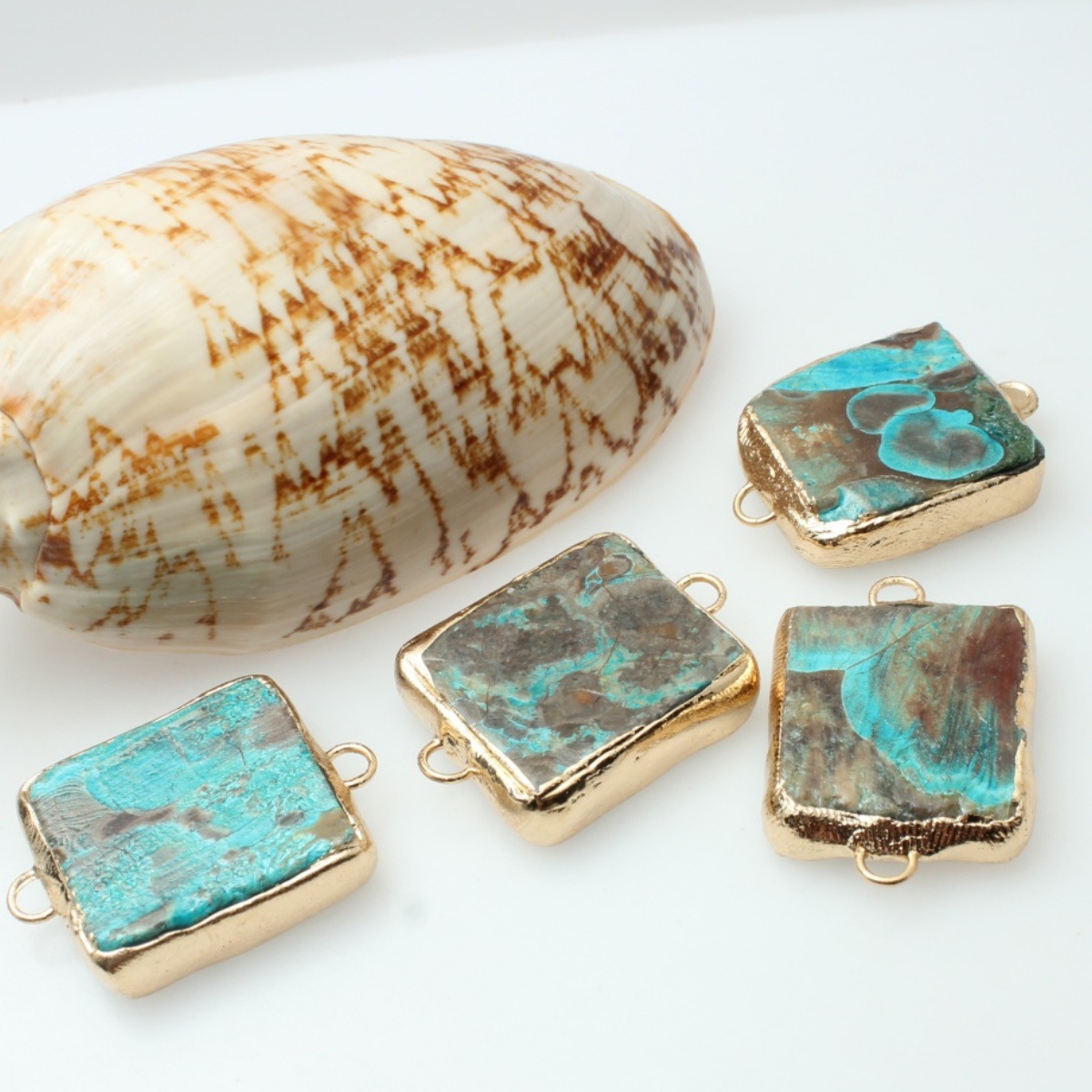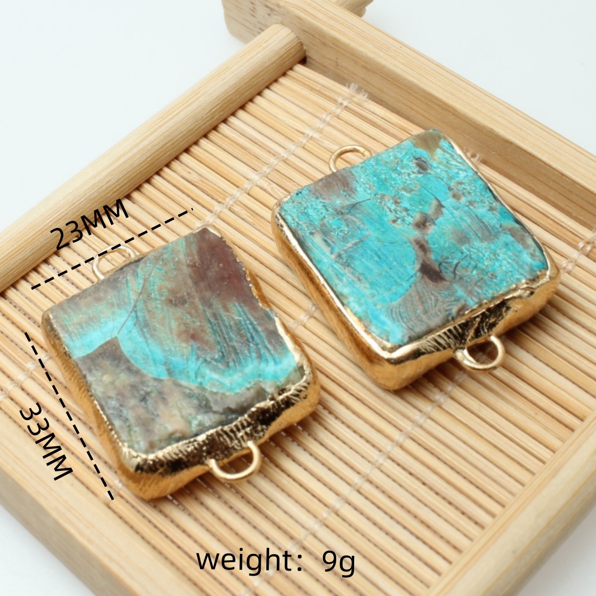 Gemstone stik, Ocean Jasper, Square, guldfarve belagt, du kan DIY, 33x23mm, Solgt af PC