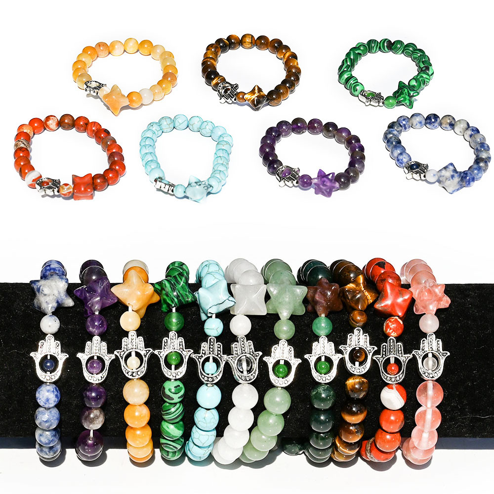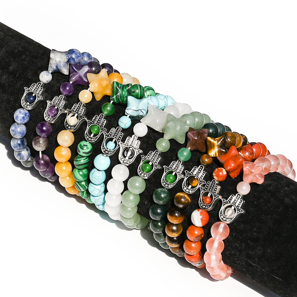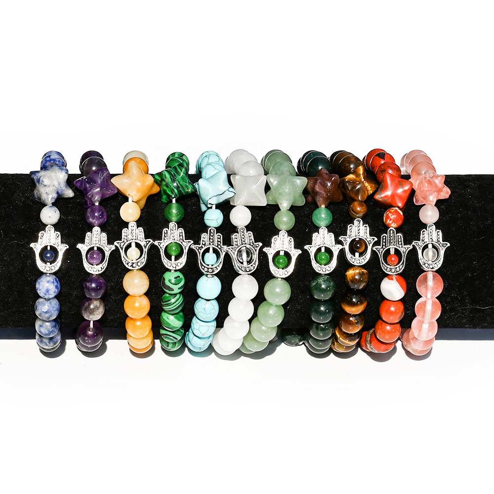Hamsa Armbånd, Natursten, med Ædelsten & Zinc Alloy, guldfarve belagt, mode smykker, flere farver til valg, u7ea68mm, Solgt af Strand
