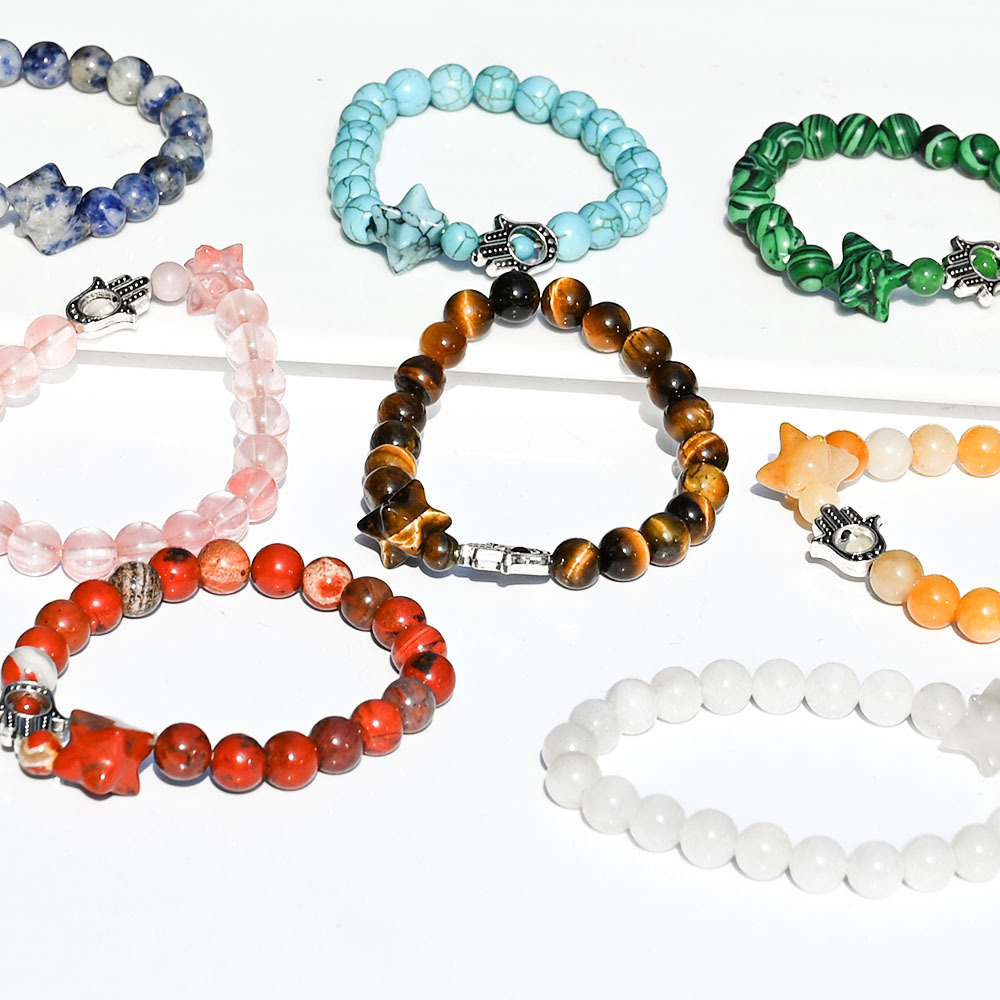 1:Dongling Jade2:blue dot jade3:Yellow jade4:Amethyst5:Red Jasper6:White Crystal7:tiger s eye8:Indian agate9:synthetic watermelon red10:synthetic malachite11:synthetic blue turquoise