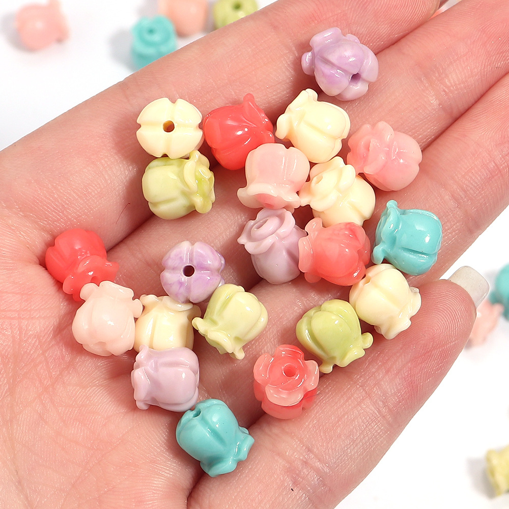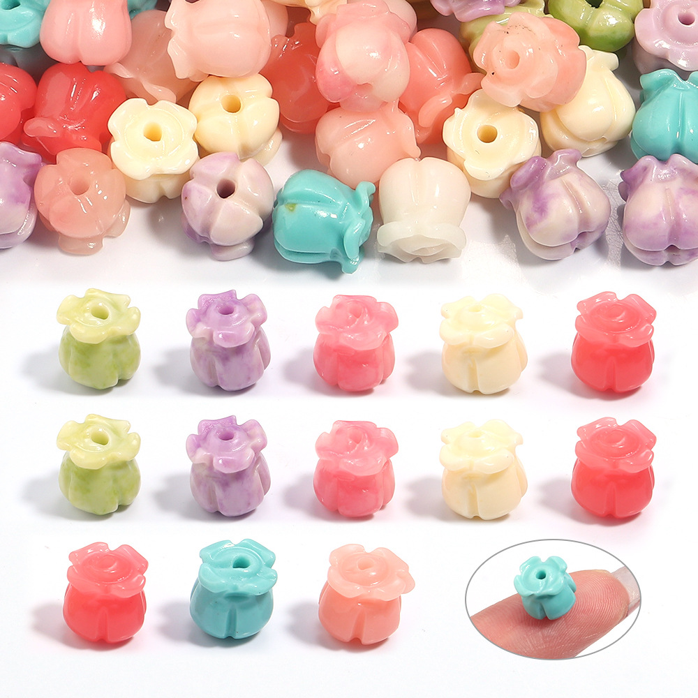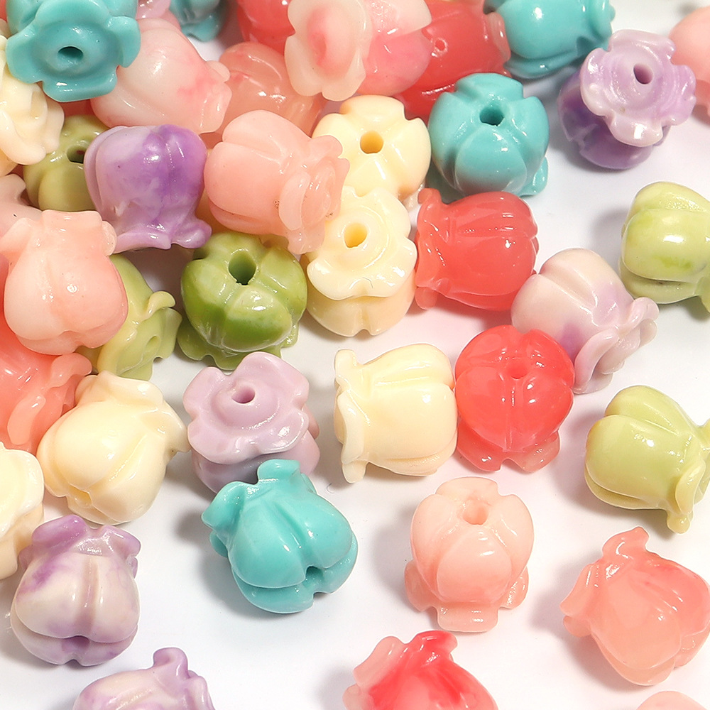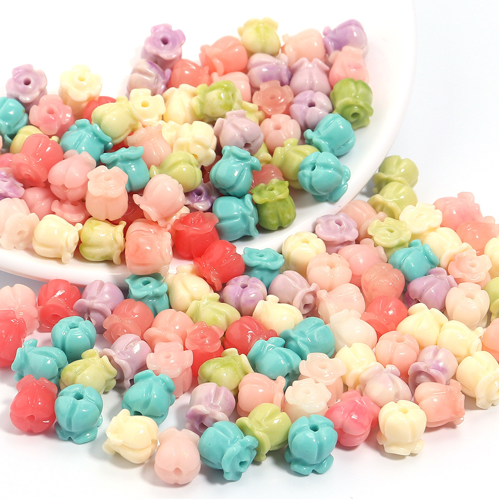 Harpiks smykker Perler, Resin, Flower, du kan DIY, flere farver til valg, 8x8mm, Hole:Ca. 1.6mm, Ca. 100pc'er/Bag, Solgt af Bag